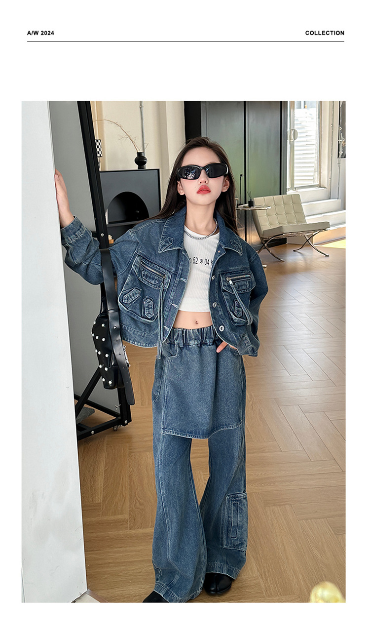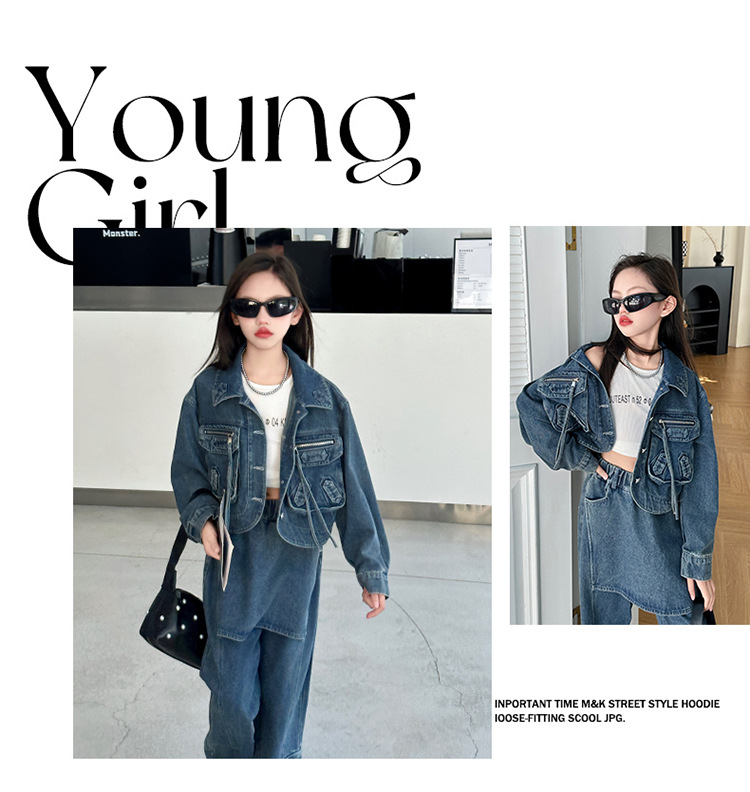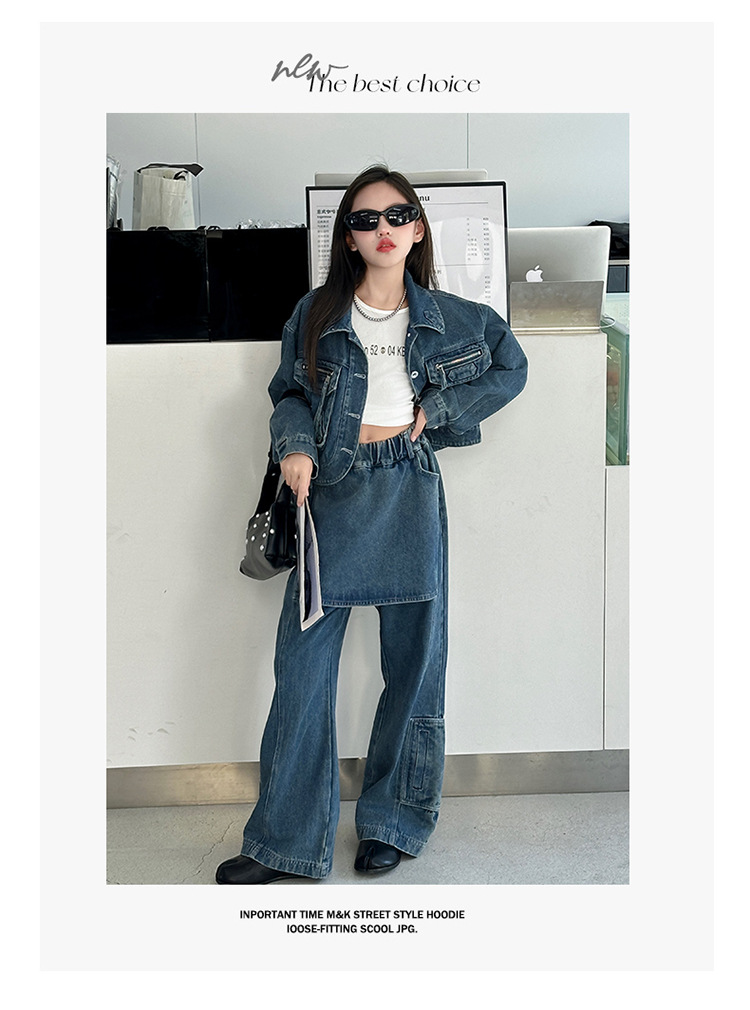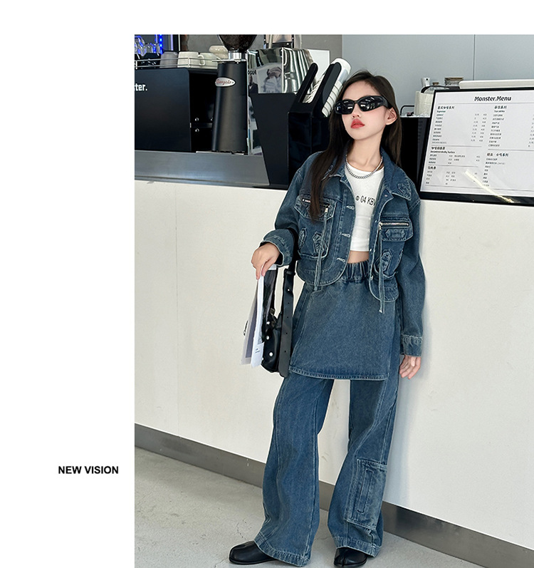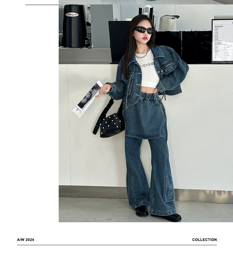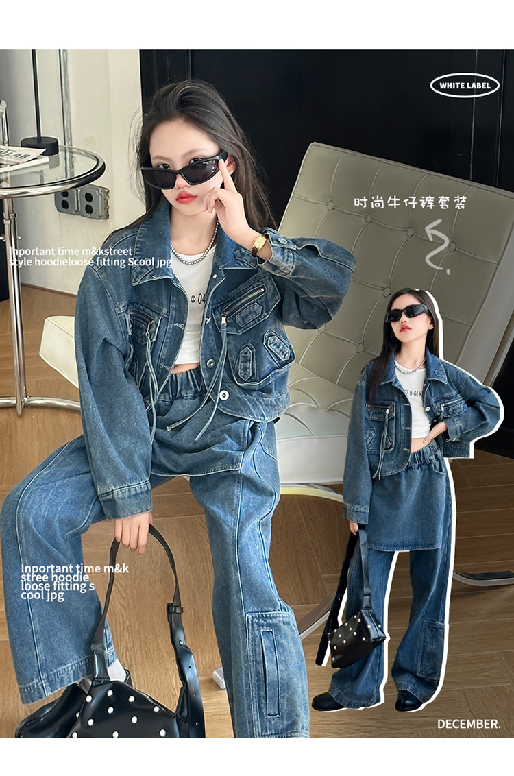소녀 데님 세트 봄과 가을 유행 어린이 인터넷 연예인 툴링 투피스 세트 소녀 가을 유행 아동복스토어 가기