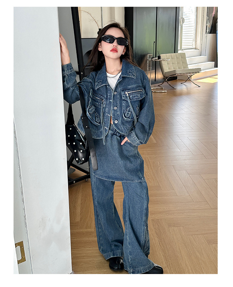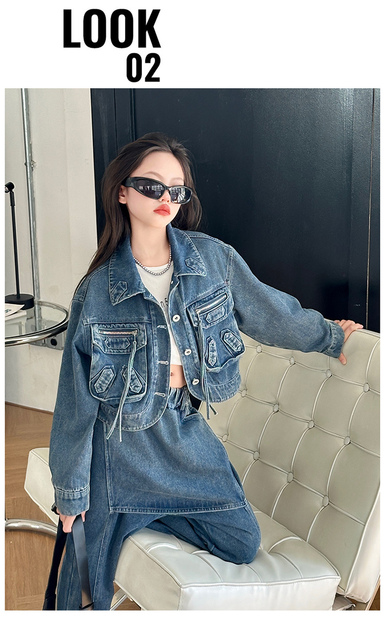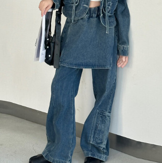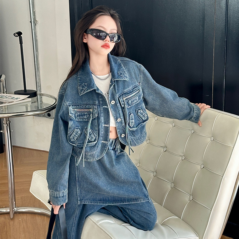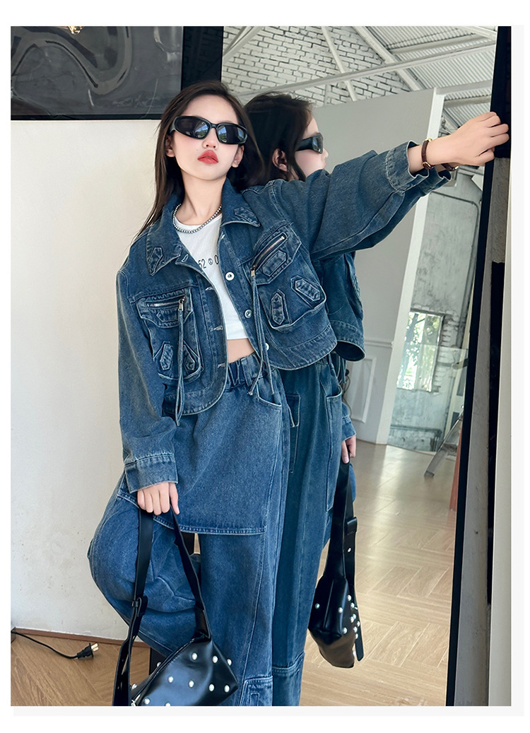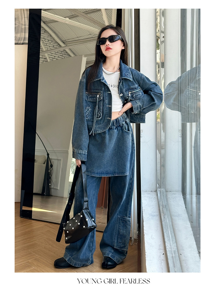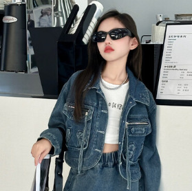 소녀 데님 세트 봄과 가을 유행 어린이 인터넷 연예인 툴링 투피스 세트 소녀 가을 유행 아동복스토어 가기