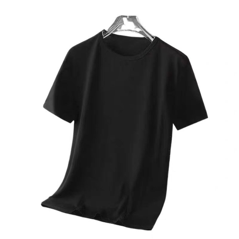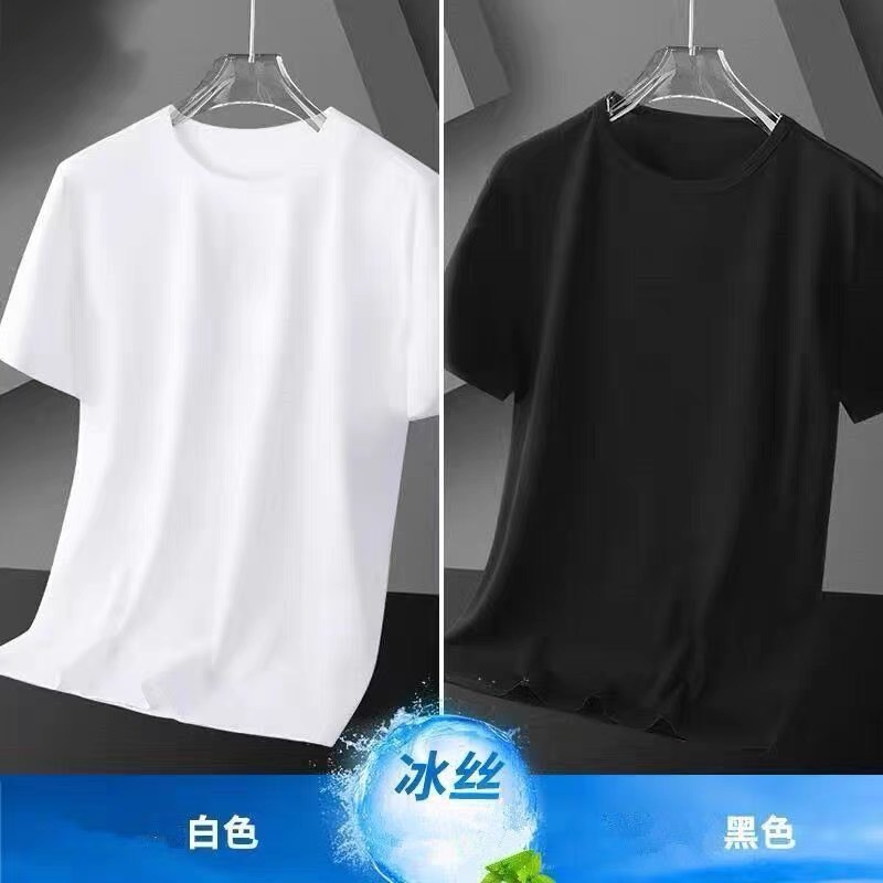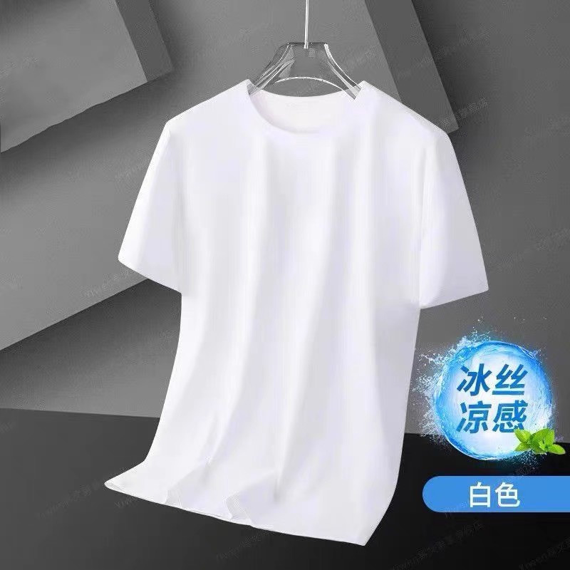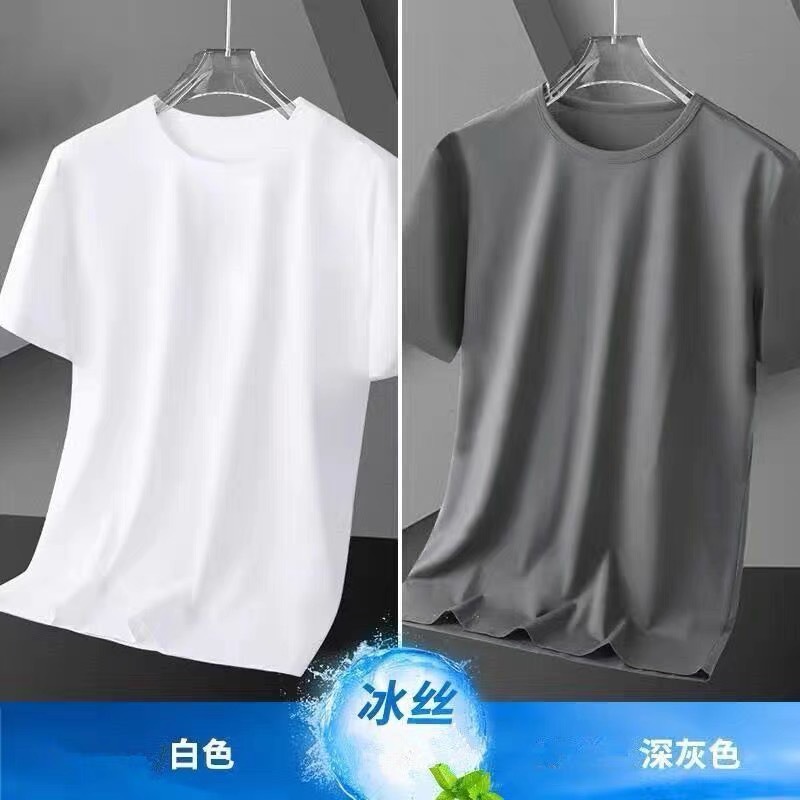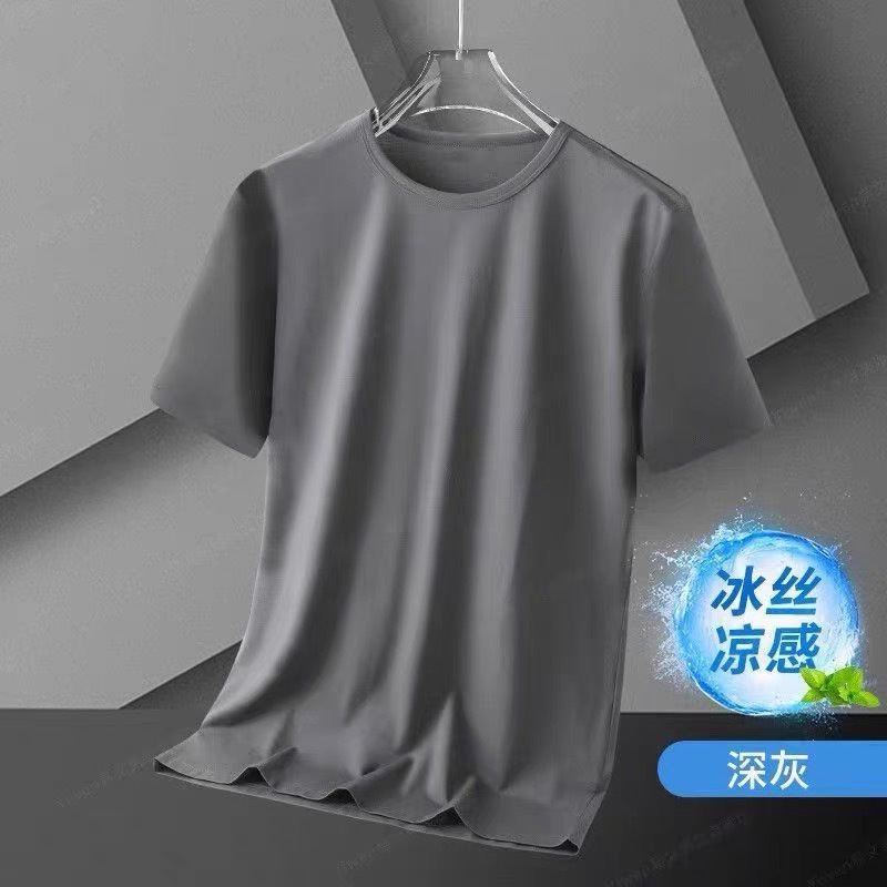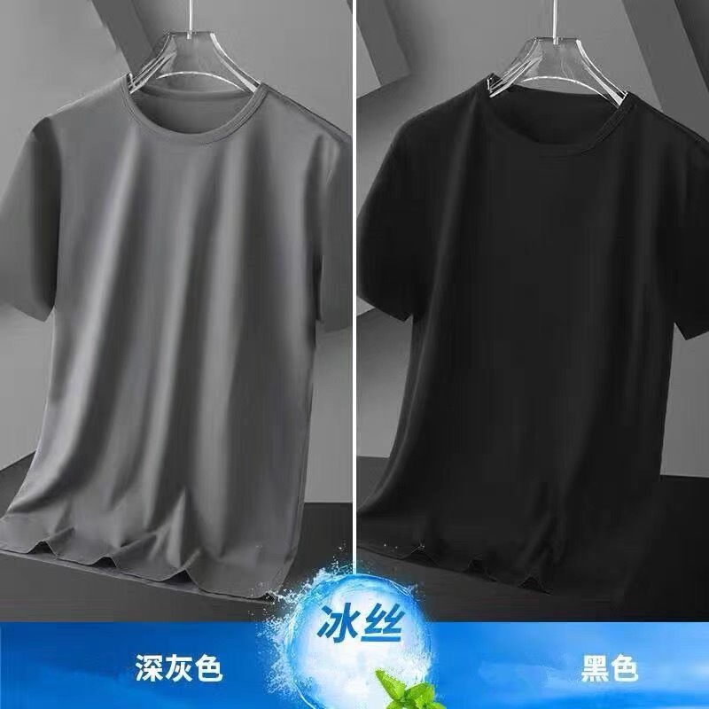 아이스 실크 솔리드 컬러 반팔 티셔츠 남자 여름 새로운 통기성 라운드 넥 느슨한 플러스 사이즈 반소매 내베이스 셔츠 폴리에스테르스토어 가기