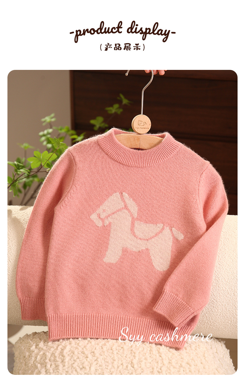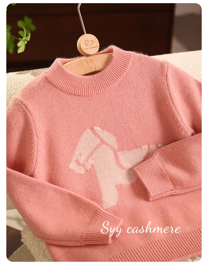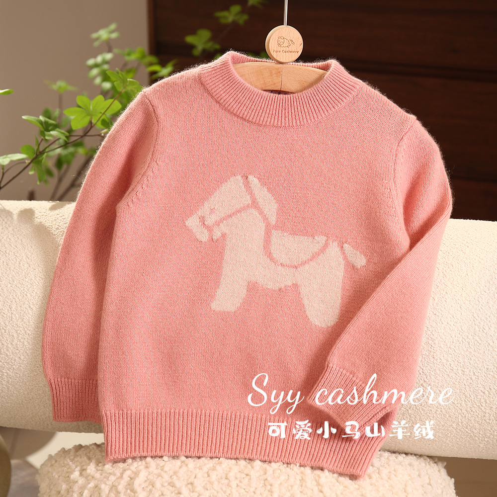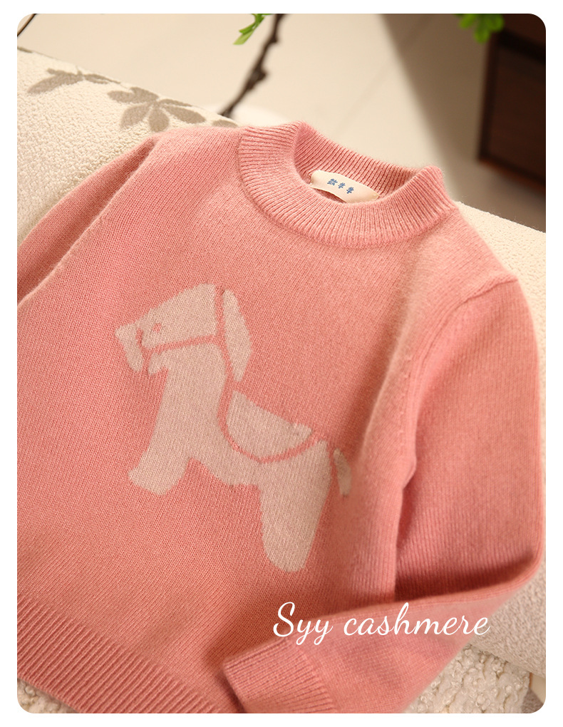 핑크 트로이 목마 만화 자카드 크루 넥 풀오버 패딩 어린이 캐시미어 스웨터
