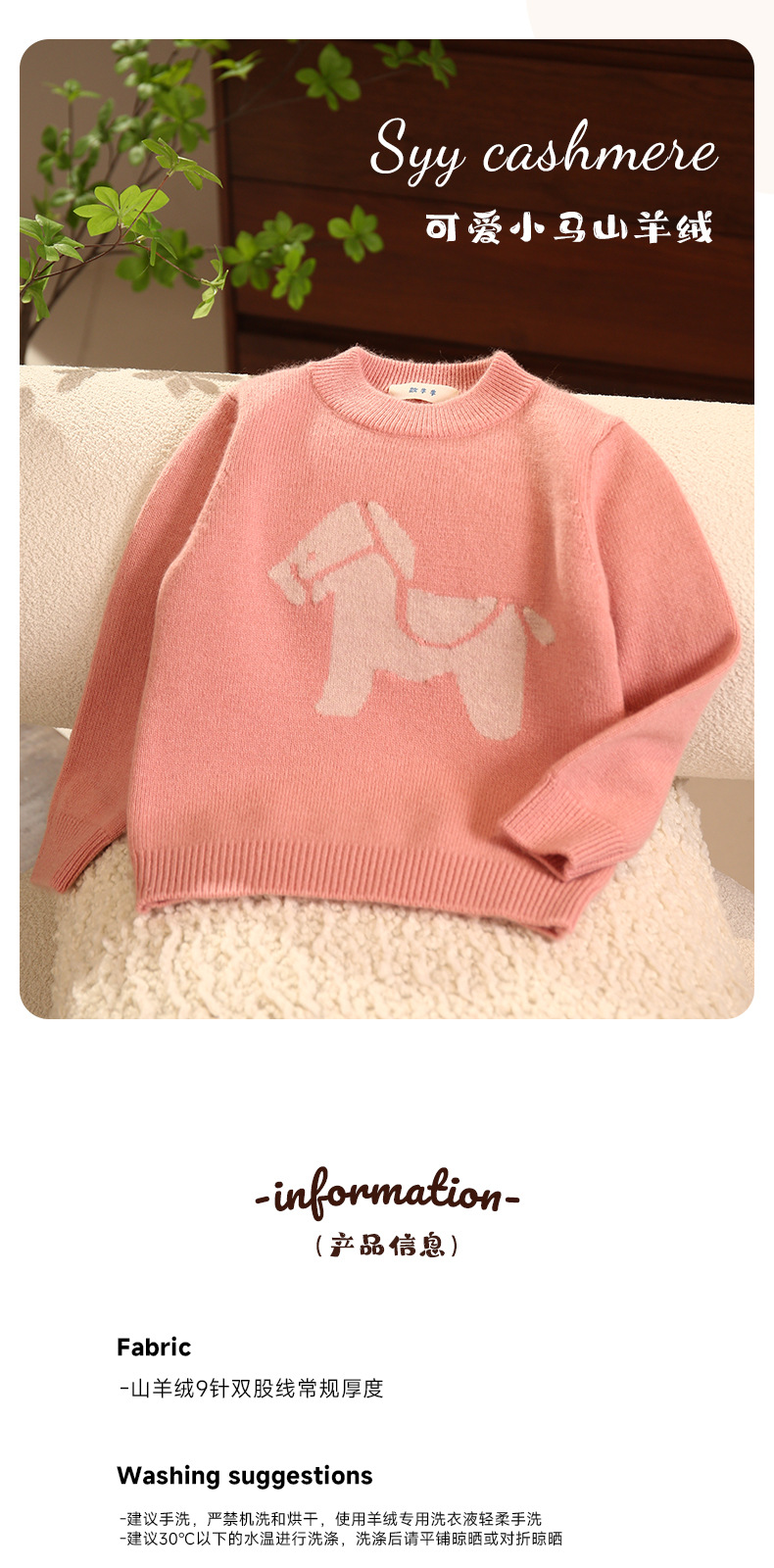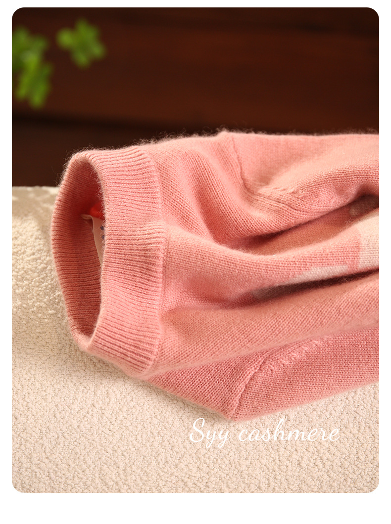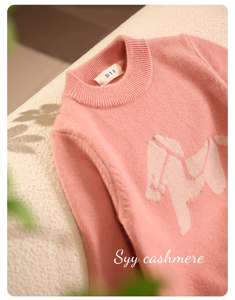 핑크 트로이 목마 만화 자카드 크루 넥 풀오버 패딩 어린이 캐시미어 스웨터