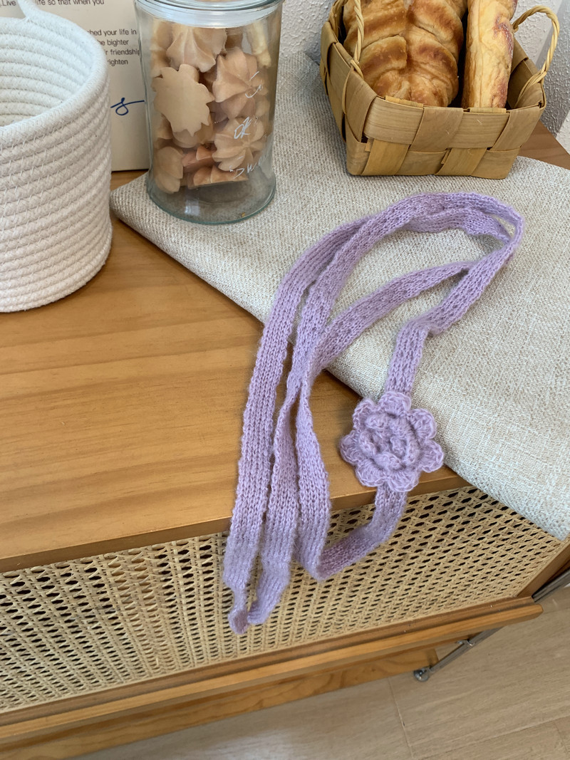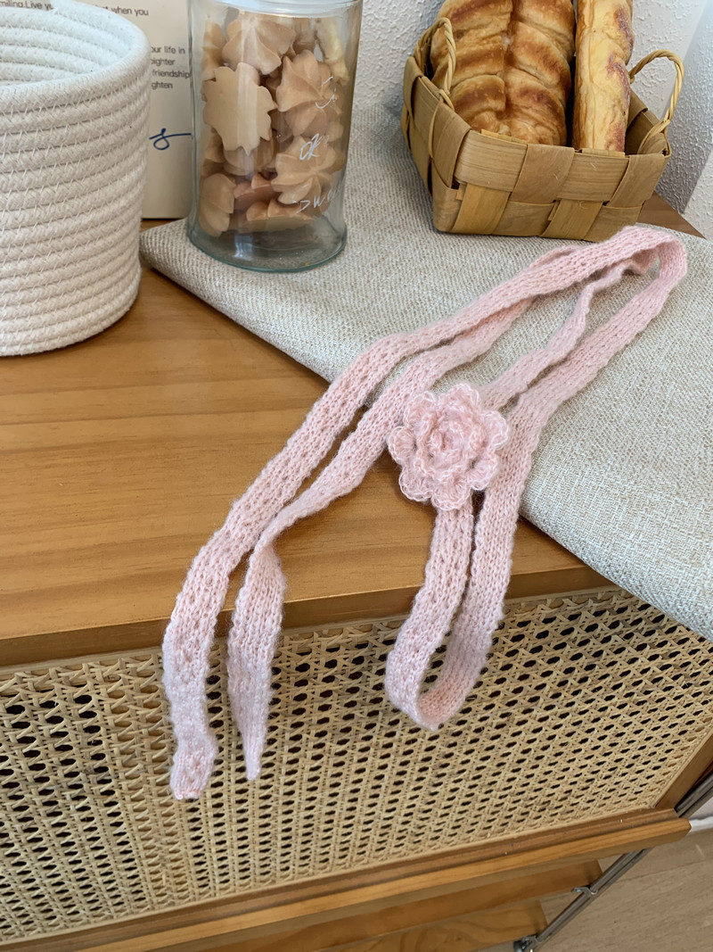 한국 틈새 3 차원 로즈 순수 수제 크로 셰 뜨개질 스카프 뜨거운 소녀 유행 착용 단일 제품 얇은 좁은 긴 스카프스토어 가기