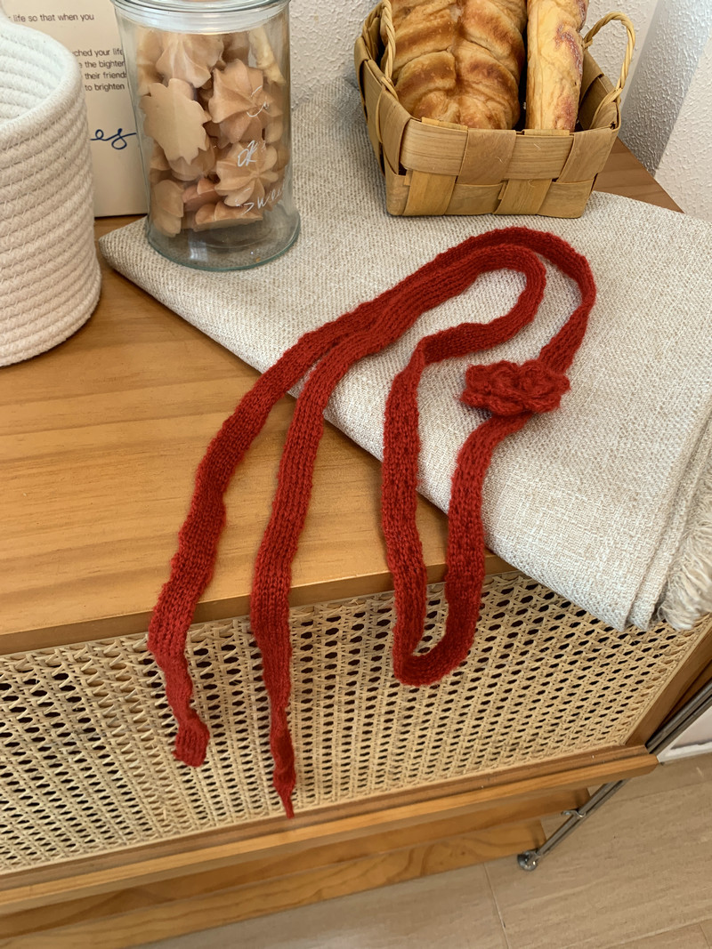 한국 틈새 3 차원 로즈 순수 수제 크로 셰 뜨개질 스카프 뜨거운 소녀 유행 착용 단일 제품 얇은 좁은 긴 스카프