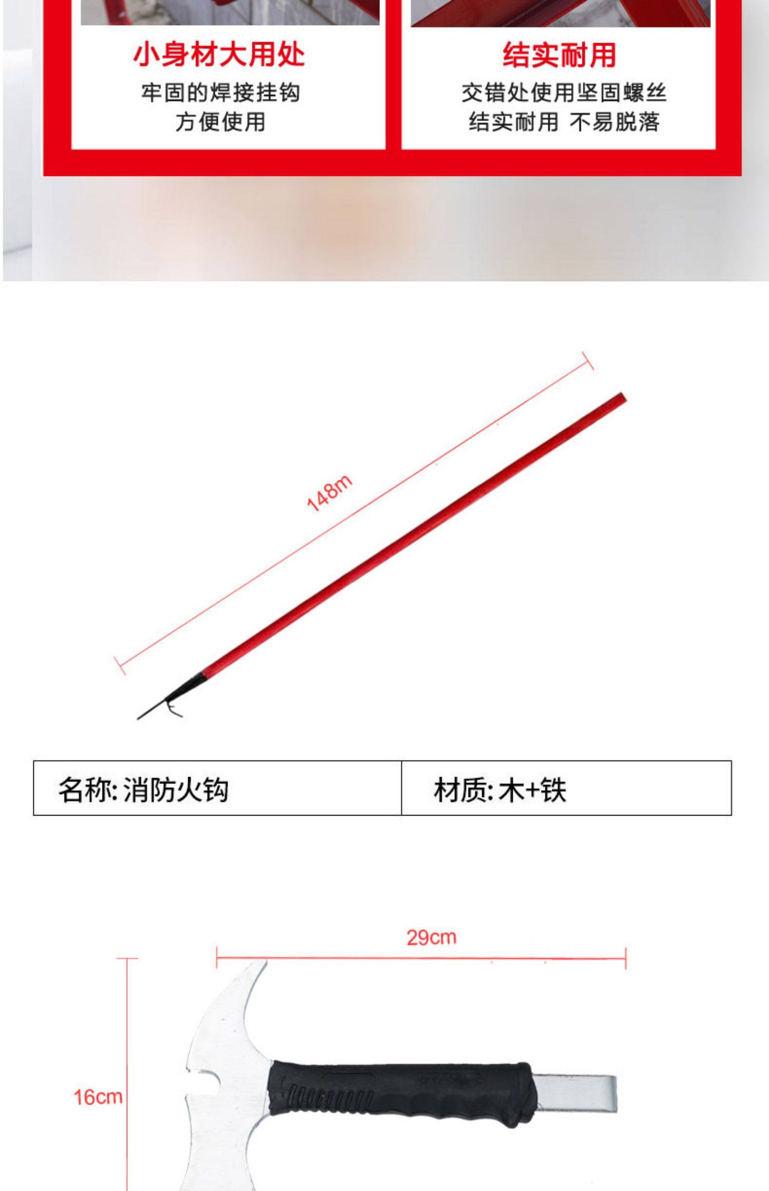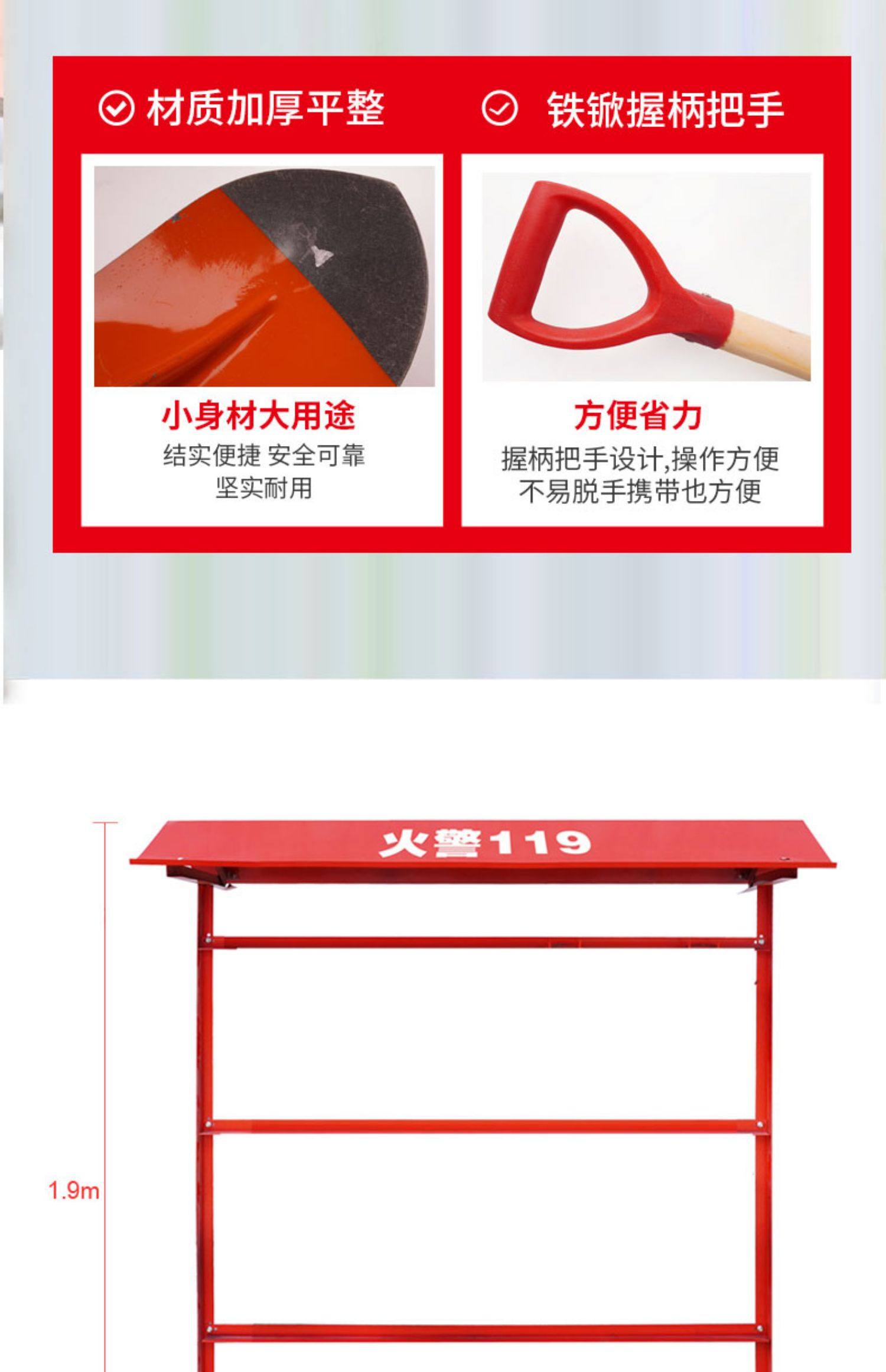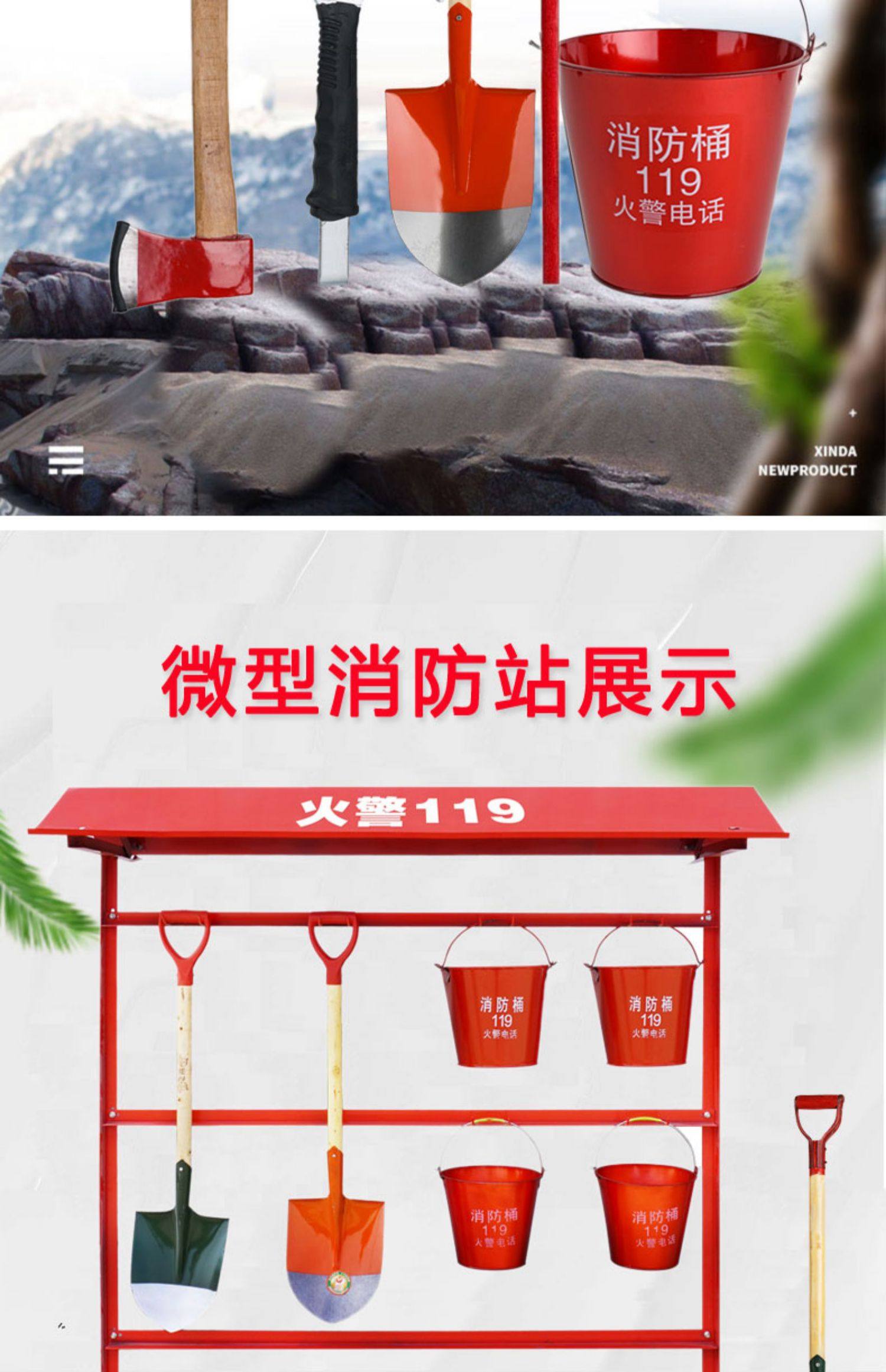 소방용 삽, 황사통, 반원형 소방 장비 선반, 연습용 통, 큰 도끼, 횃불, 갈고리, 삽통, 허리 도끼