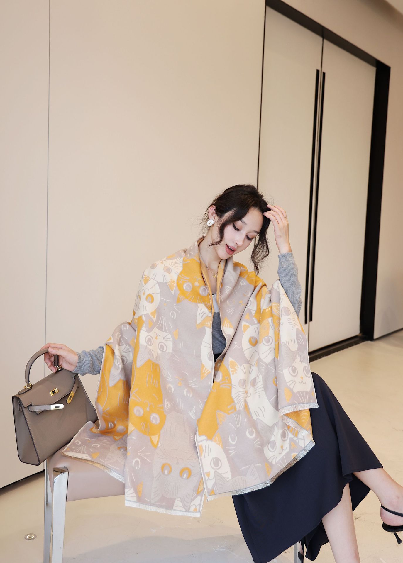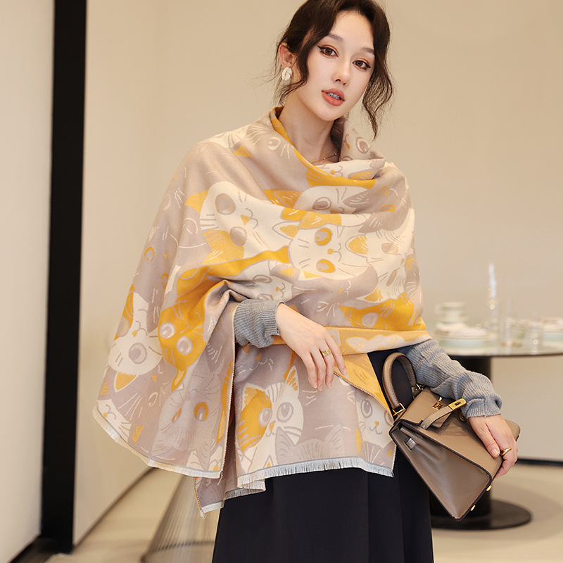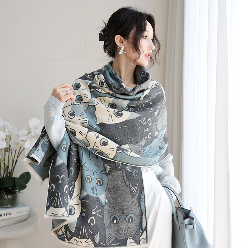 겨울 예술적 모방 캐시미어 스카프 여성의 우아한 새 풍경 꽃 스카프 두꺼운 따뜻한 방풍 올매치 목도리