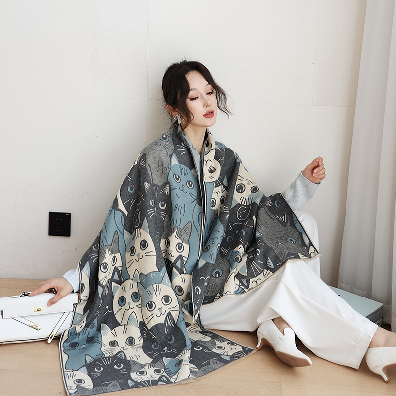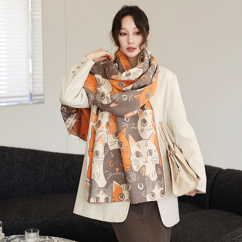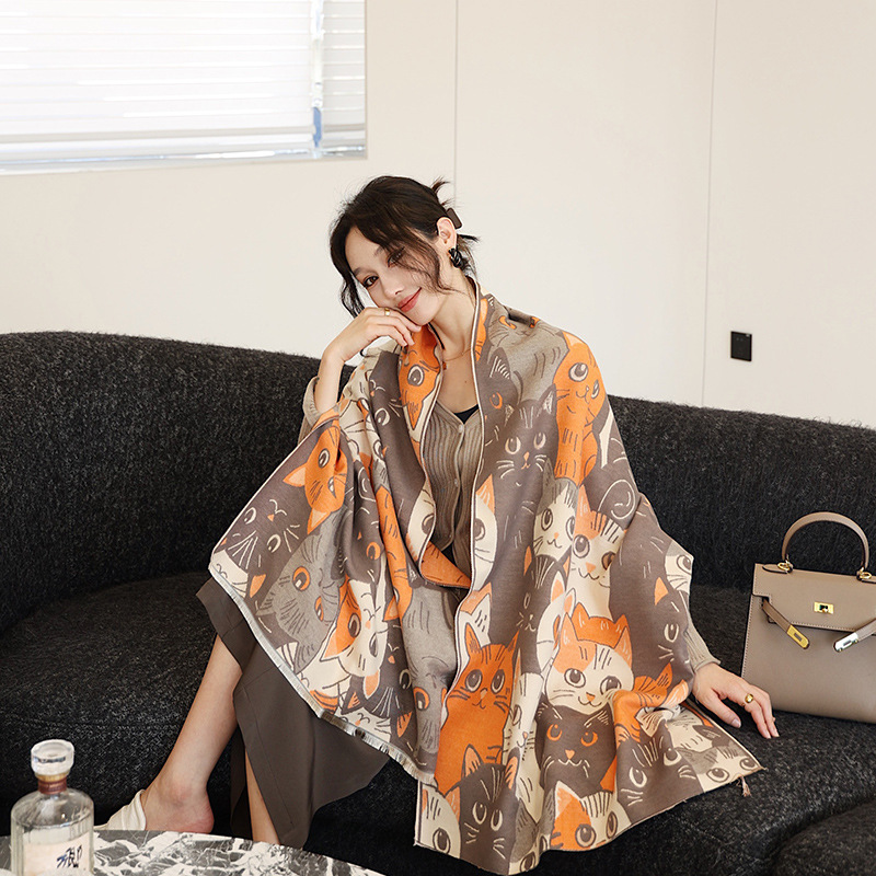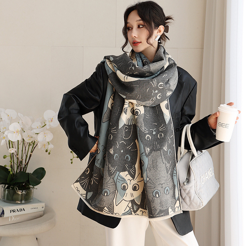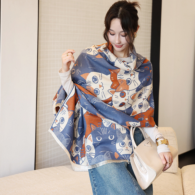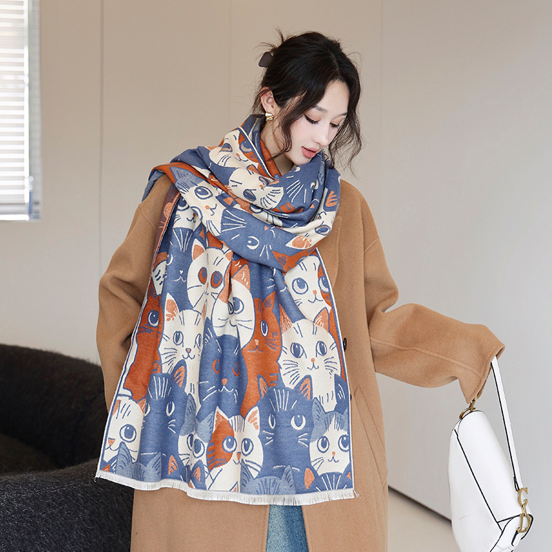 겨울 예술적 모방 캐시미어 스카프 여성의 우아한 새 풍경 꽃 스카프 두꺼운 따뜻한 방풍 올매치 목도리스토어 가기