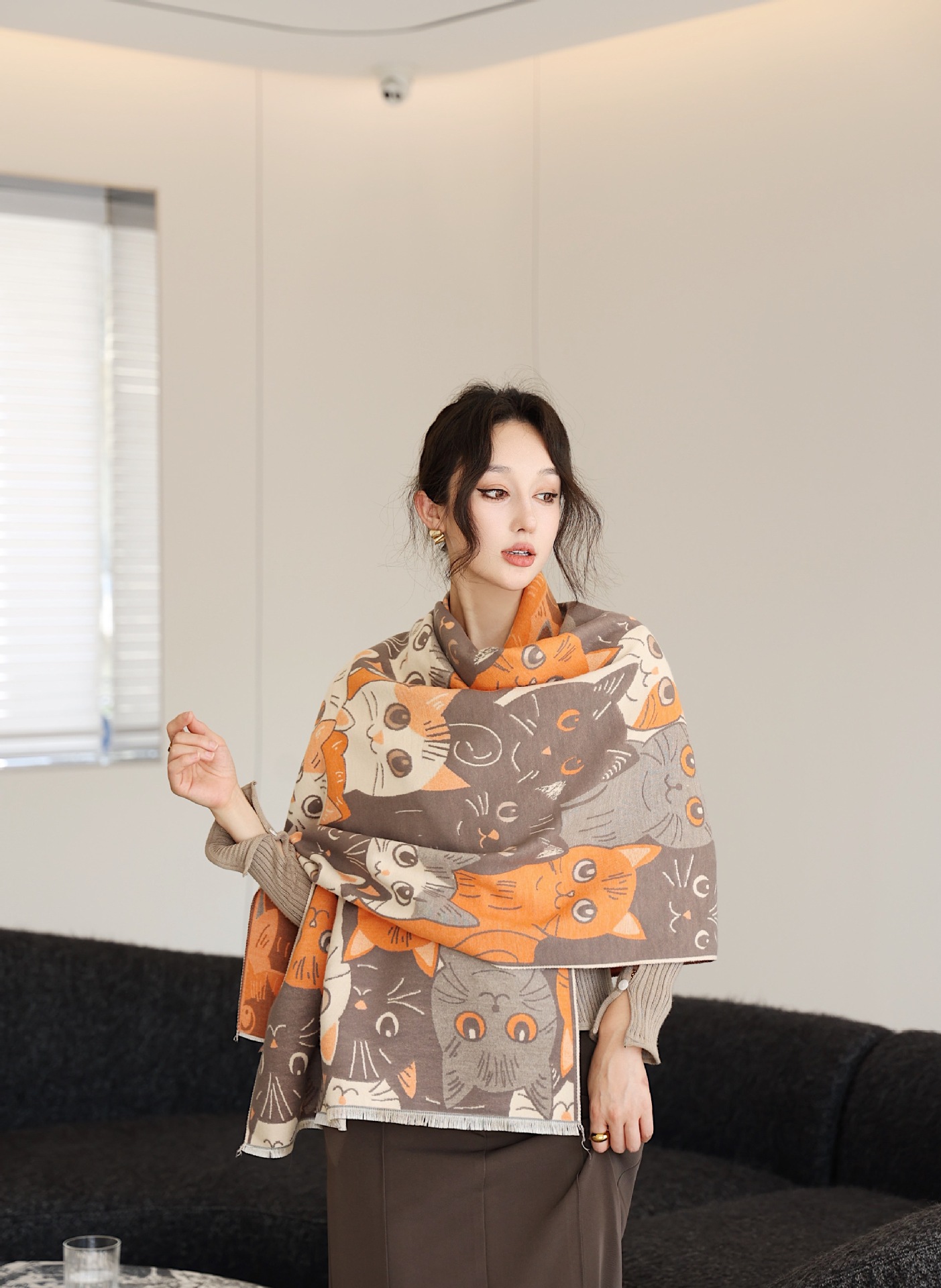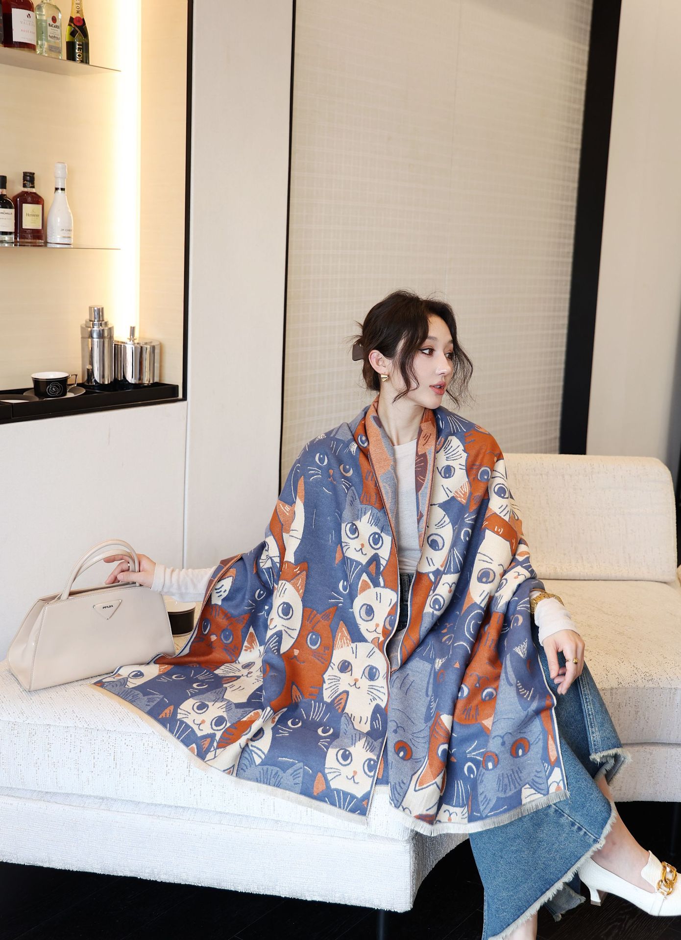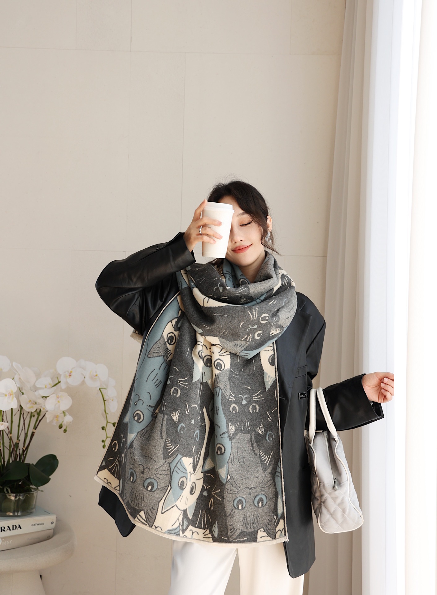 겨울 예술적 모방 캐시미어 스카프 여성의 우아한 새 풍경 꽃 스카프 두꺼운 따뜻한 방풍 올매치 목도리스토어 가기