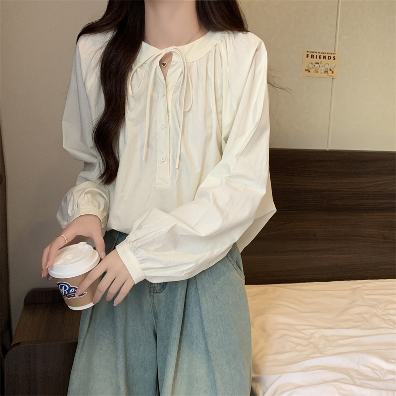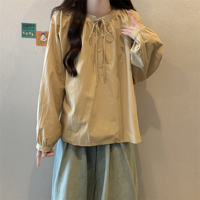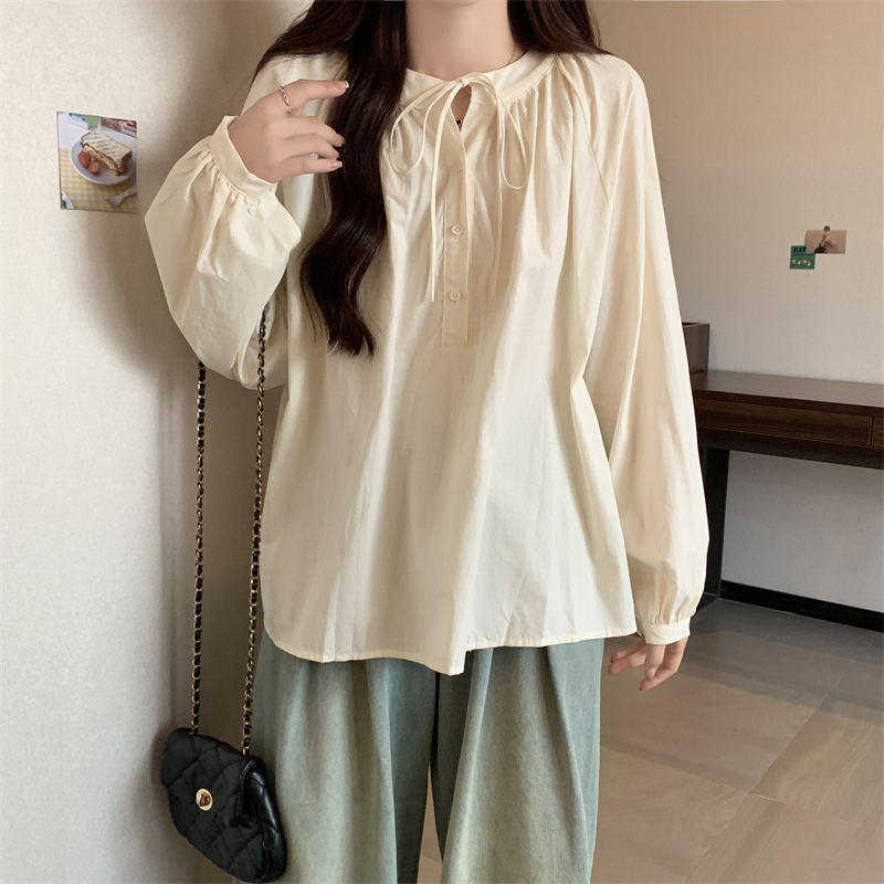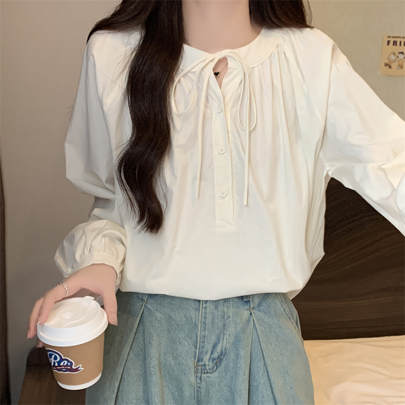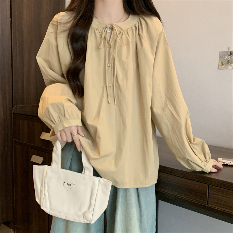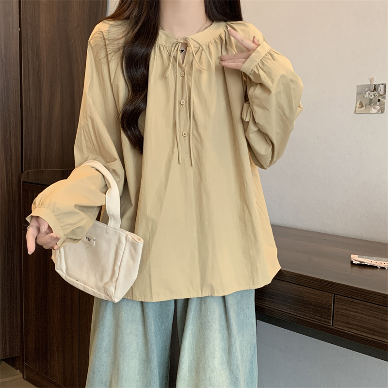 디자인 센스 달콤한 긴팔 셔츠 여성의 봄과 가을 플러스 사이즈 통통녀 슬림 배꼽 숨기기 살 넓은 어깨 유럽 스타일 탑스토어 가기