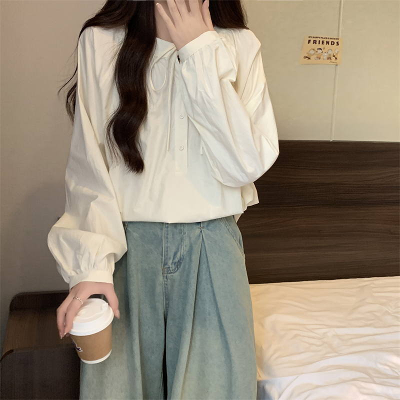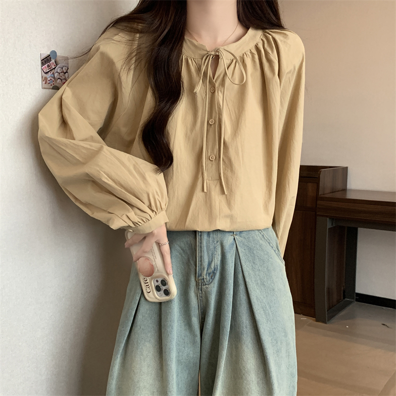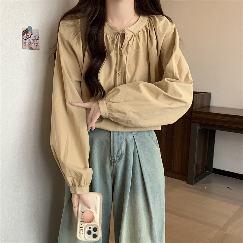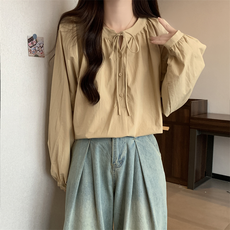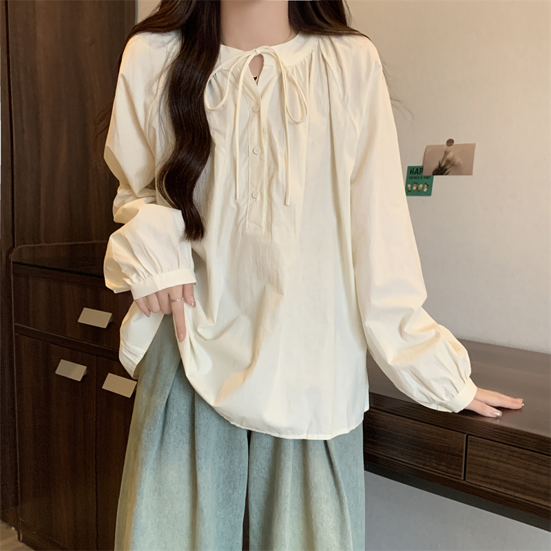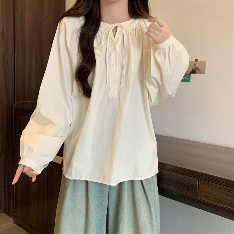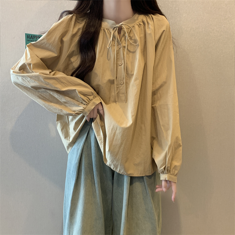 디자인 센스 달콤한 긴팔 셔츠 여성의 봄과 가을 플러스 사이즈 통통녀 슬림 배꼽 숨기기 살 넓은 어깨 유럽 스타일 탑스토어 가기