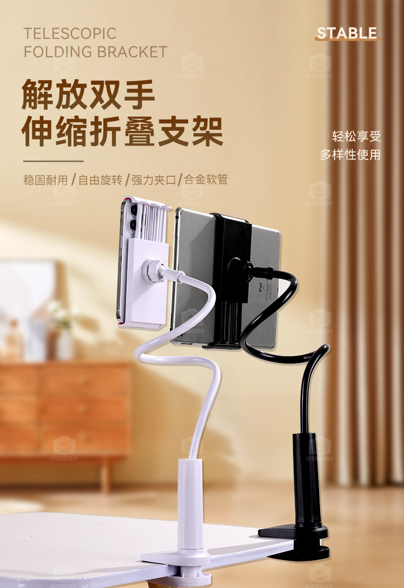 게으른 휴대 전화 브래킷 플랫 브래킷 라이브 침대 옆 데스크탑 오버 헤드 촬영 드라마 유물 나선형 브래킷 도매