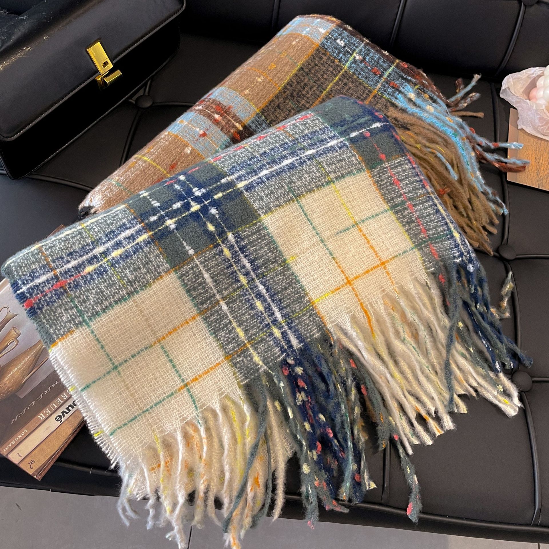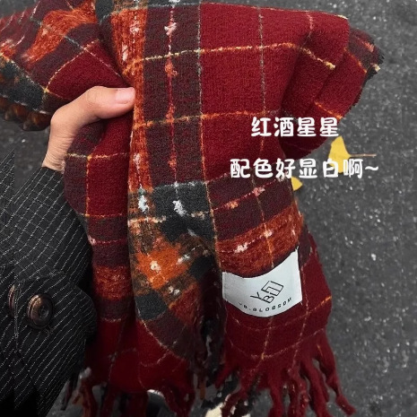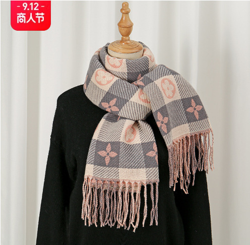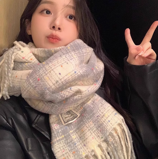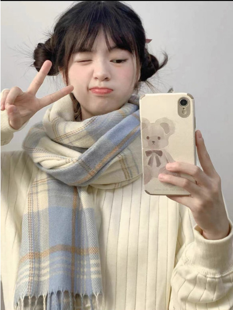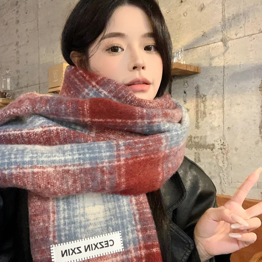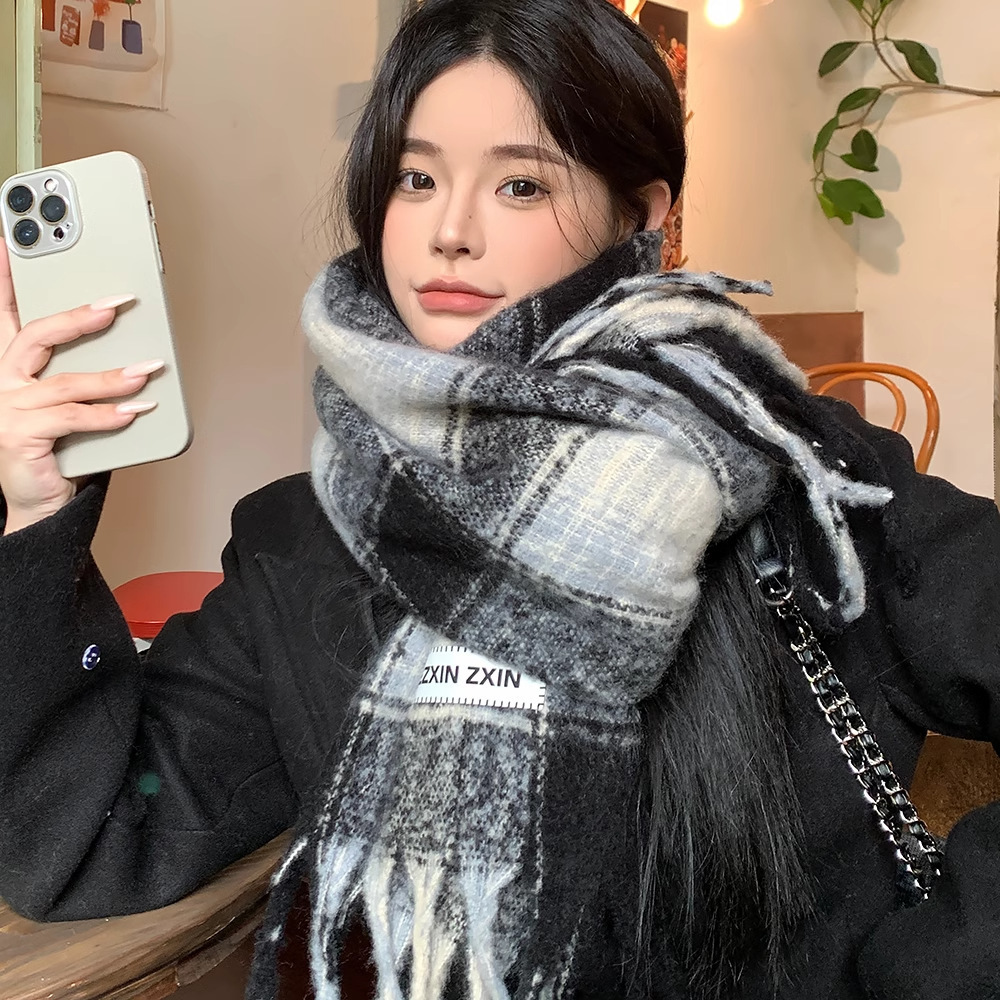 가을 겨울 신상 체크무늬 스카프 여성용 한국 스타일 패션 다용도 모조 캐시미어 두꺼운 보온 니트 스카프스토어 가기