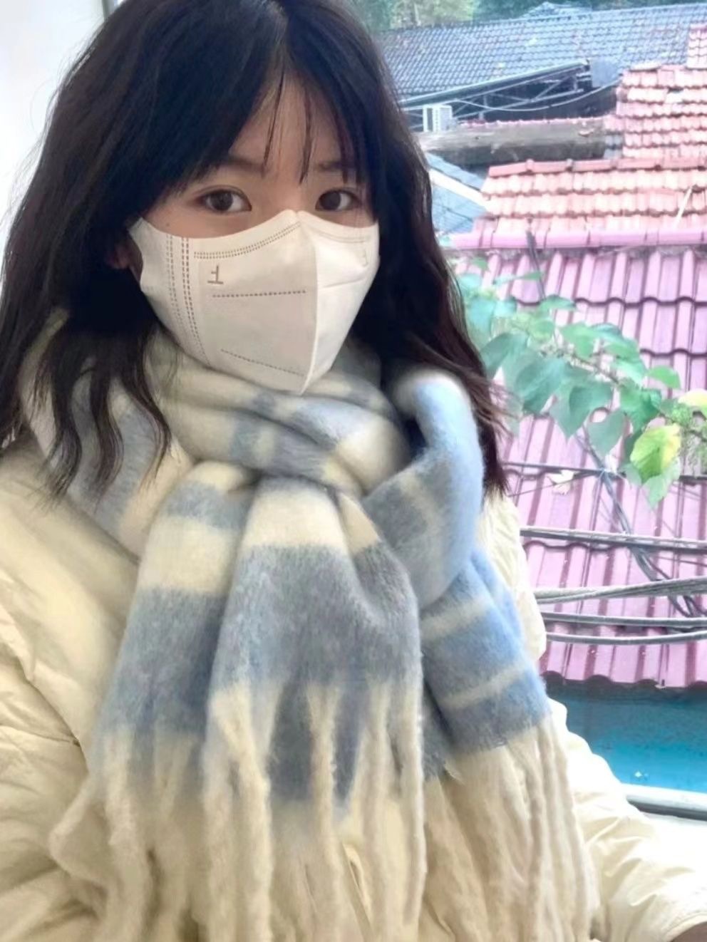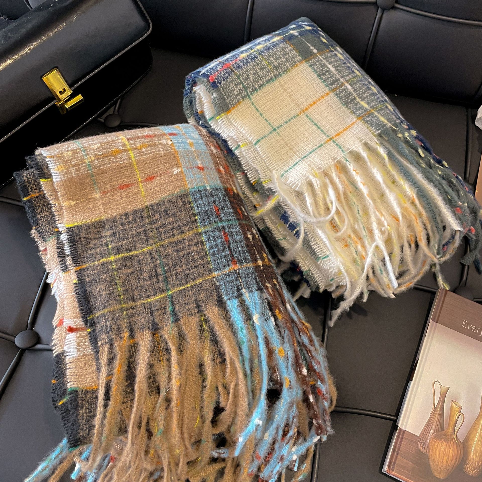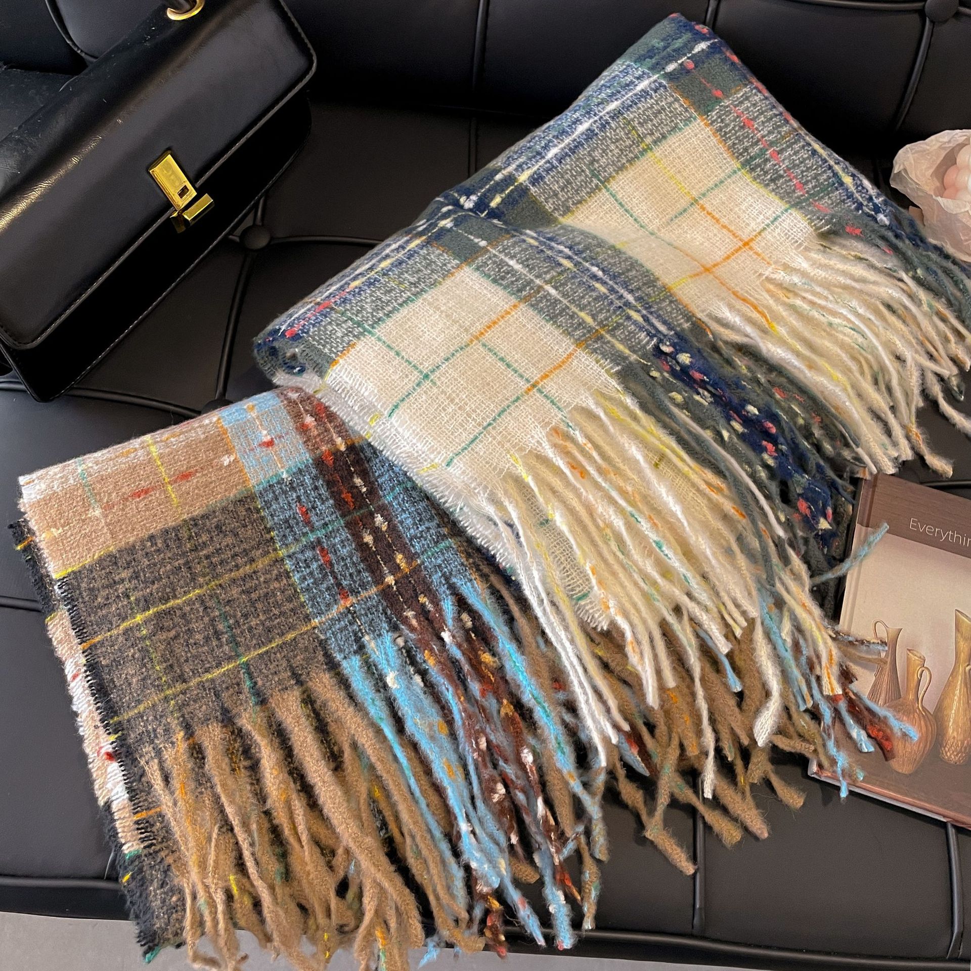 가을 겨울 신상 체크무늬 스카프 여성용 한국 스타일 패션 다용도 모조 캐시미어 두꺼운 보온 니트 스카프스토어 가기