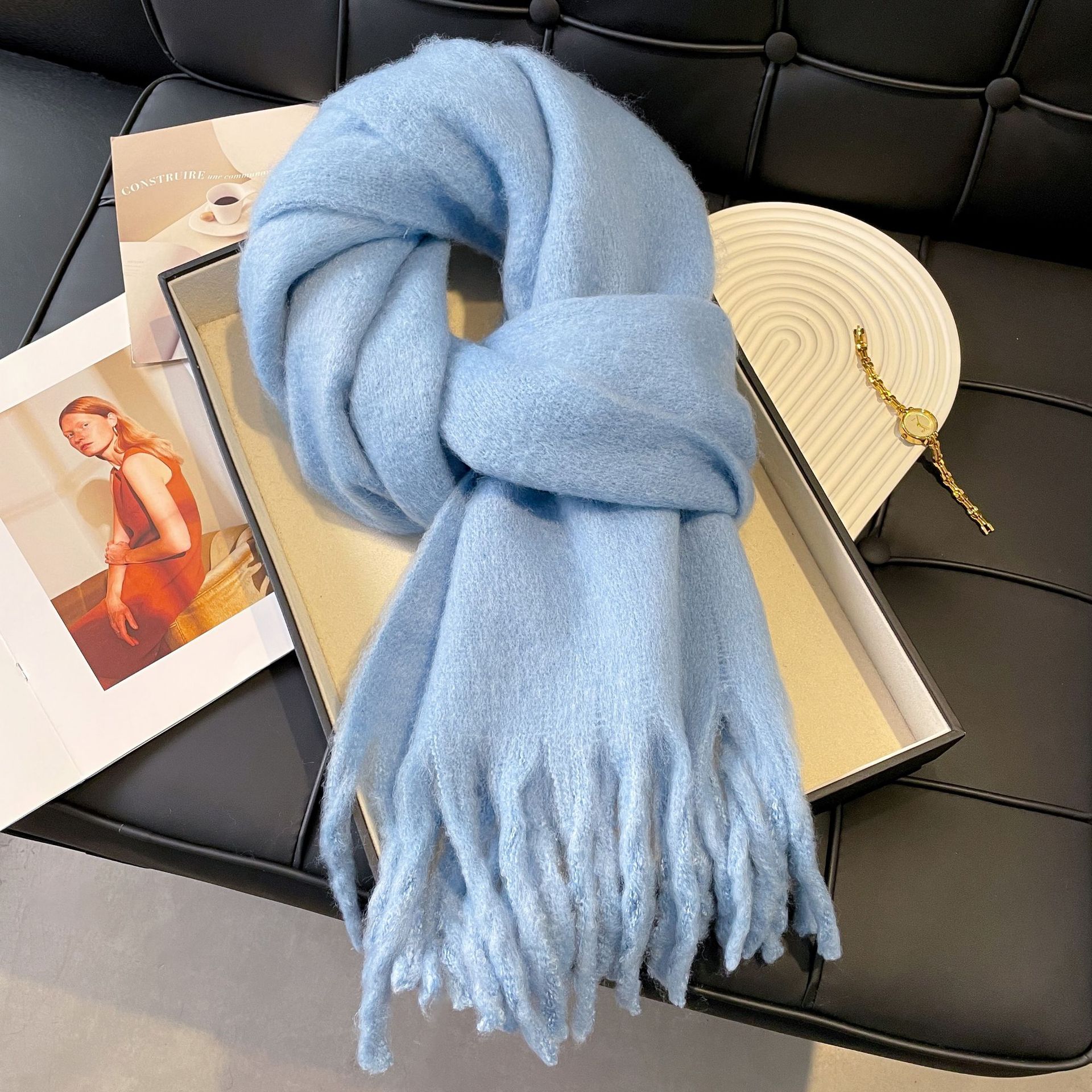 • 모헤어 솔리드 컬러-대형 버전 헤이즈 블루