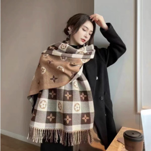 가을 겨울 신상 체크무늬 스카프 여성용 한국 스타일 패션 다용도 모조 캐시미어 두꺼운 보온 니트 스카프