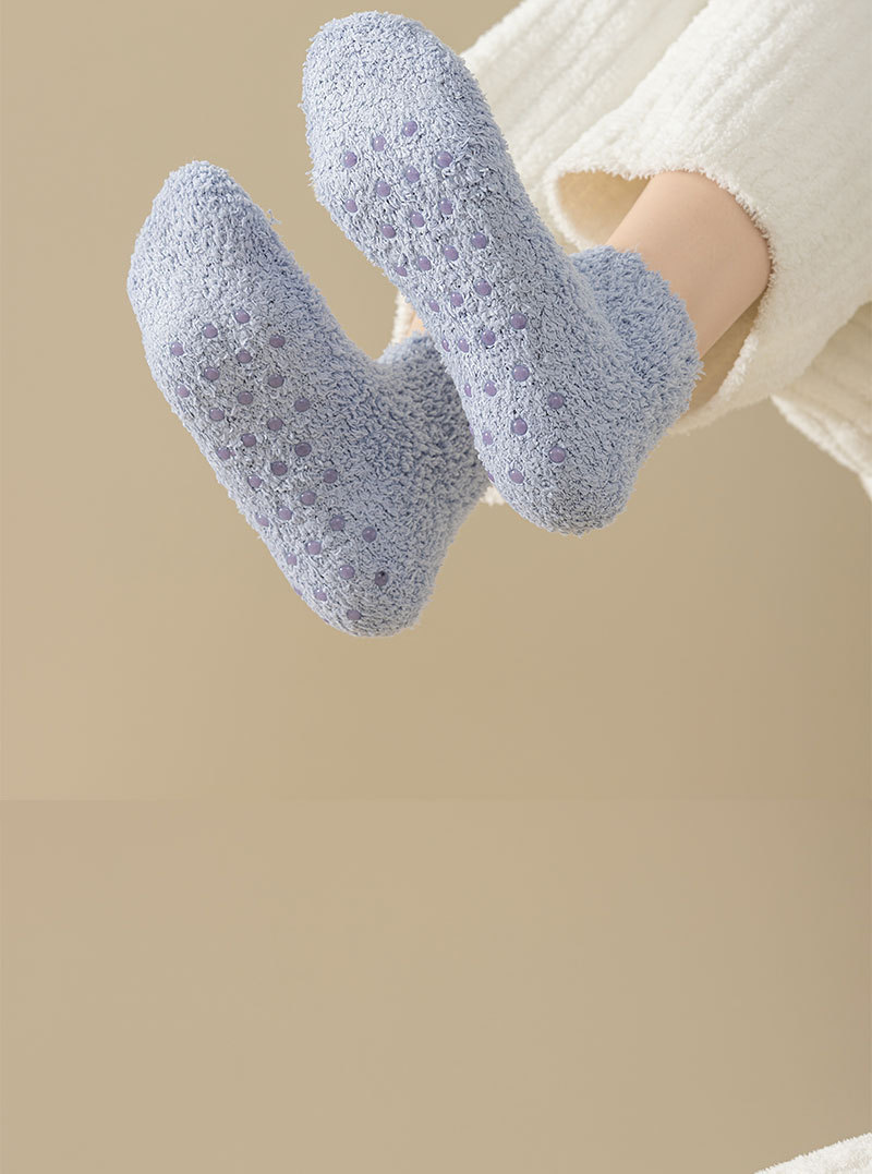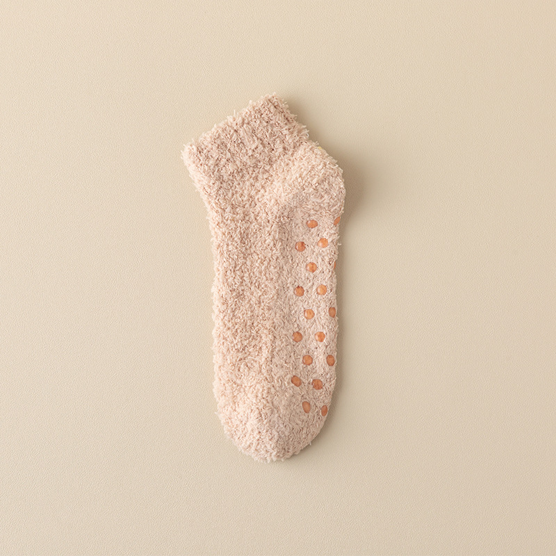 캔디 컬러 미끄럼 방지 분배 보트 양말 여성의 겨울 두꺼운 바닥 양말 슬리퍼 양말 산호 양털 홈 양말 국경스토어 가기