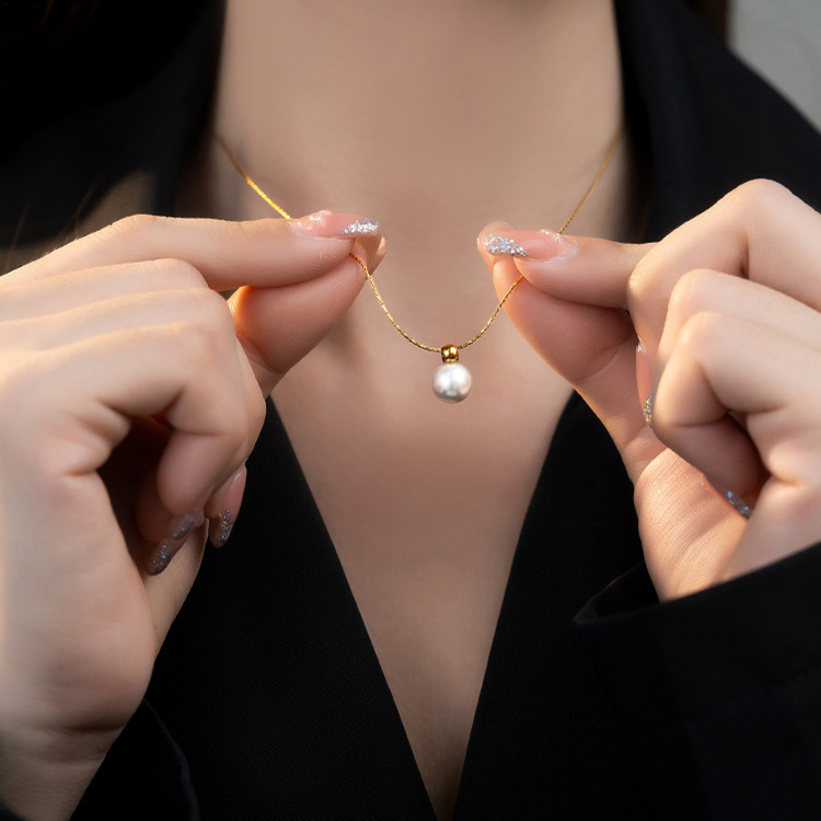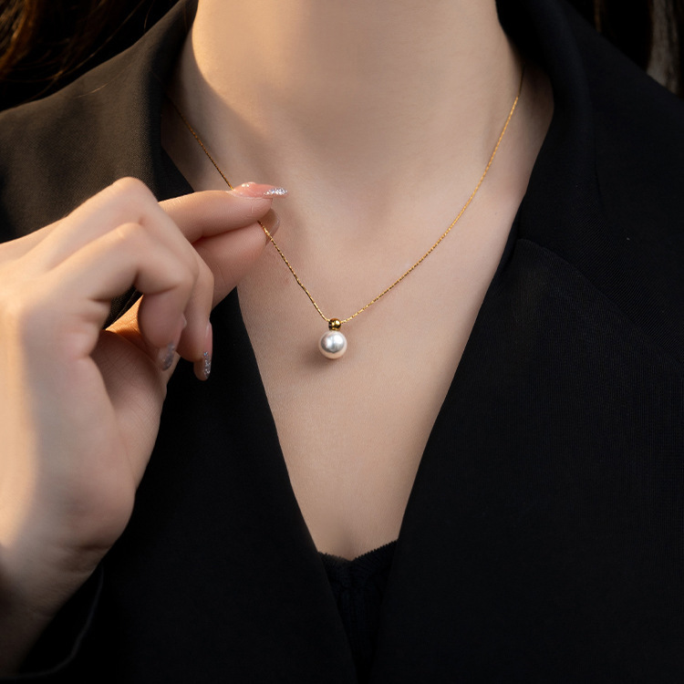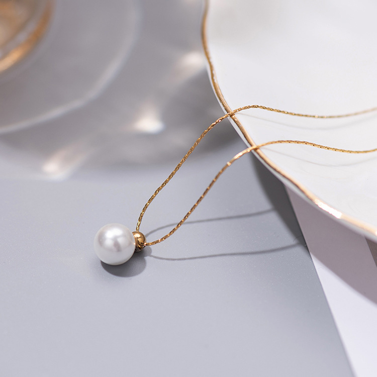 새로운 우아한 진주 싱글 레이어 아주 좋은 체인 라운드 비드 18K 골드 목걸이 여성 패션 간단한 틈새 체인스토어 가기