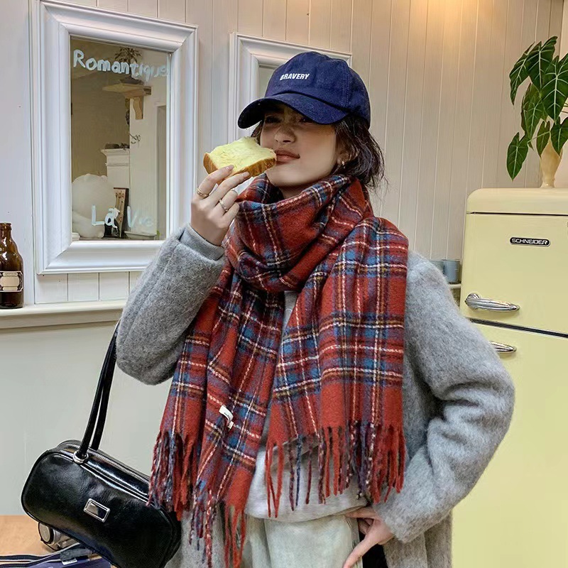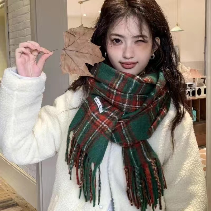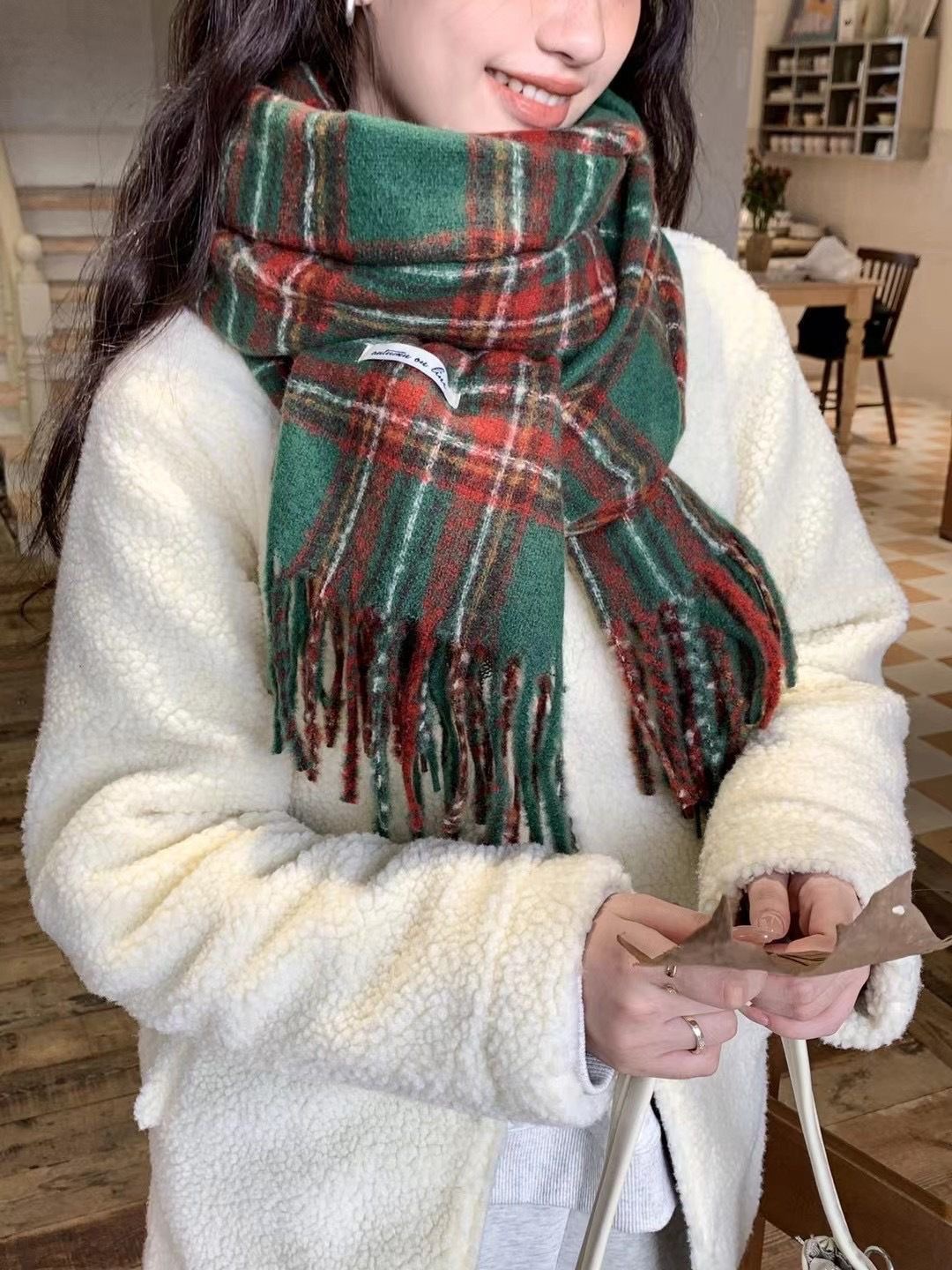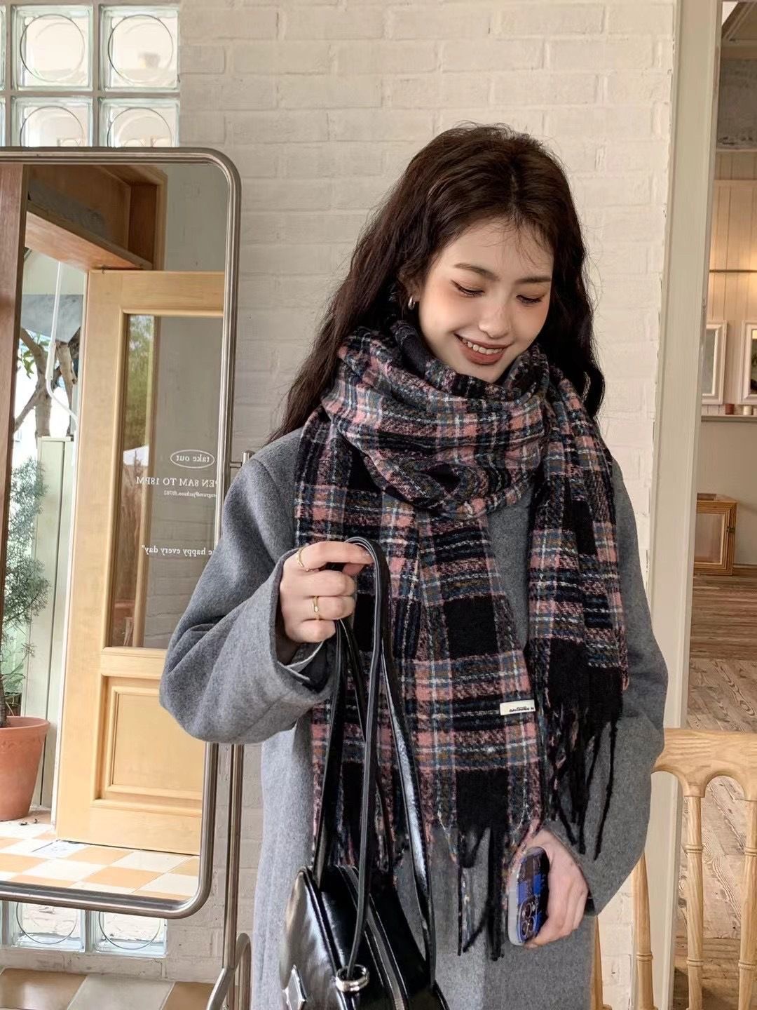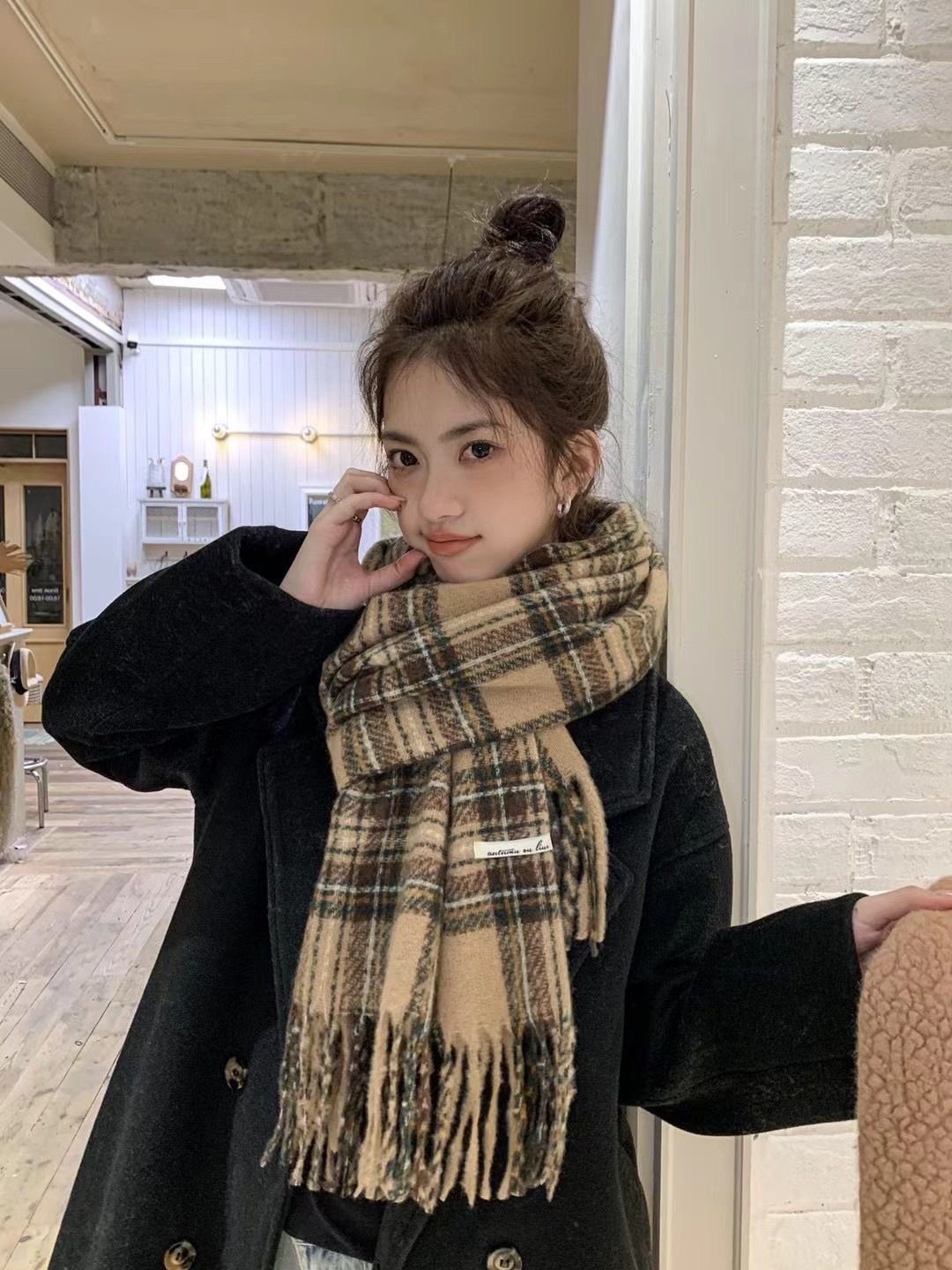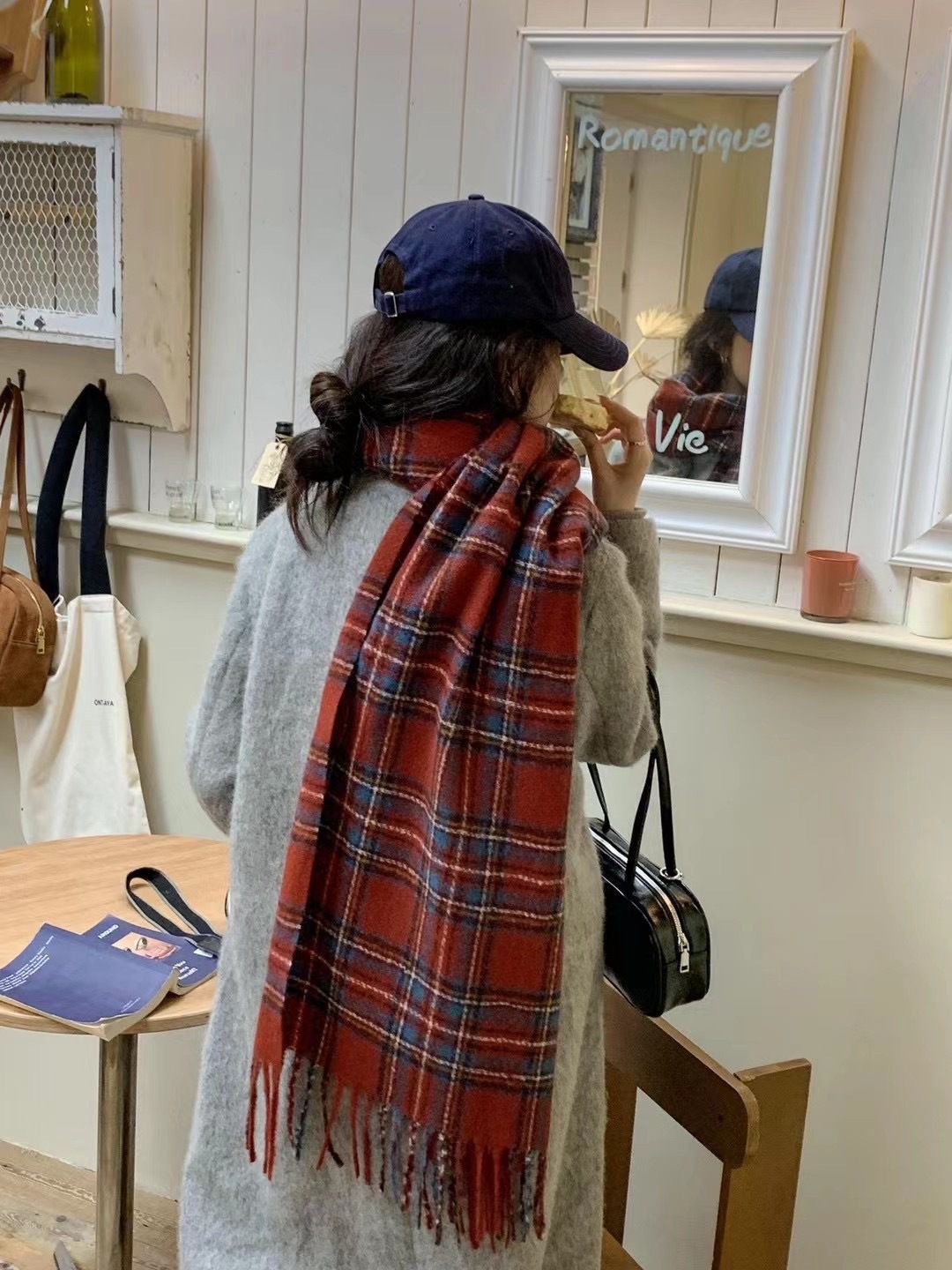 빈티지 격자 무늬 일본과 한국 스타일 분위기 격자 무늬 스카프 여성 새해 크리스마스 대비 색상 따뜻한 목도리 학생 스카프스토어 가기