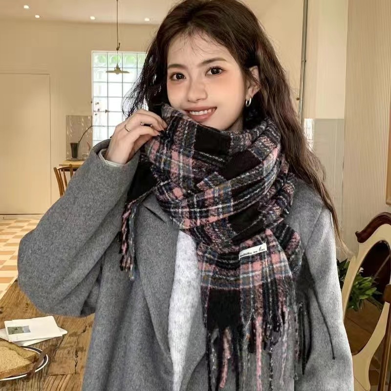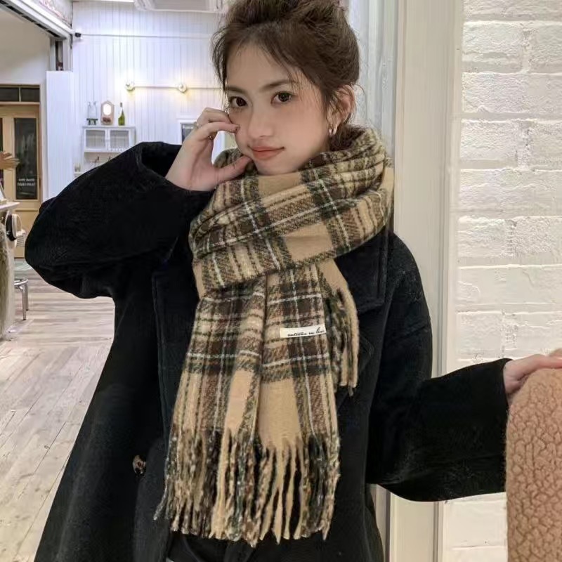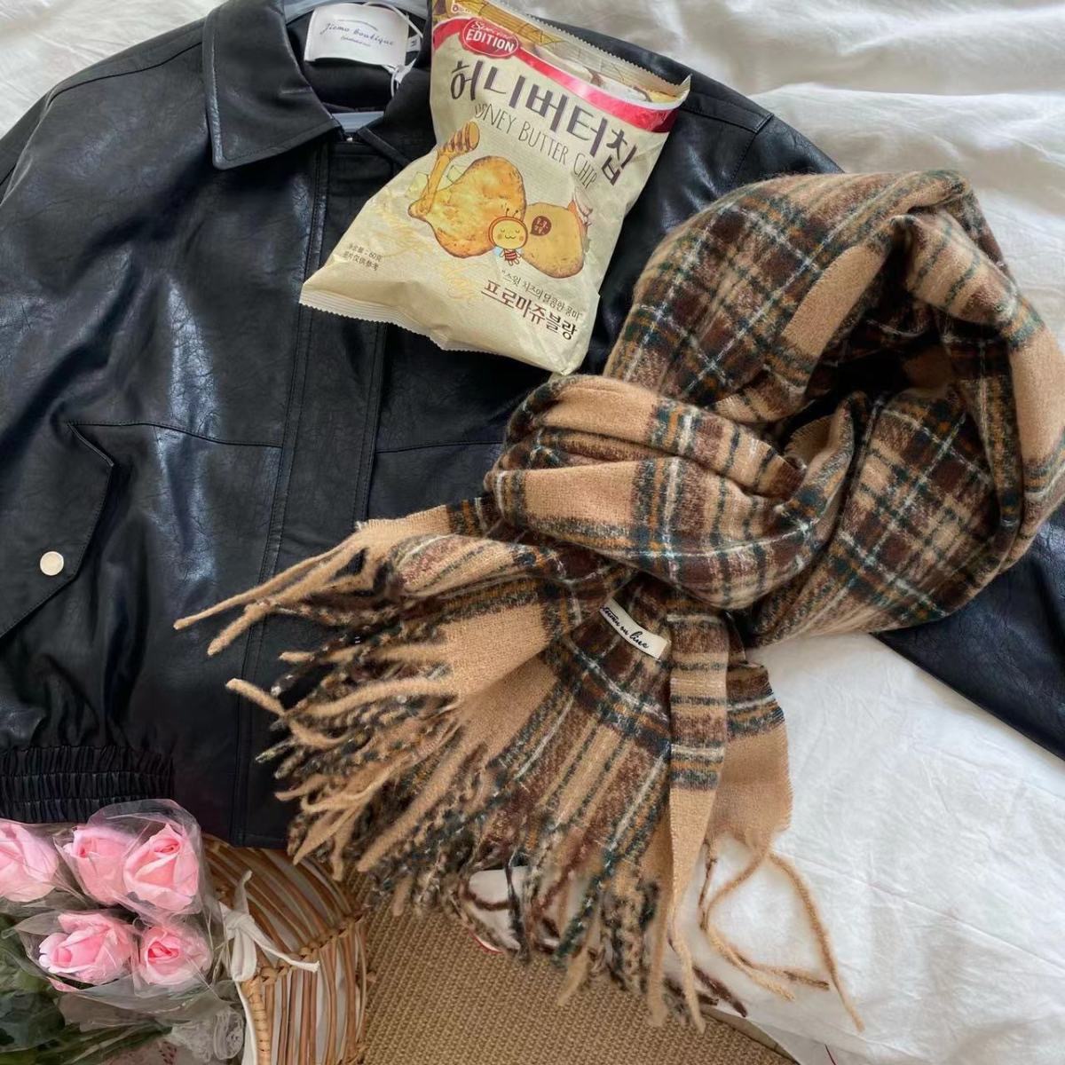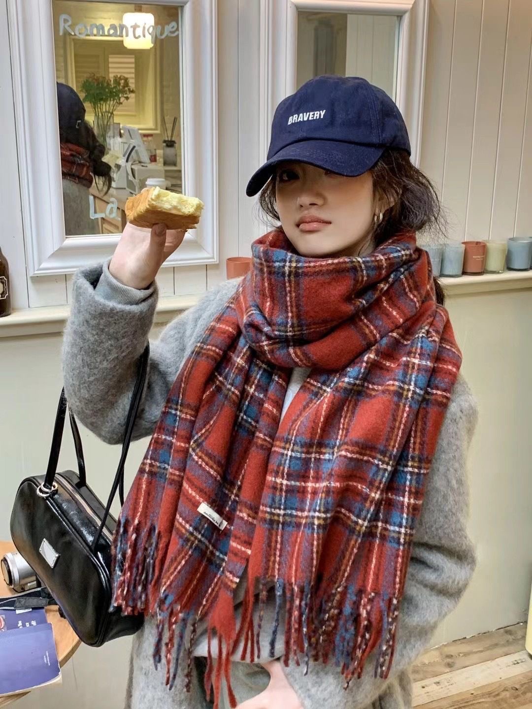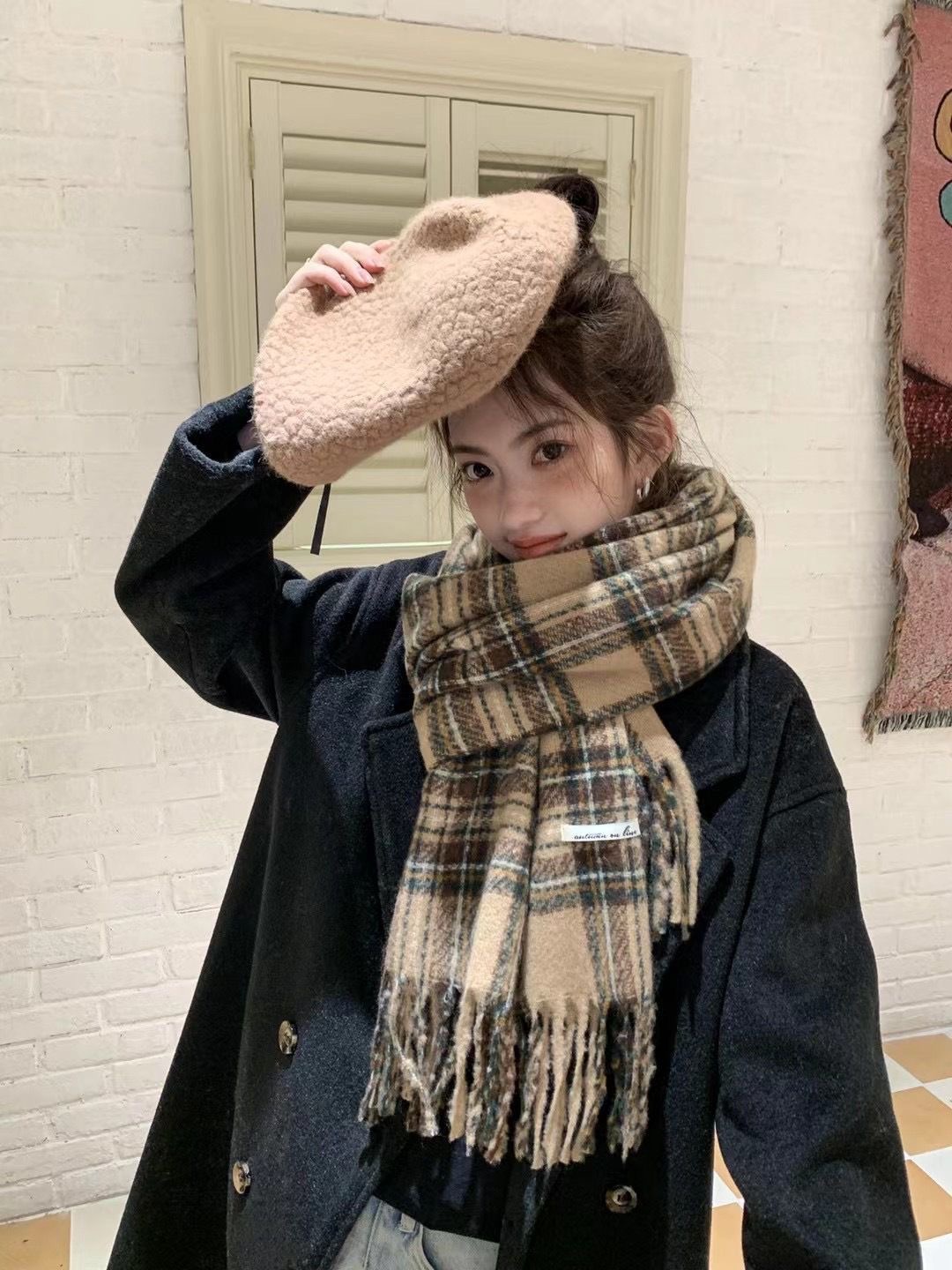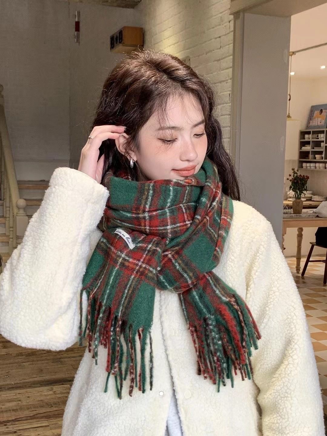 빈티지 격자 무늬 일본과 한국 스타일 분위기 격자 무늬 스카프 여성 새해 크리스마스 대비 색상 따뜻한 목도리 학생 스카프스토어 가기