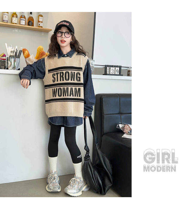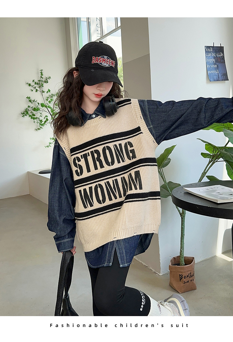 소녀 니트 조끼 세트 가을 2024 새로운 한국 스타일 유행 데님 셔츠 투피스 세트스토어 가기