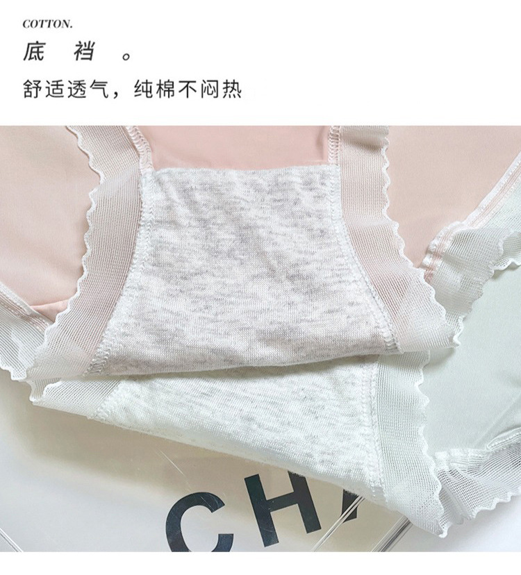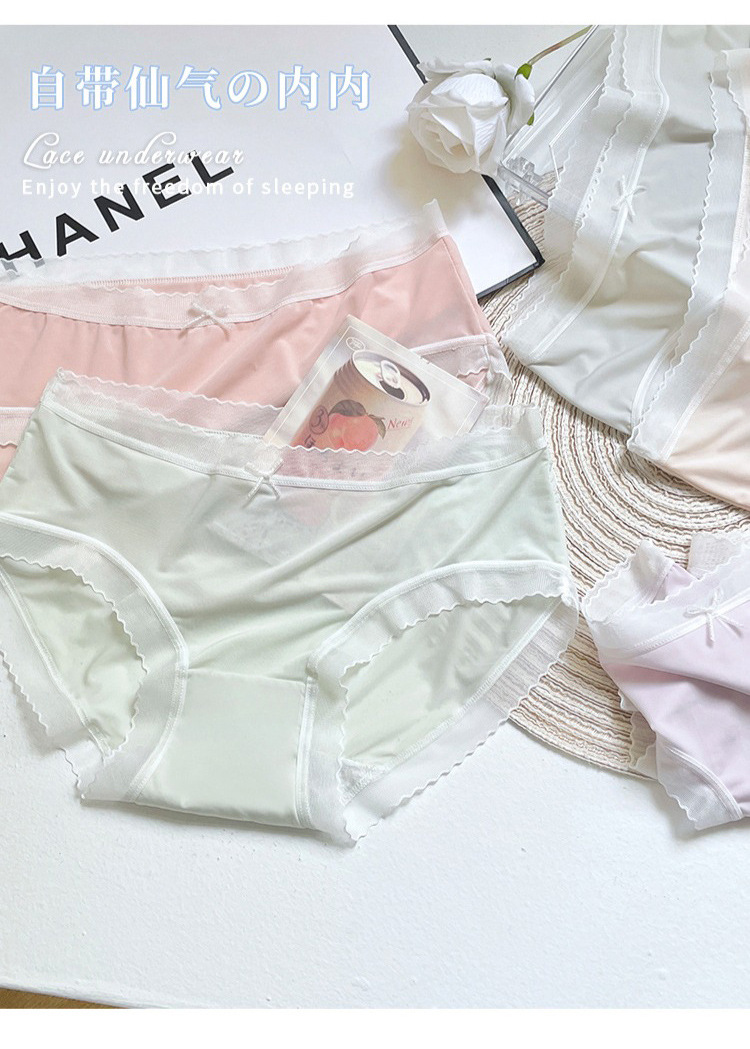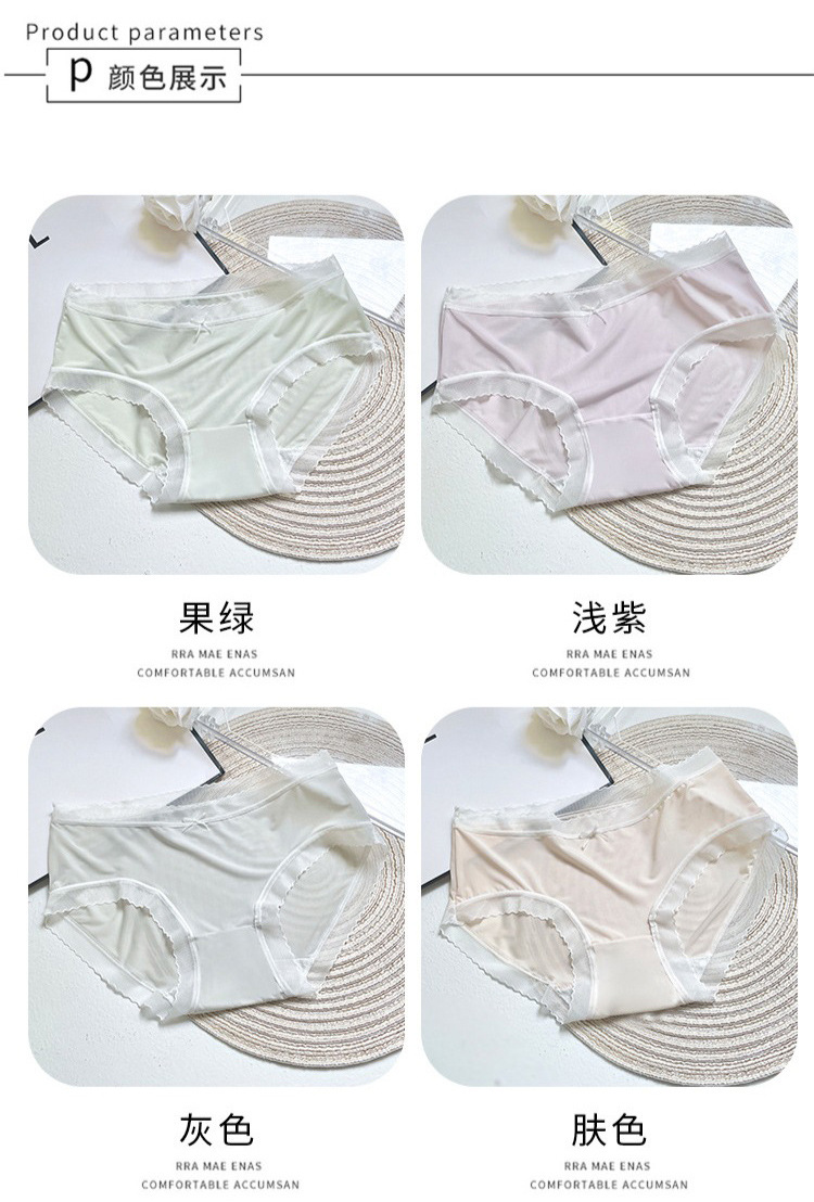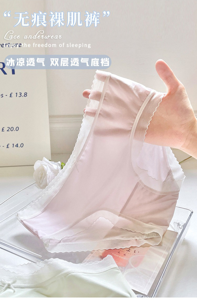 아이스 실크 tracless 속옷 여성의 여름 얇은 통기성 중간 허리 순수 코튼 Crotch 섹시한 레이스 인터넷 인기 여자 브리프스토어 가기