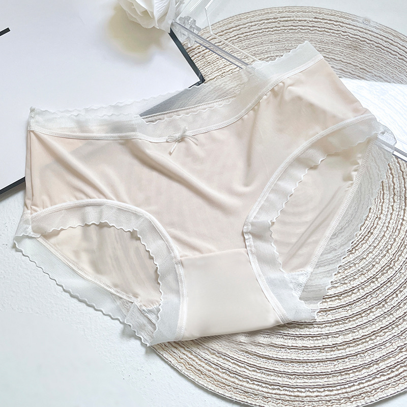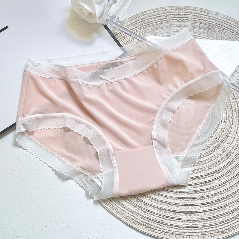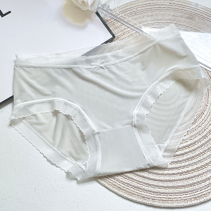 아이스 실크 tracless 속옷 여성의 여름 얇은 통기성 중간 허리 순수 코튼 Crotch 섹시한 레이스 인터넷 인기 여자 브리프