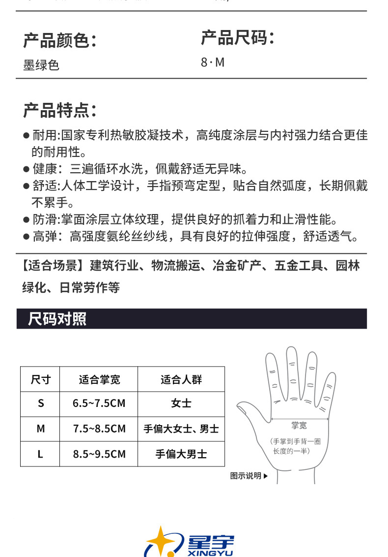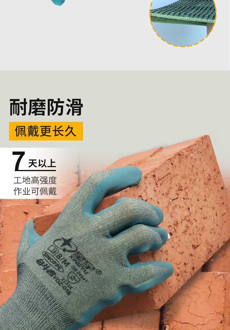 Xingyu 노동 보호 장갑 라텍스 댐핑 내마모성 미끄럼 방지 높은 탄성 통기성 취급 장갑 건설 현장스토어 가기