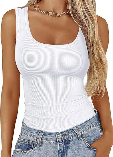 2024 아마존 여성용 스퀘어 넥 골지 티셔츠 민소매 신축성 슬림핏 기본 탱크탑 여성 상의 핫걸스토어 가기