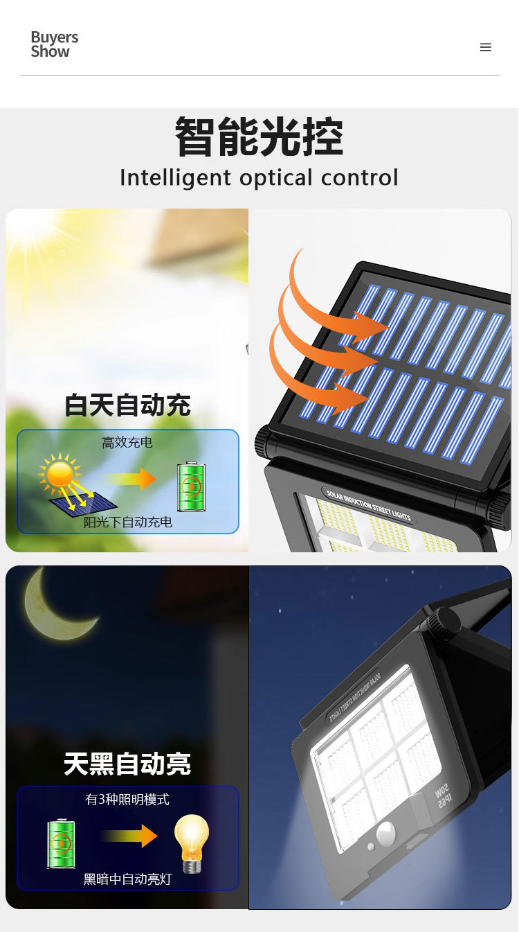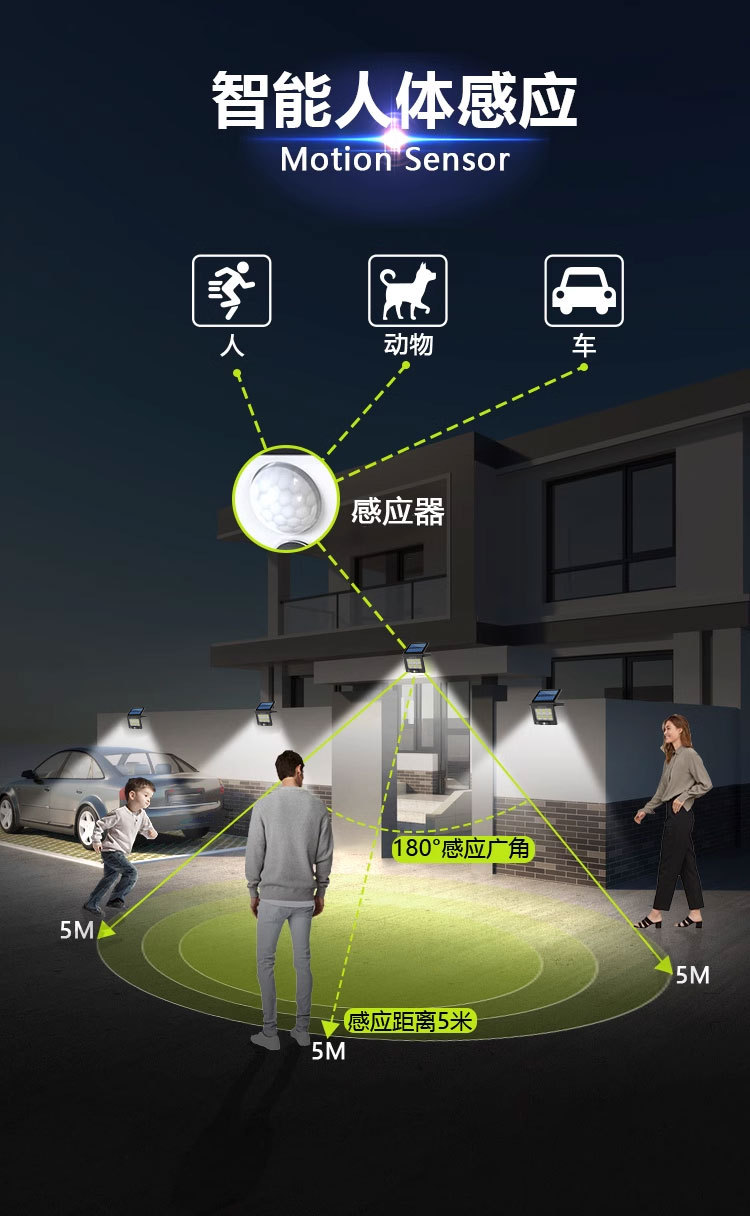 태양 광 조명은 원격 제어 지능형 유도 정원 조명 야외 조명 방수 가로등을 갖춘 USB 충전식 가정 일 수 있습니다.스토어 가기