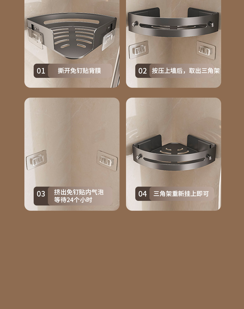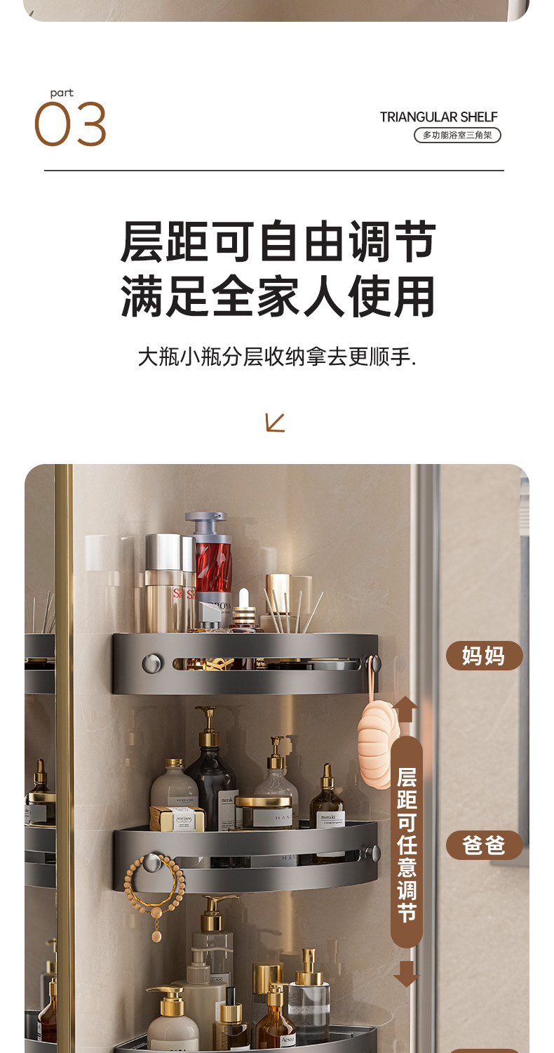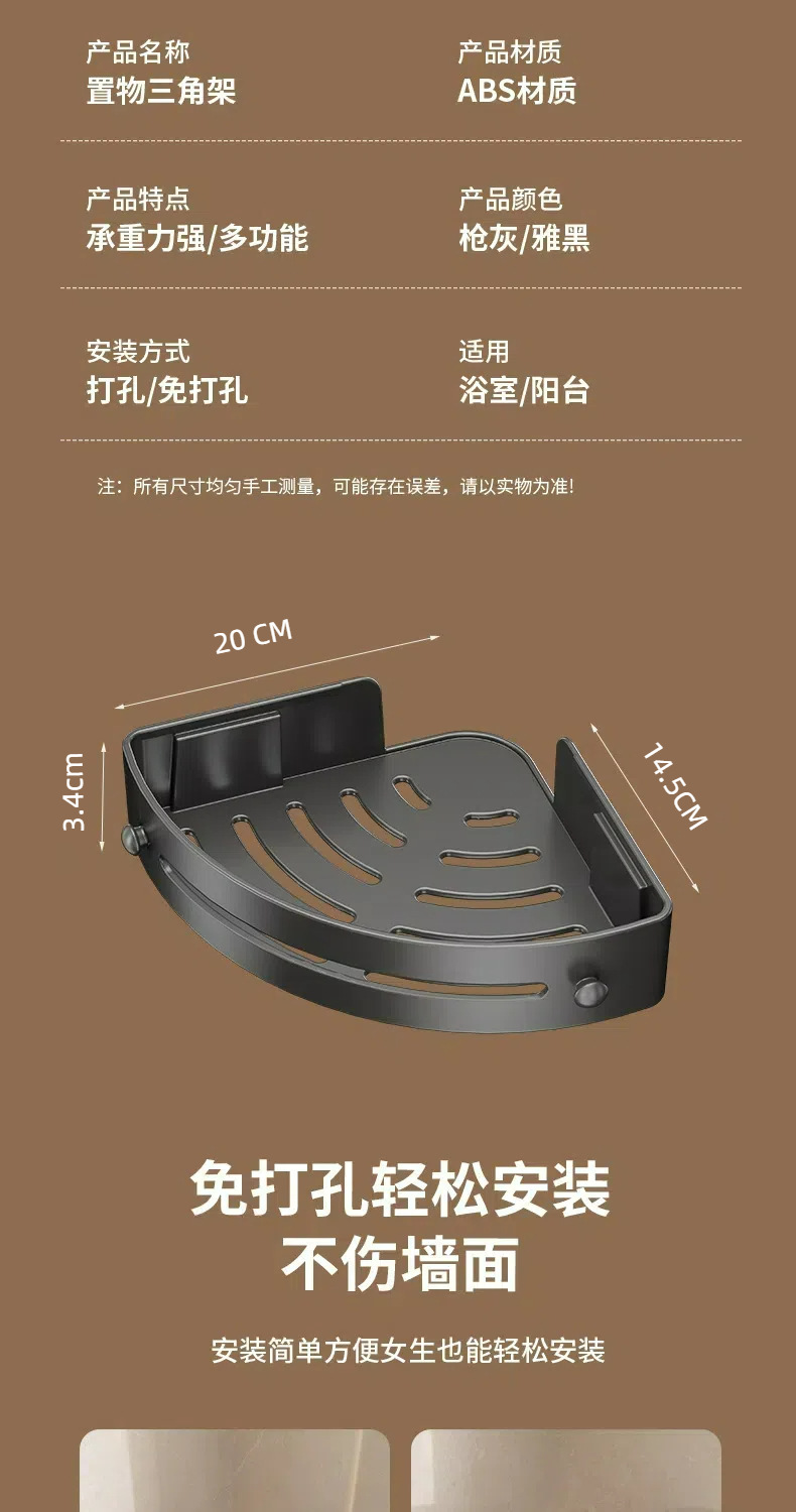 건식-습식 분리 비 천공 삼각형 저장 랙 욕실 보관 랙 욕실 보관 랙 욕실 수건 랙