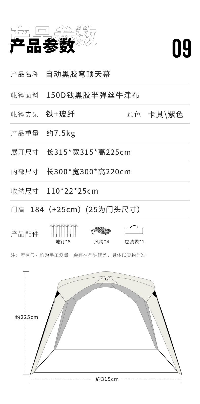 WOLF WALKER 늑대 인간 자동 돔 캐노피 빠른 오프닝 텐트 야외 캠핑 블랙 접착제 차양 태양 보호