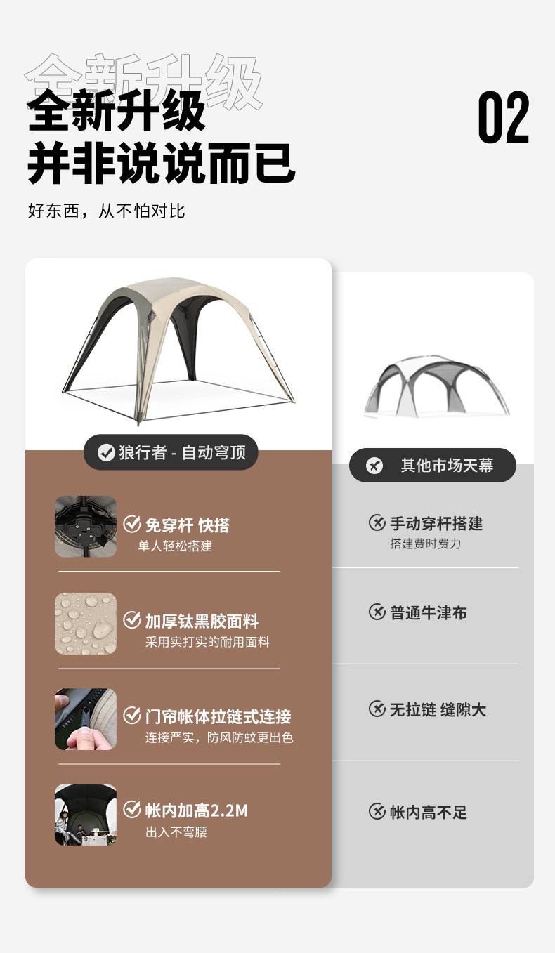 WOLF WALKER 늑대 인간 자동 돔 캐노피 빠른 오프닝 텐트 야외 캠핑 블랙 접착제 차양 태양 보호스토어 가기