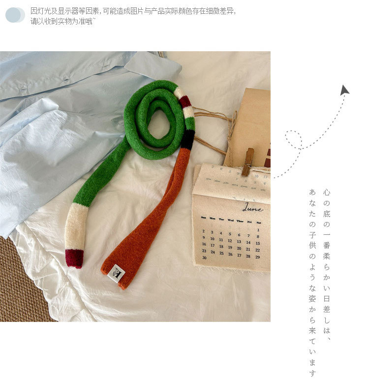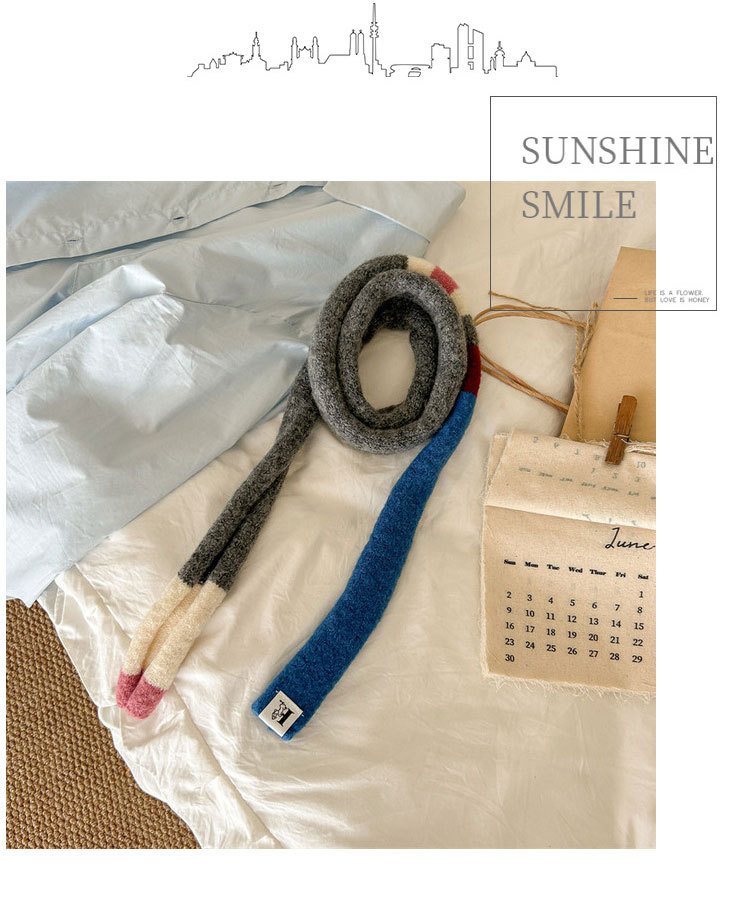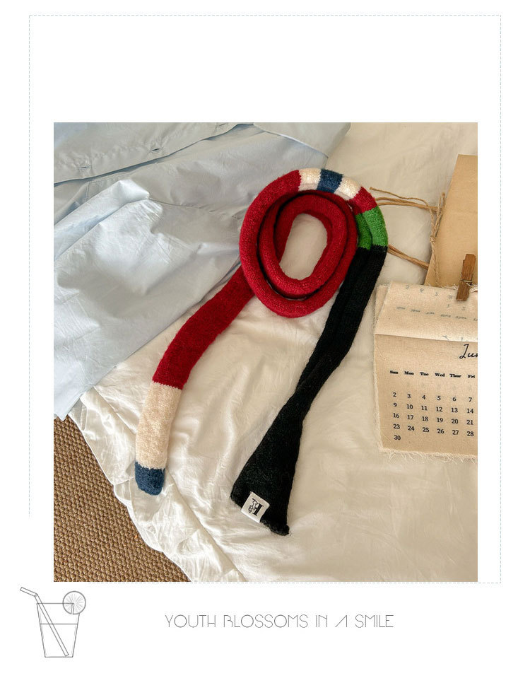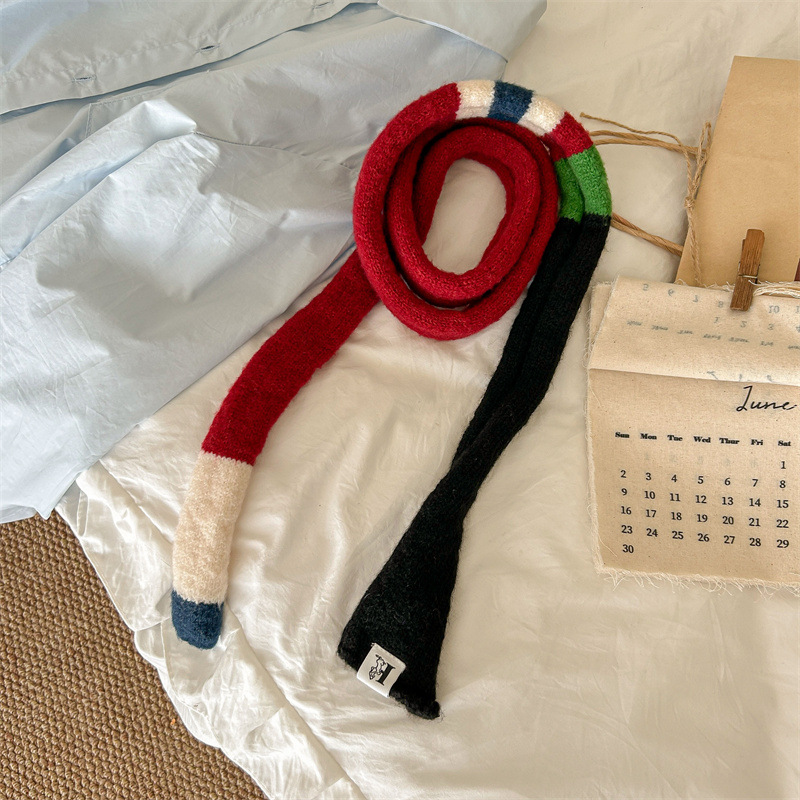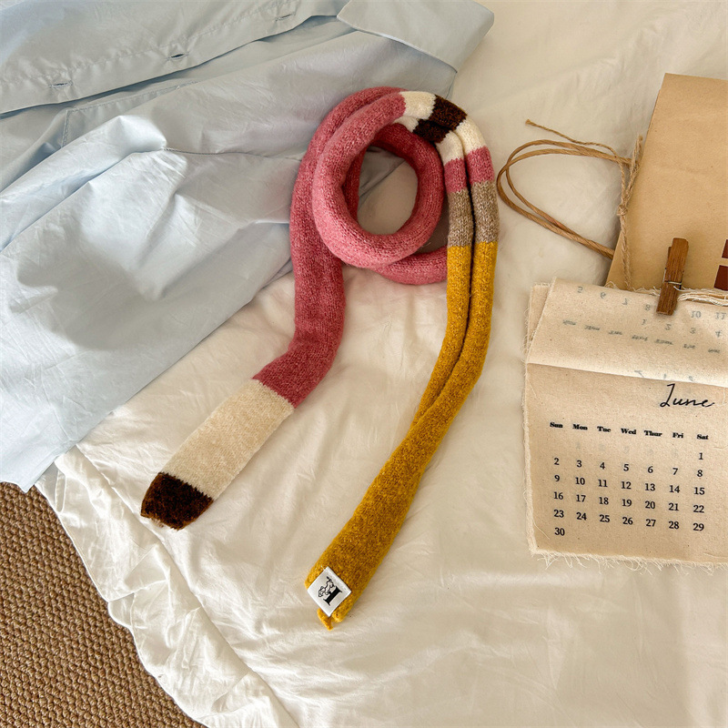 새로운 틈새 디자인 센스 스트라이프 컬러 매칭 얇은 좁은 긴 울 스카프 여성 한국 스타일 인터넷 연예인 니트 울 스카프