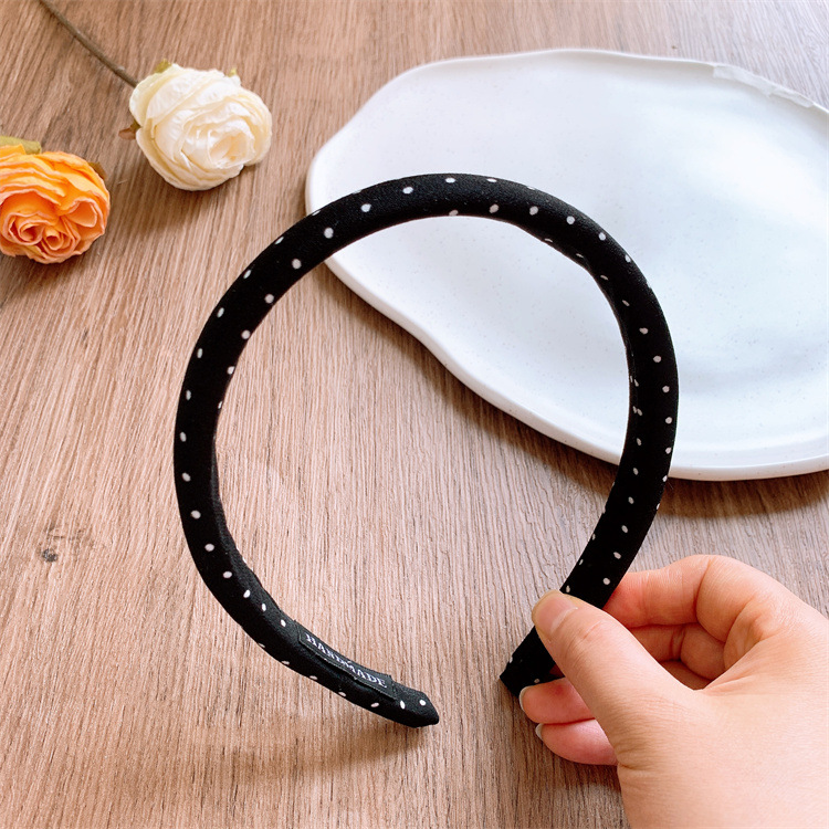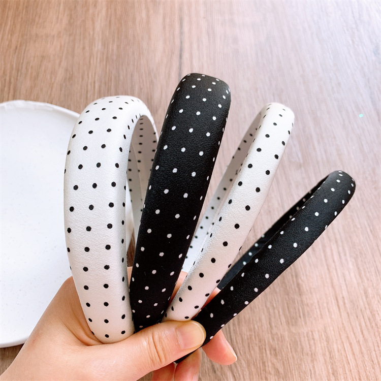 새로운 흑백 폴카 도트 패브릭 스폰지 넓은 챙이 달린 헤어 후프 여성의 높은 크랜얼 탑 워시 페이스 헤드 밴드 부모-자식 외출 헤어 스탬프
