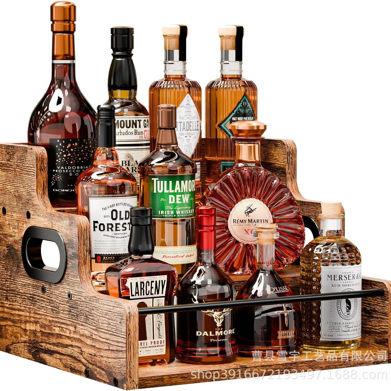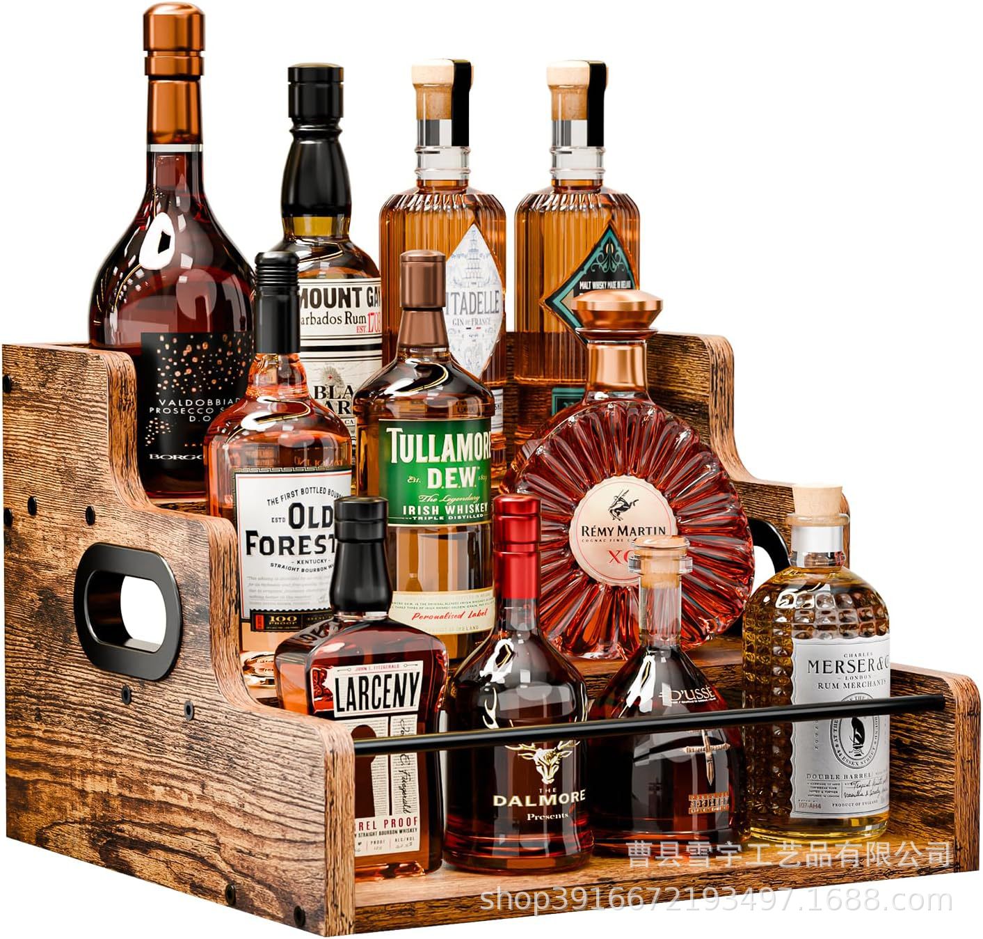 나무 랙 주방 조미료 병 저장 랙 나무 계단 와인 저장 랙 바 3 층 와인 병 디스플레이