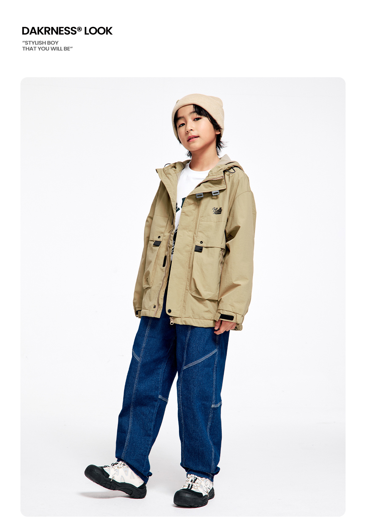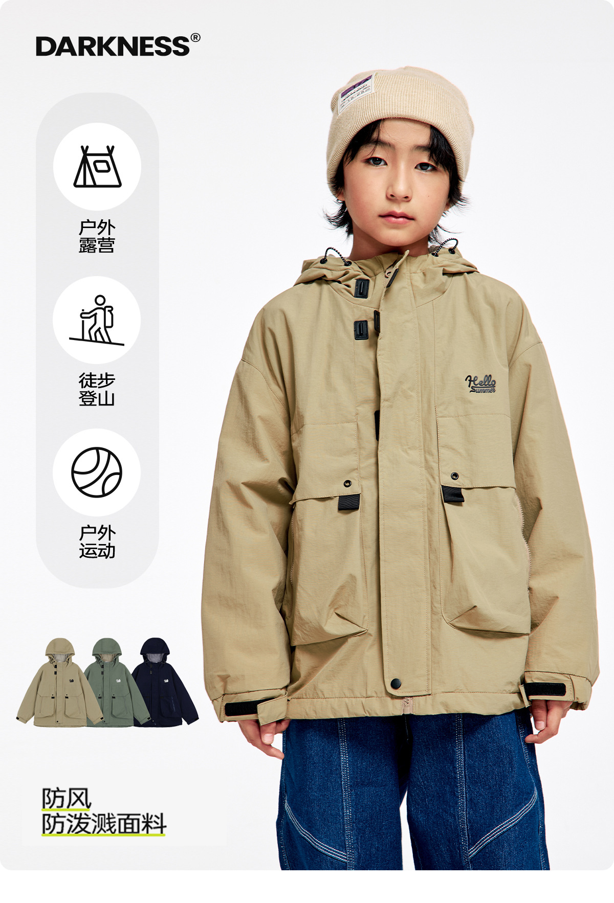 DK 아동복 가을 산 스타일 야외 소녀와 소년 캐주얼 다목적 재킷 중대형 아동용 후드 윈드 브레이커 재킷