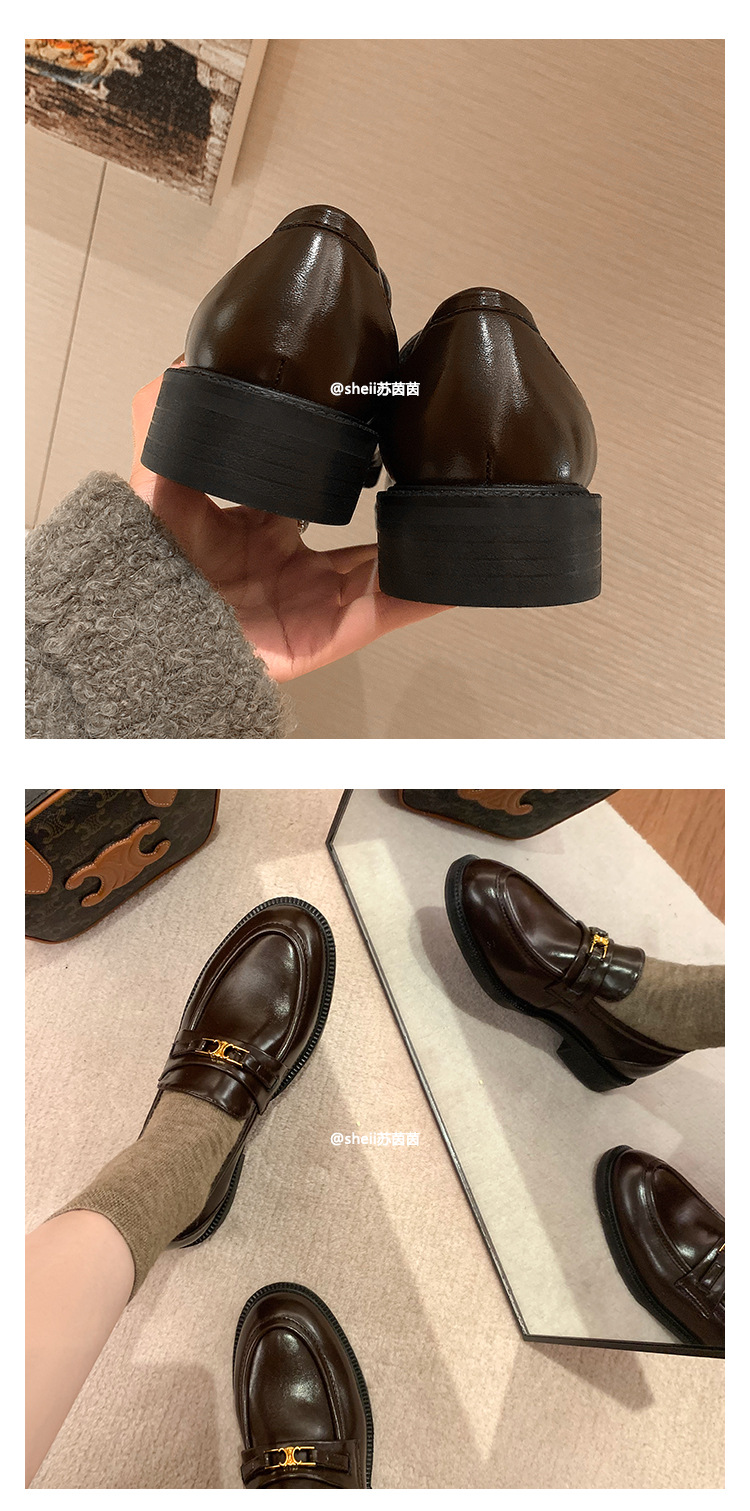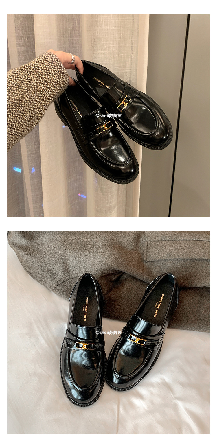 [수지 가족과 같은 스타일] 수제~트라이엄프 아치 골드 버클 슬립온 여성용 로퍼 가죽 신발스토어 가기