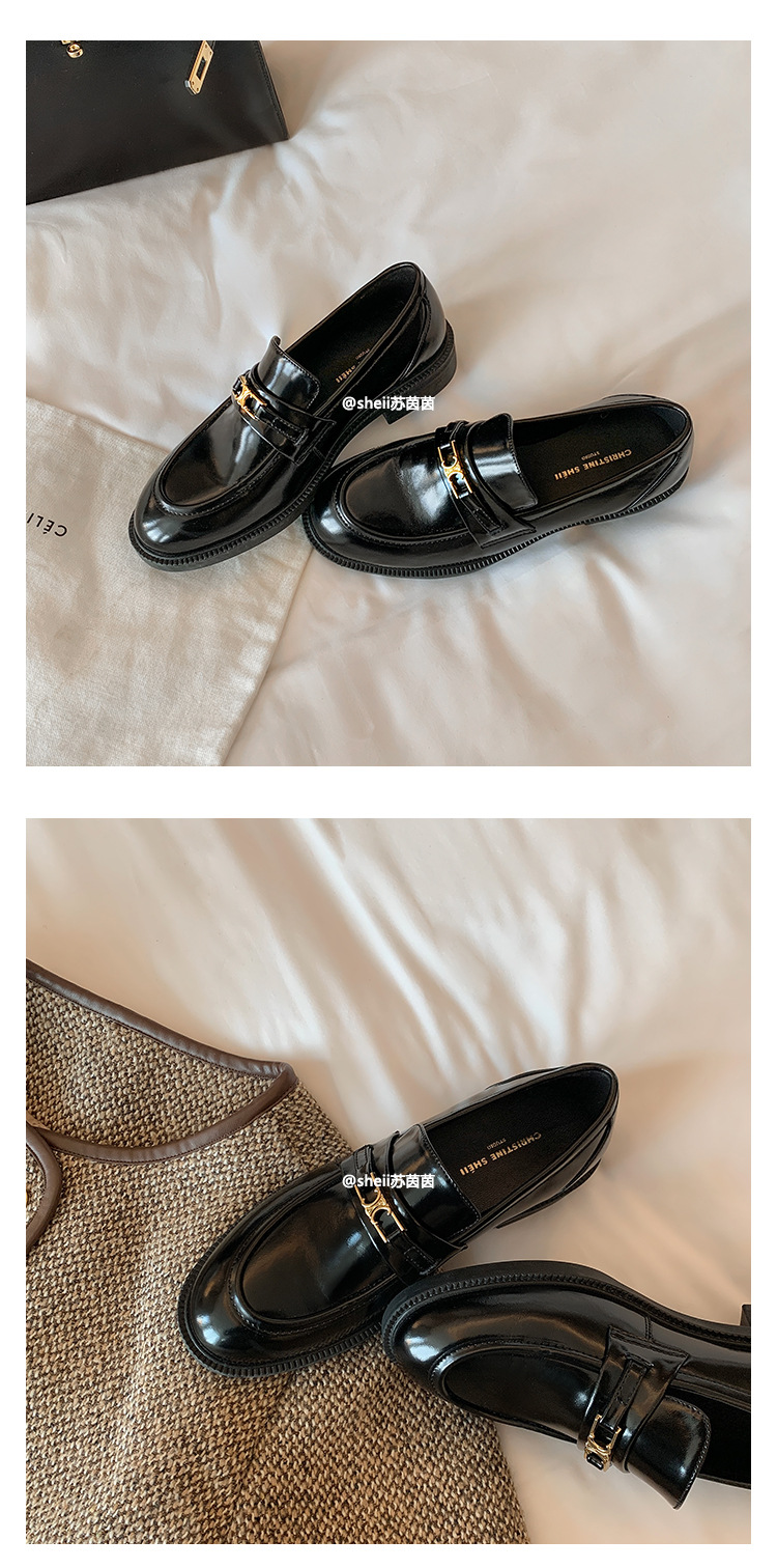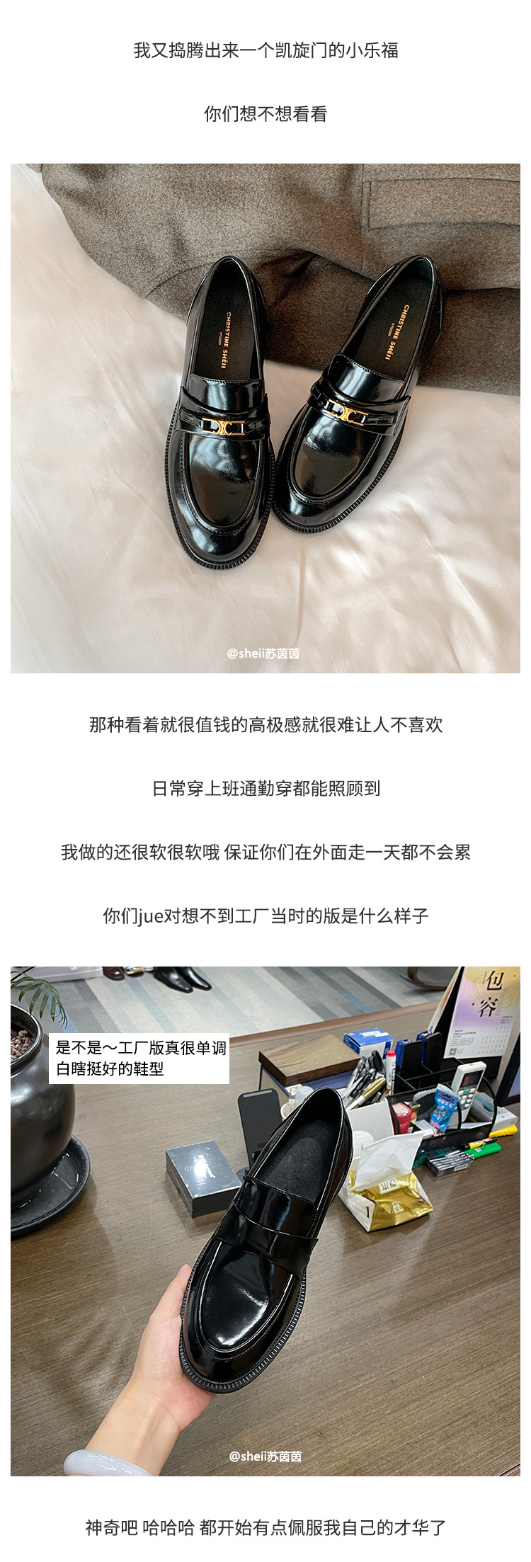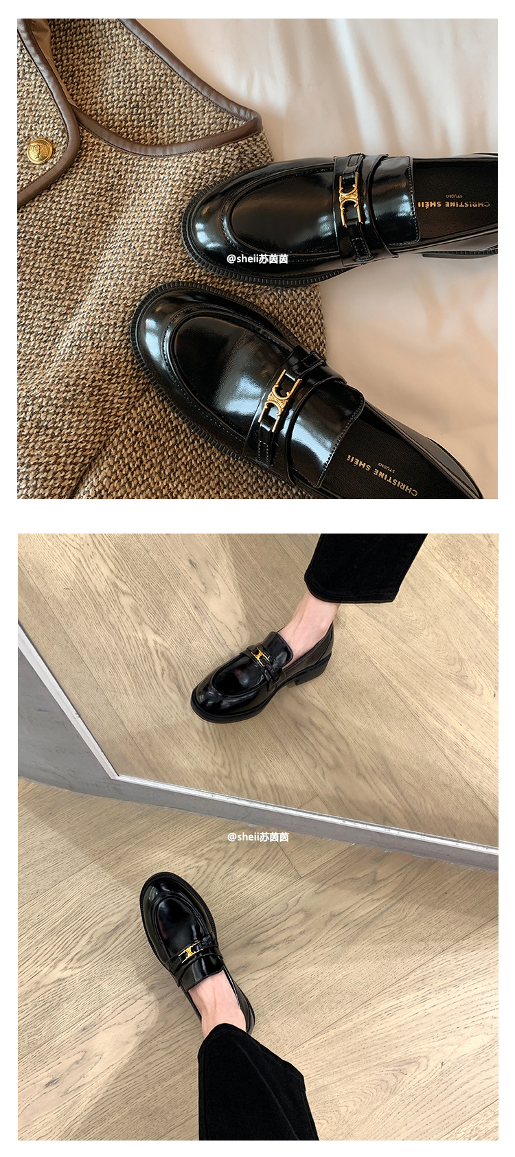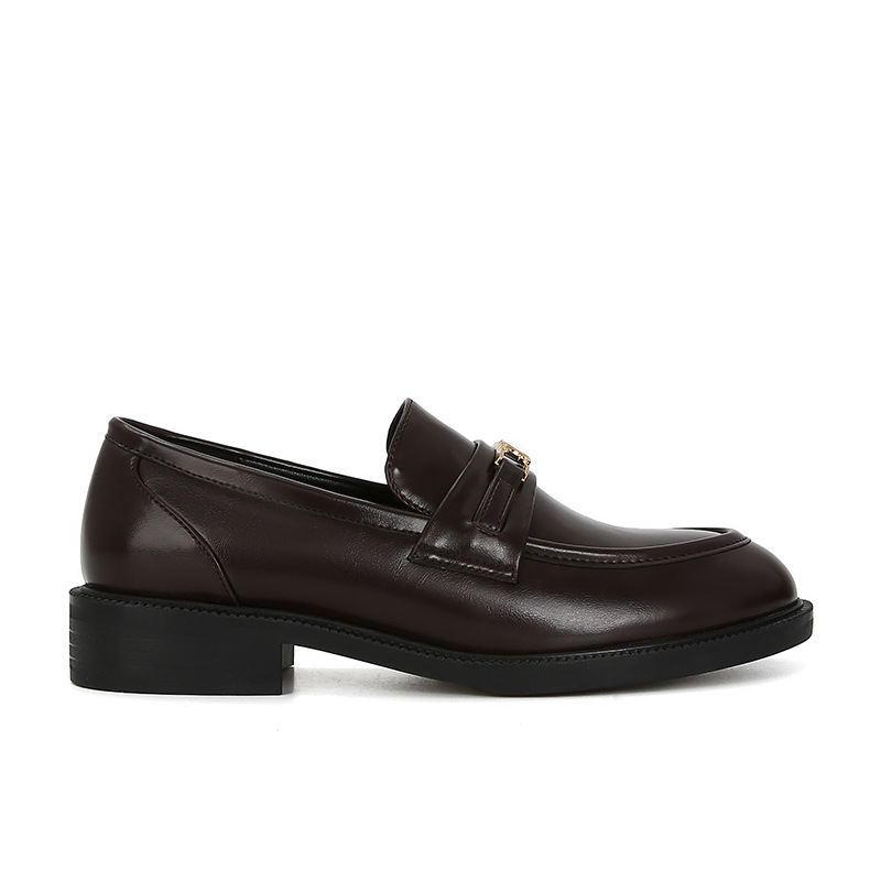 [수지 가족과 같은 스타일] 수제~트라이엄프 아치 골드 버클 슬립온 여성용 로퍼 가죽 신발