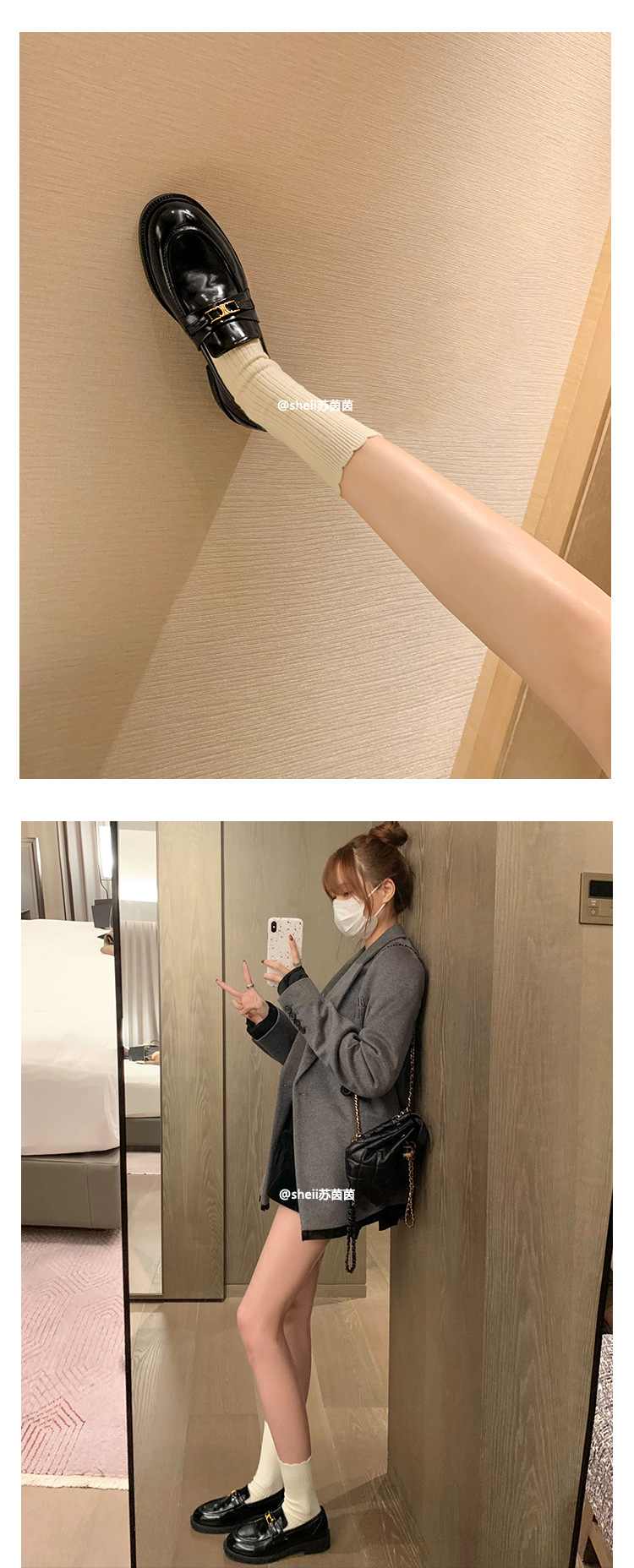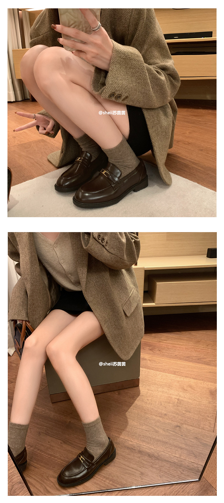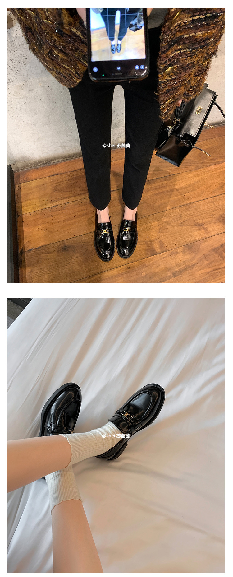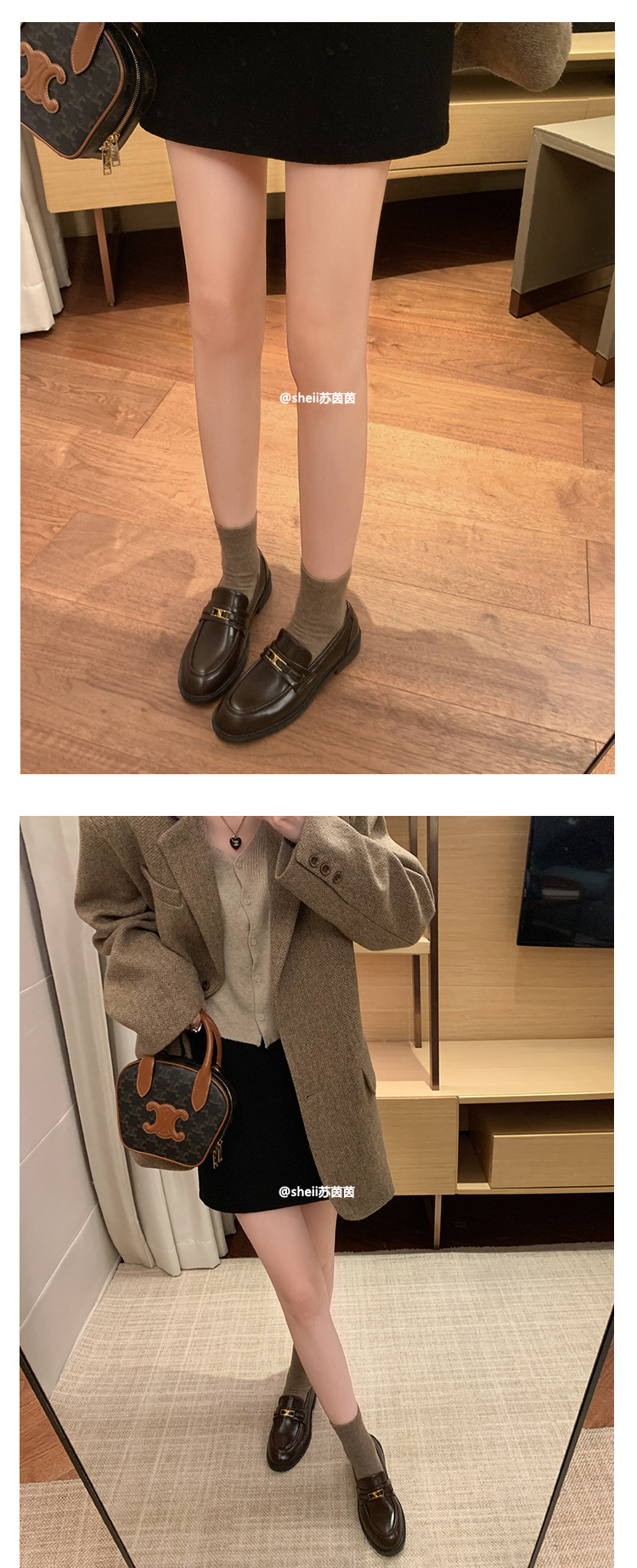 [수지 가족과 같은 스타일] 수제~트라이엄프 아치 골드 버클 슬립온 여성용 로퍼 가죽 신발