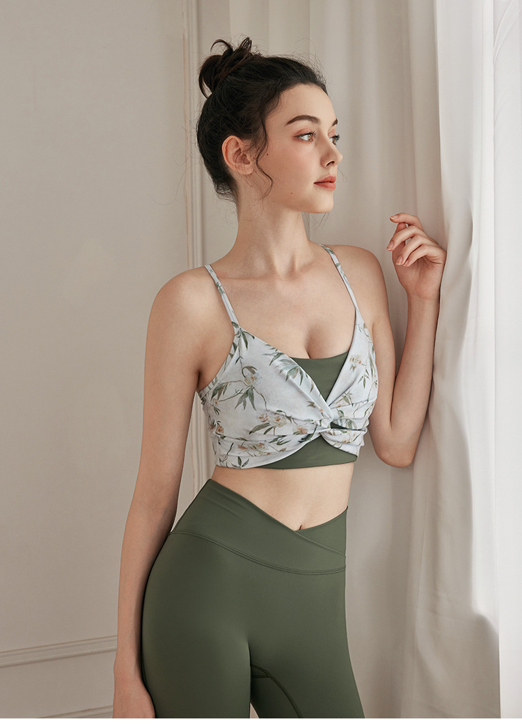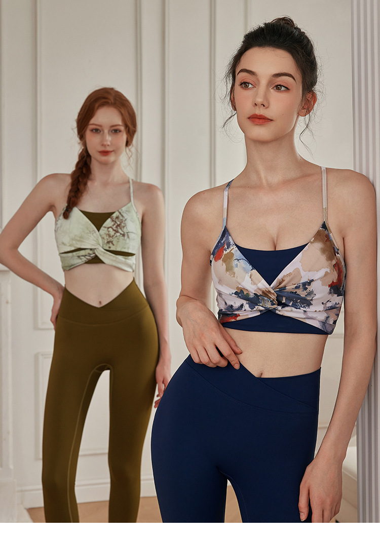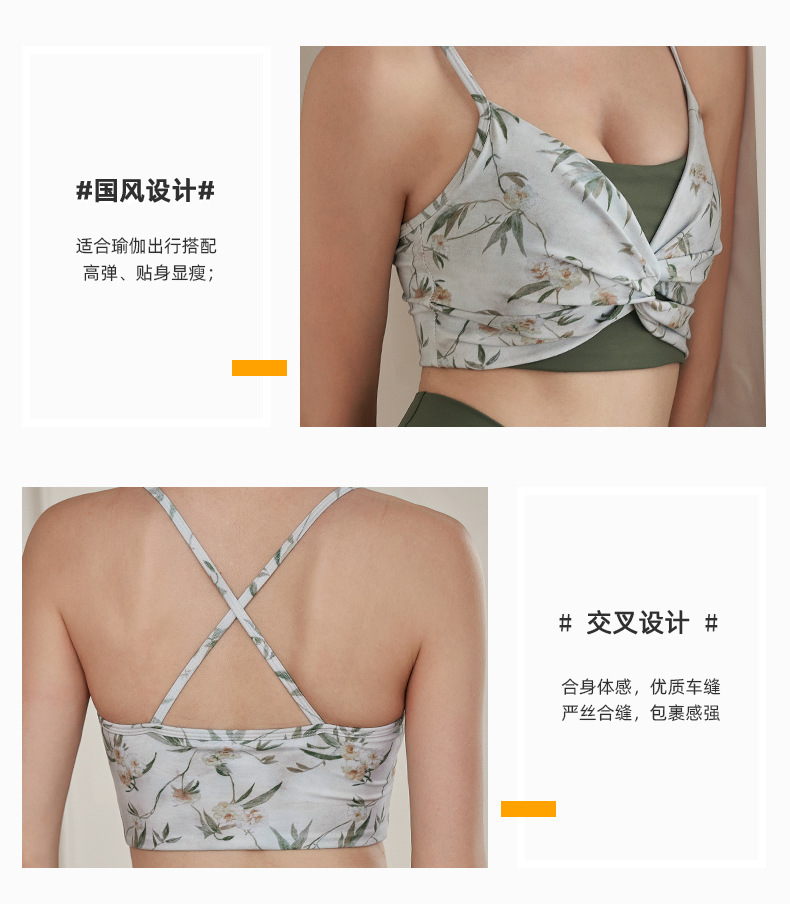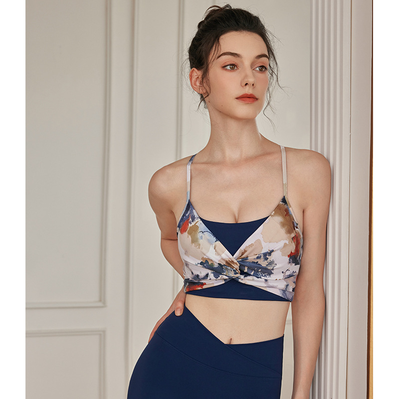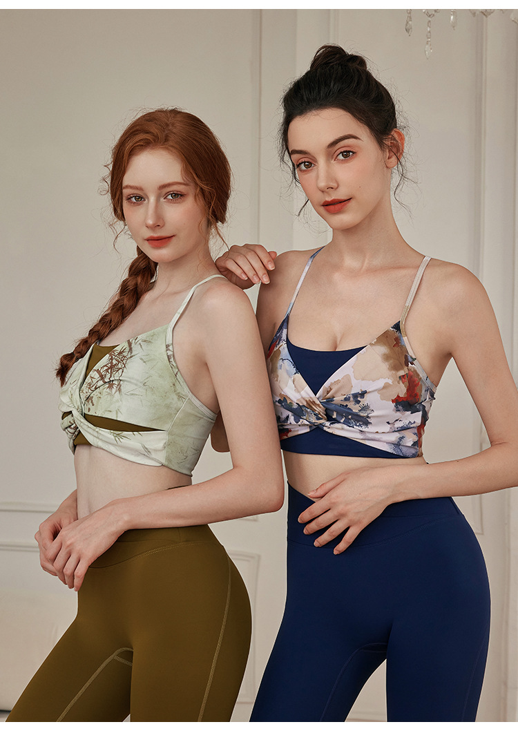 가슴 패드와 부드러운 왁스 요가 조끼 여성 스포츠 뷰티 백 속옷 U 칼라 슬링 요가 세트 브래지어 충격 방지 훈련 여성스토어 가기