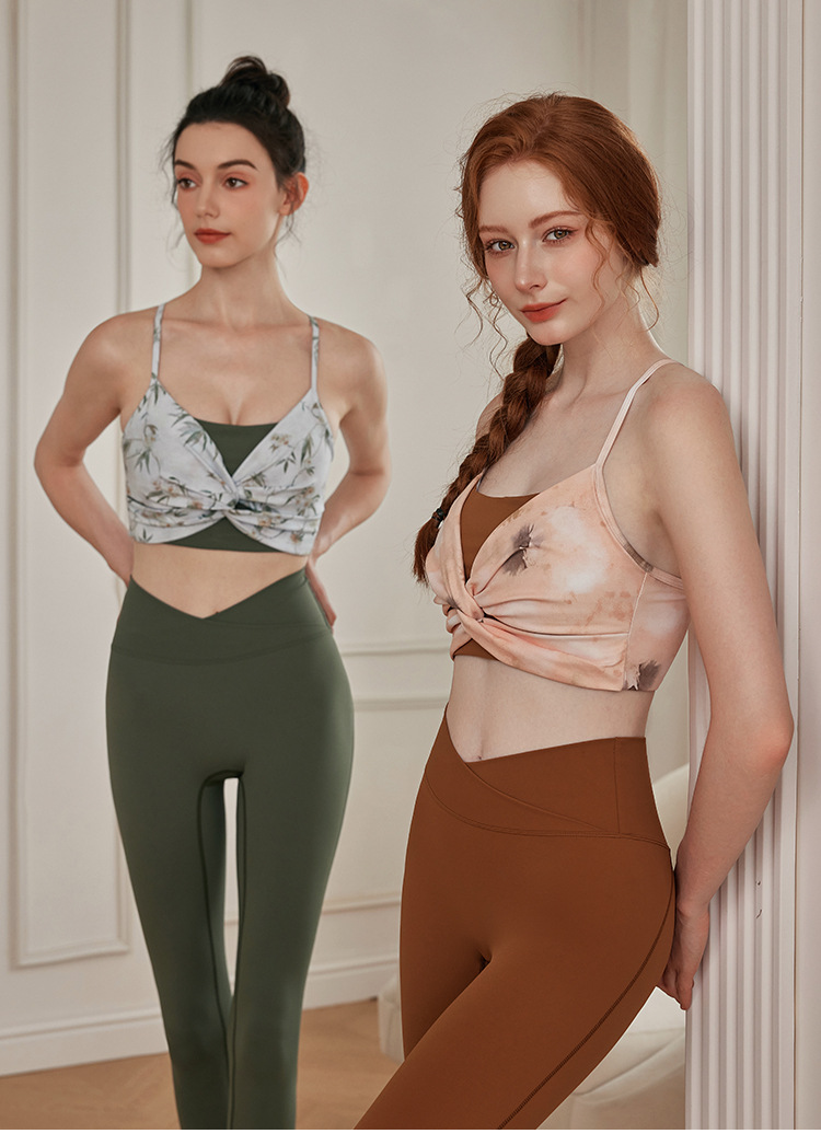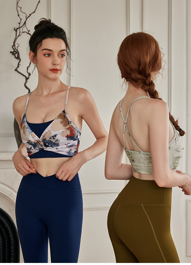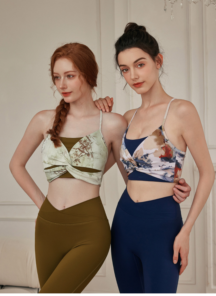 가슴 패드와 부드러운 왁스 요가 조끼 여성 스포츠 뷰티 백 속옷 U 칼라 슬링 요가 세트 브래지어 충격 방지 훈련 여성