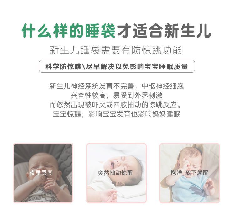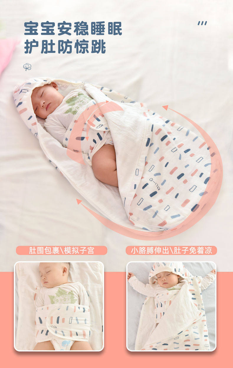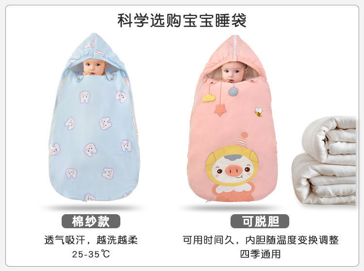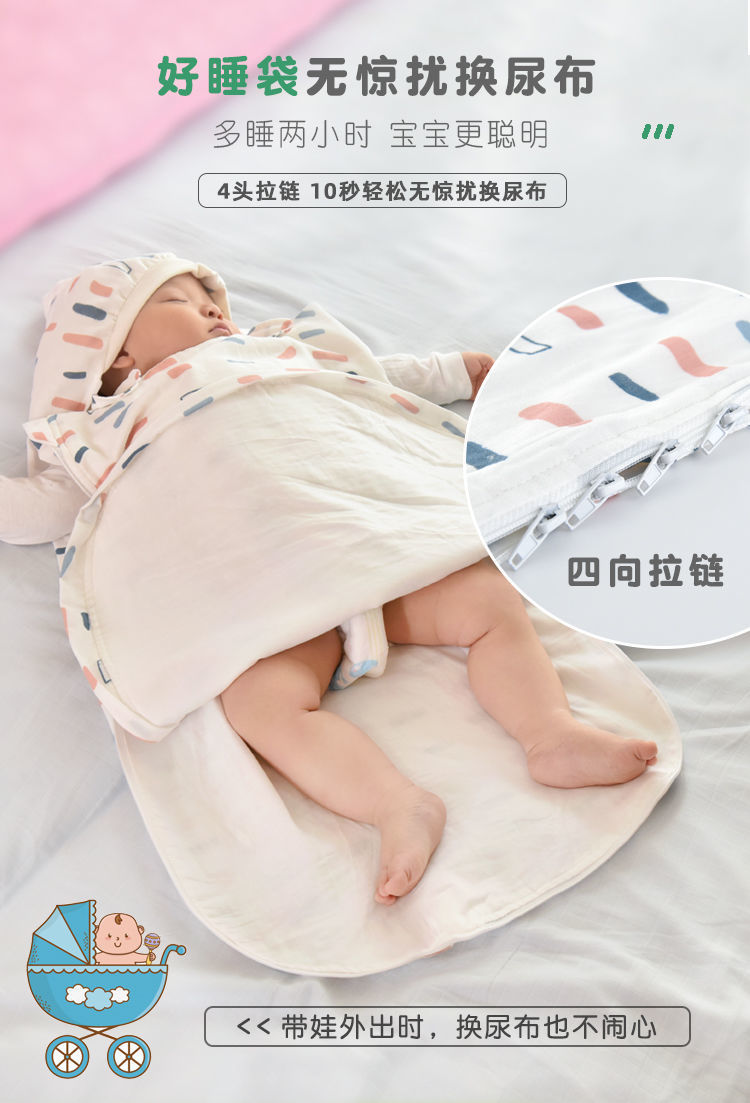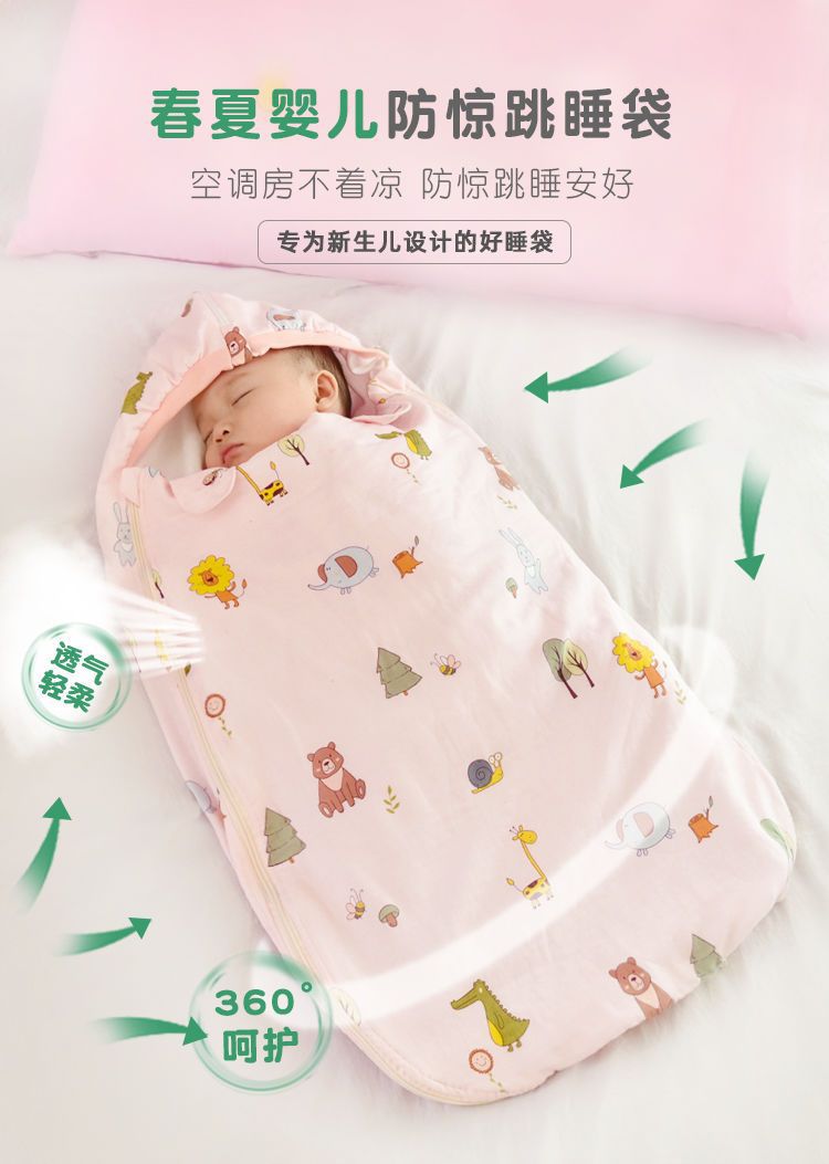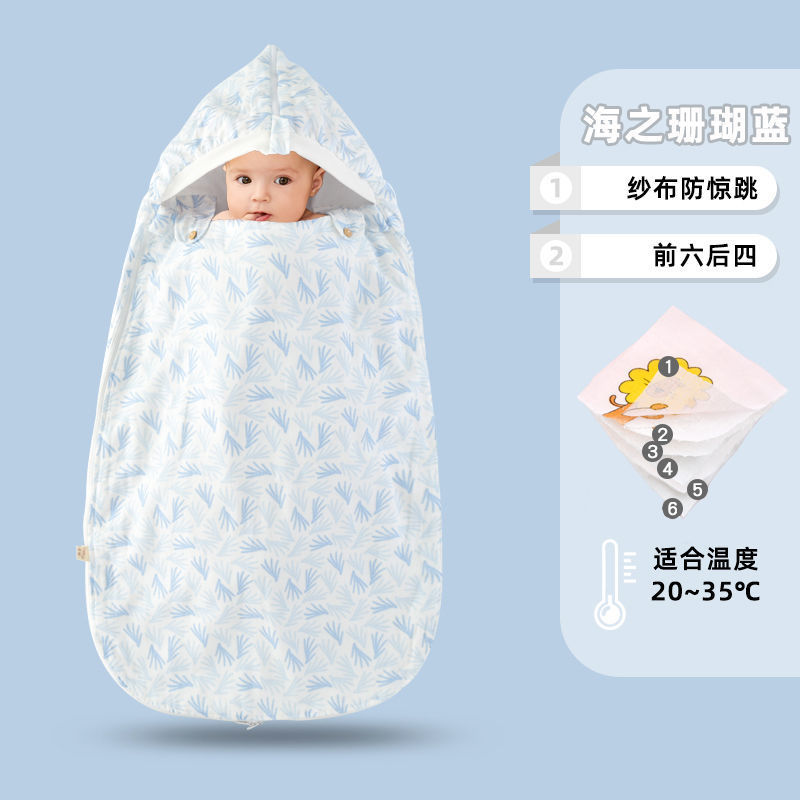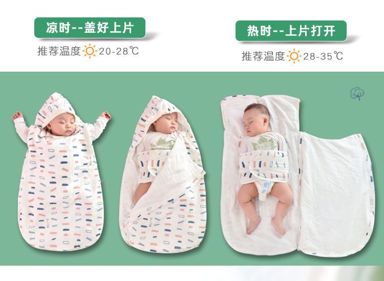 충격 방지 사계절용 아기 침낭, 봄, 가을용 얇은 순면 A급 거즈, 신생아 전용 항균 소프트 침낭
