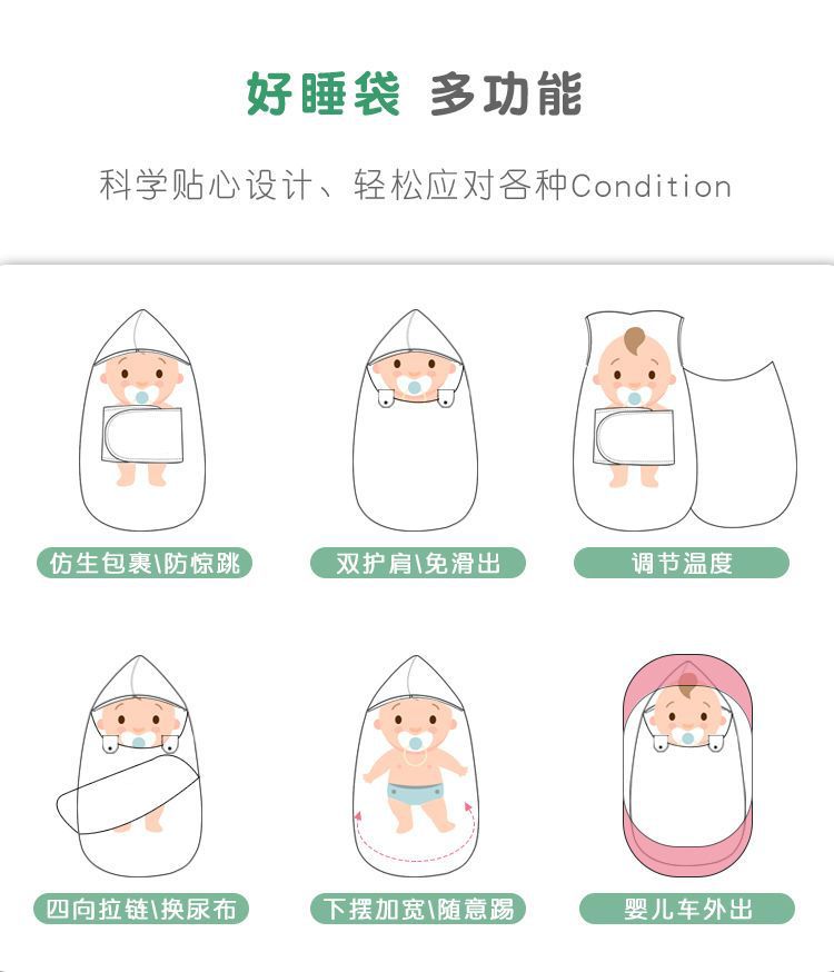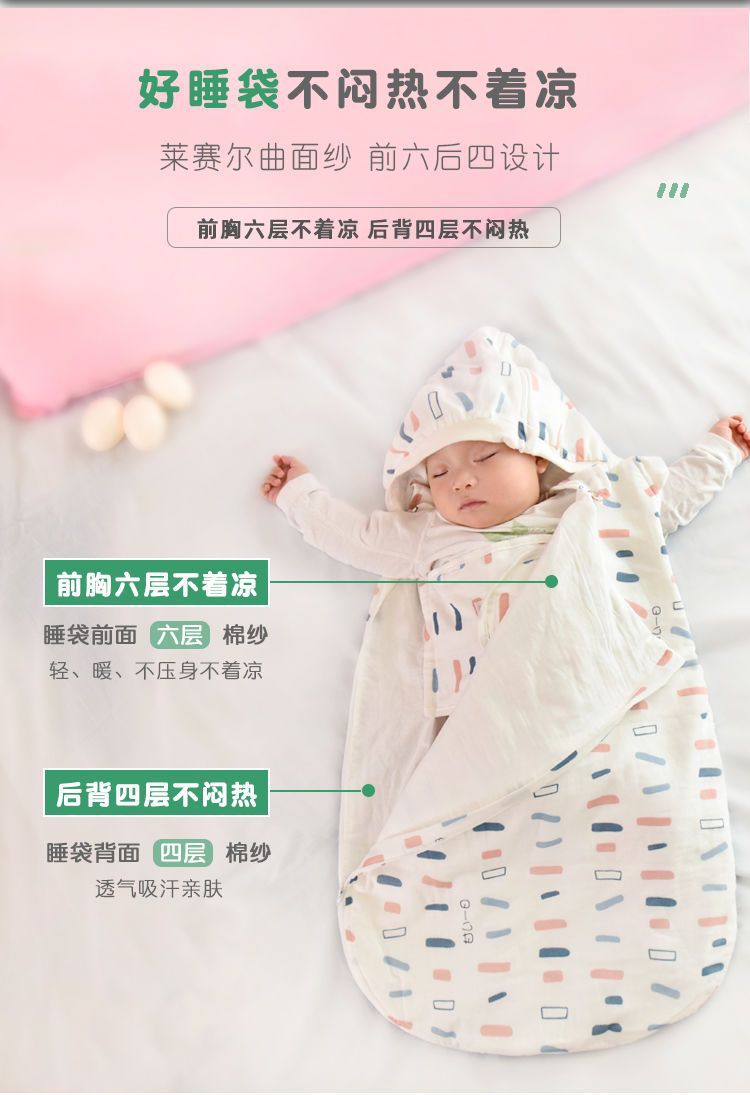 충격 방지 사계절용 아기 침낭, 봄, 가을용 얇은 순면 A급 거즈, 신생아 전용 항균 소프트 침낭스토어 가기