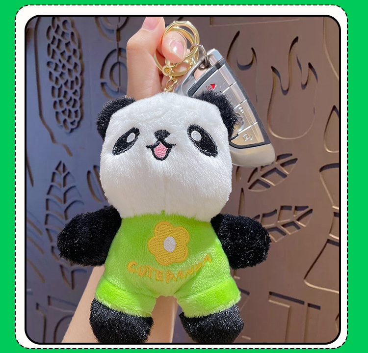 만화 귀여운 봉제 꽃 팬더 키 체인 가방 인형 작은 펜던트 가방 키 체인 교수형 작은 선물스토어 가기