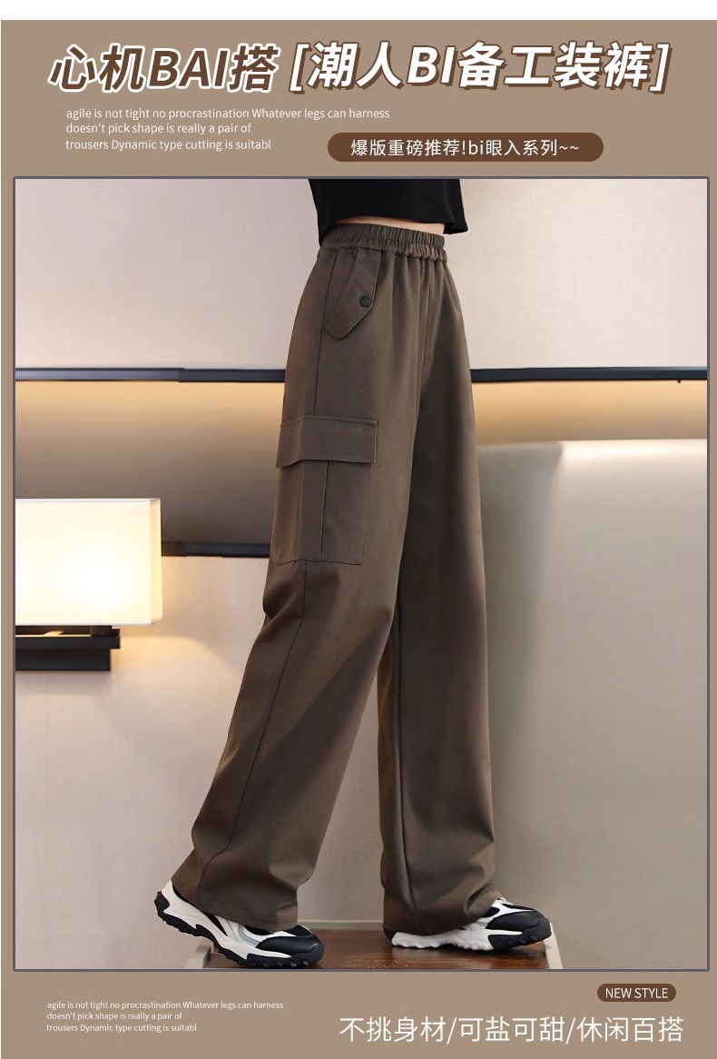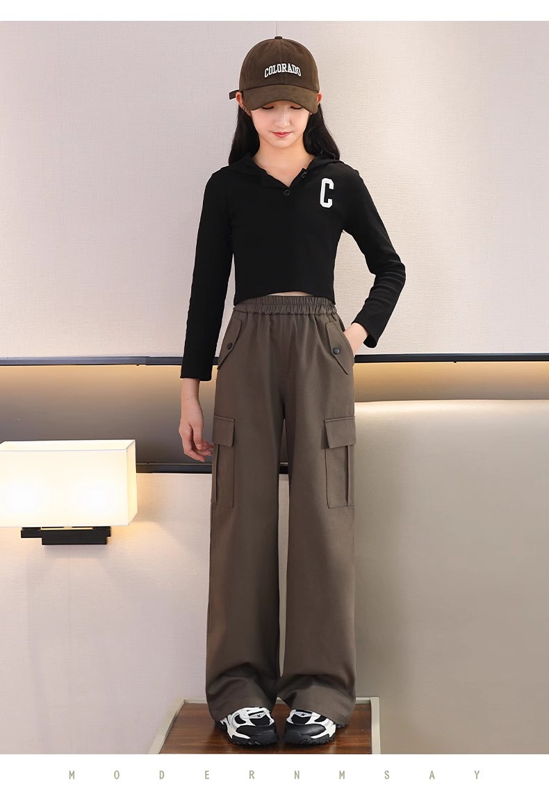 여자 작업복 봄, 가을 캐주얼 바지 2025 새로운 어린이 바지 가을, 겨울 여자 블랙 넓은 다리 바지 가을 착용스토어 가기