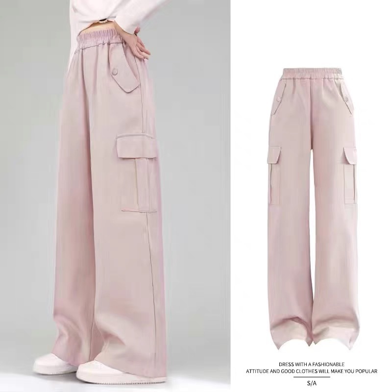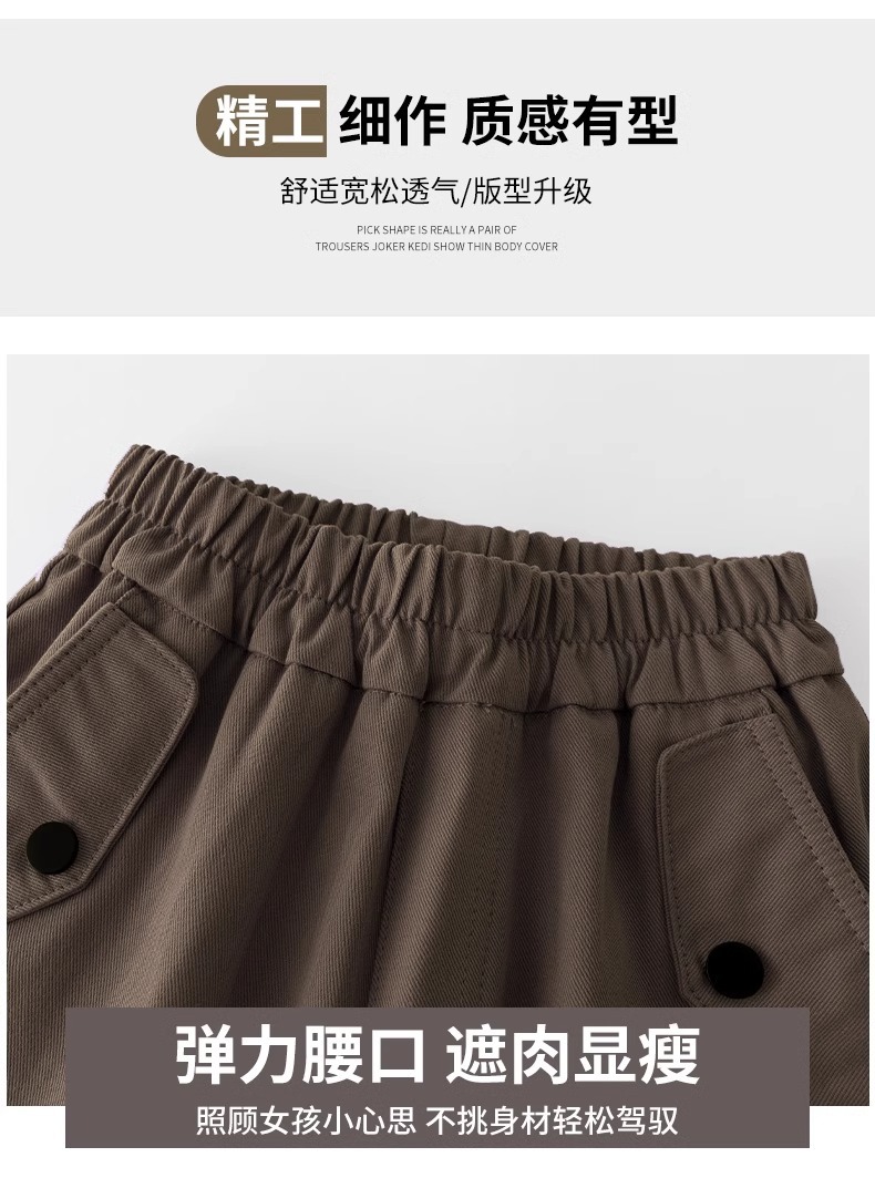 여자 작업복 봄, 가을 캐주얼 바지 2025 새로운 어린이 바지 가을, 겨울 여자 블랙 넓은 다리 바지 가을 착용