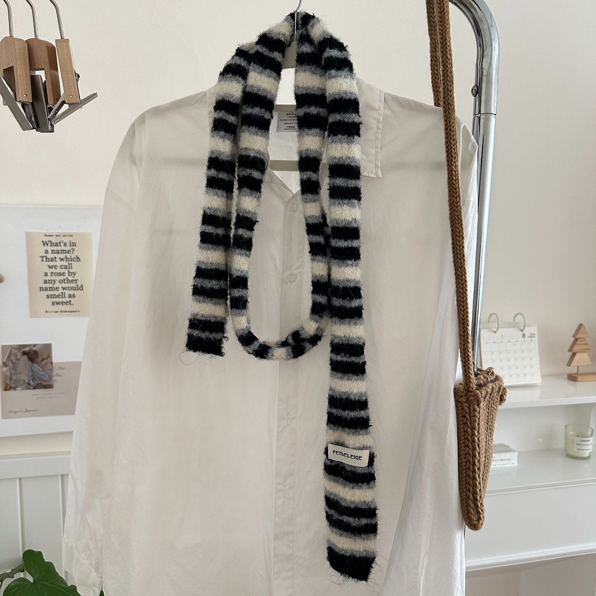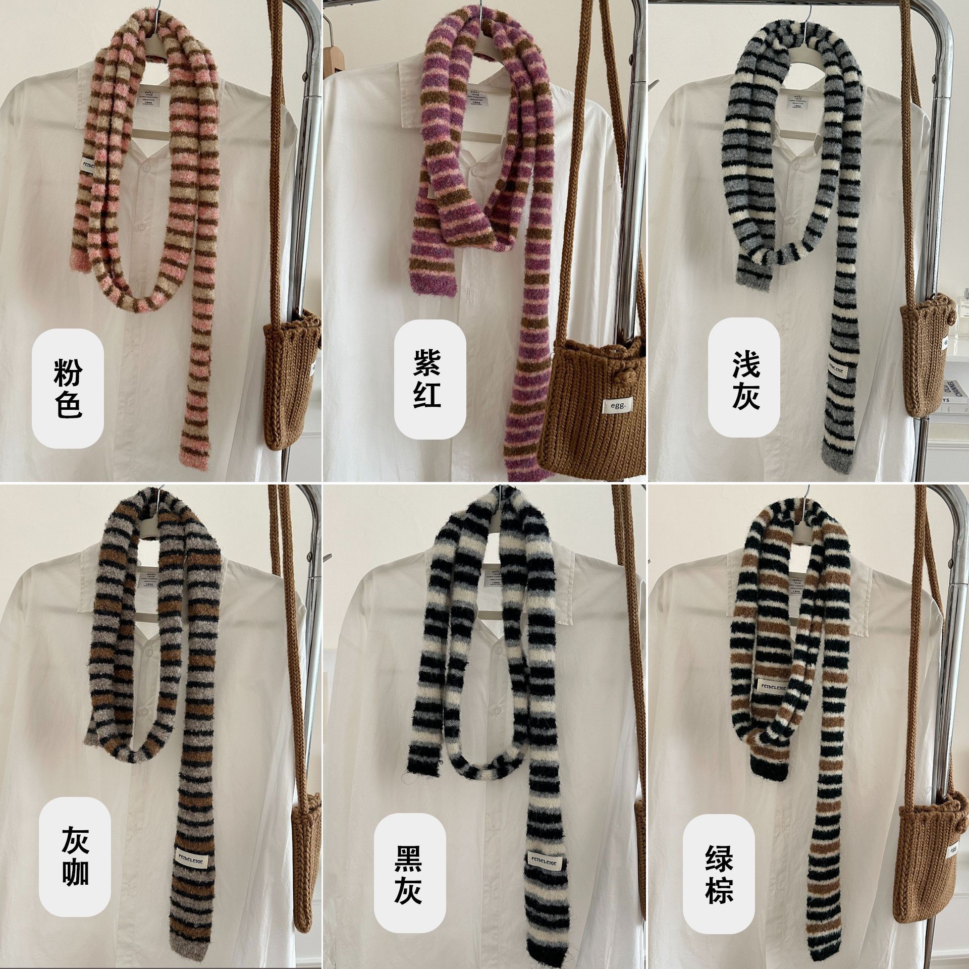 가을과 겨울 빈티지 스트라이프 얇은 스카프 한국 스타일 봉제 긴 스트립 컬 컬러 매칭 올매치 좁은 버전 스파이스 소녀 장식 스카프 패션스토어 가기