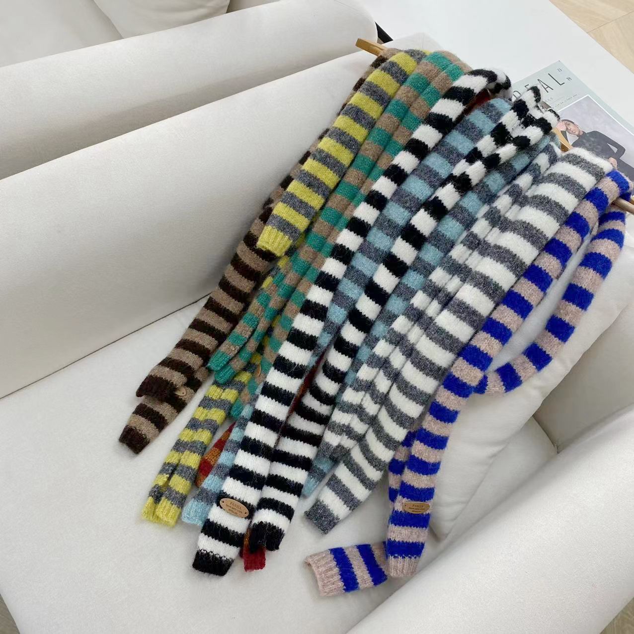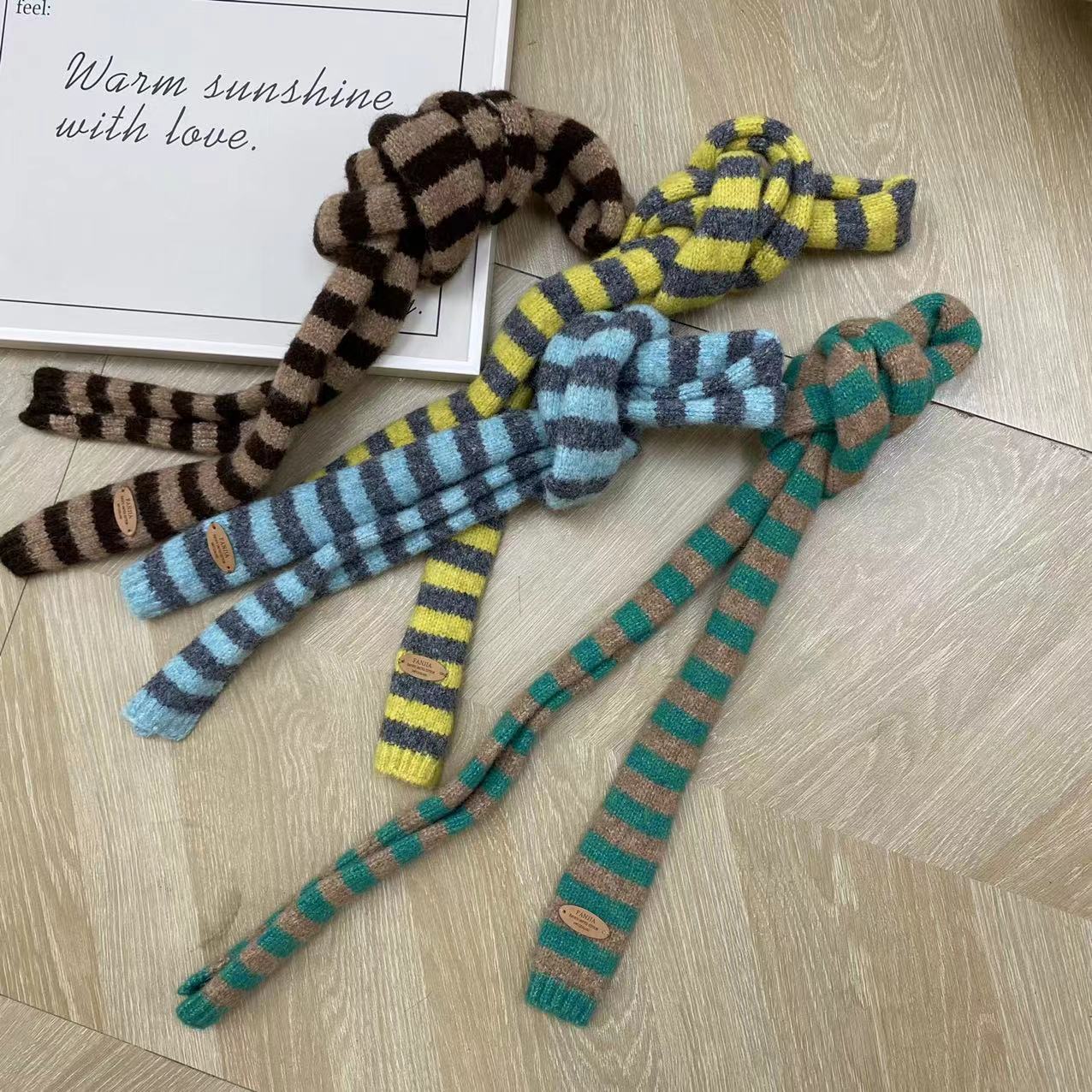 2024 새로운 한국 스타일 얇은 좁은 긴 줄무늬 스카프 여성의 가을과 겨울 틈새 디자인 센스 스파이스 소녀 올매치 장식 스카프스토어 가기