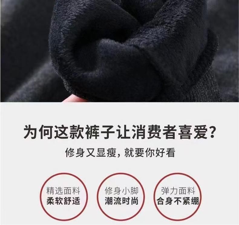 加绒加厚秋冬季新款运动裤弹力修身直筒裤男休闲裤束脚拉链长裤子