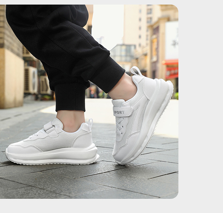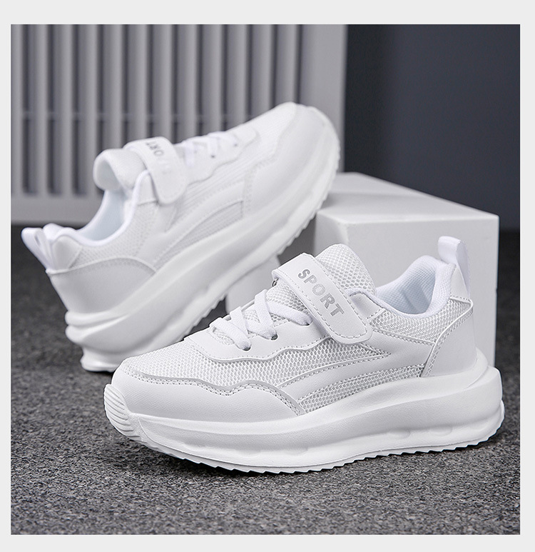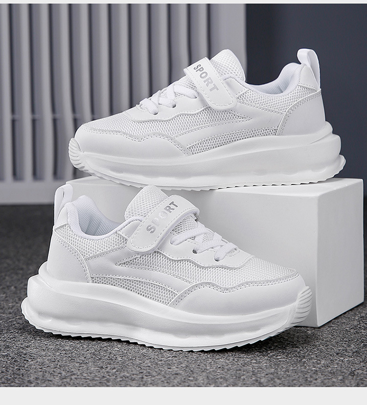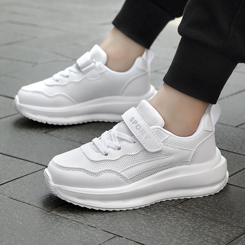 어린이 신발 2024 새로운 어린이 운동화 통기성 캐주얼 보드 신발 올 매치 화이트 슈즈 메쉬 런닝 슈즈