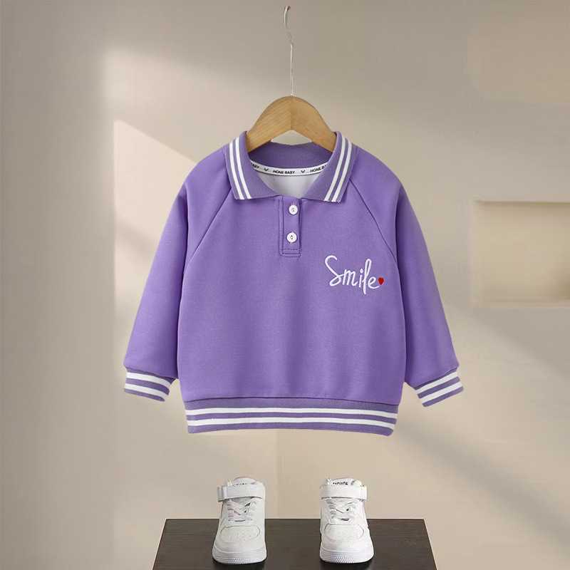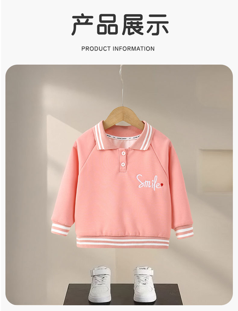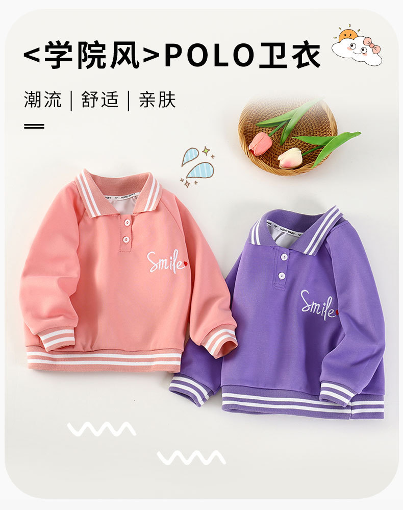어린이 가을 패션 폴로 셔츠 소녀 캐주얼 올 매치 스웨터 솔리드 컬러 자수 대학 스타일 옷깃 긴 소매 티셔츠